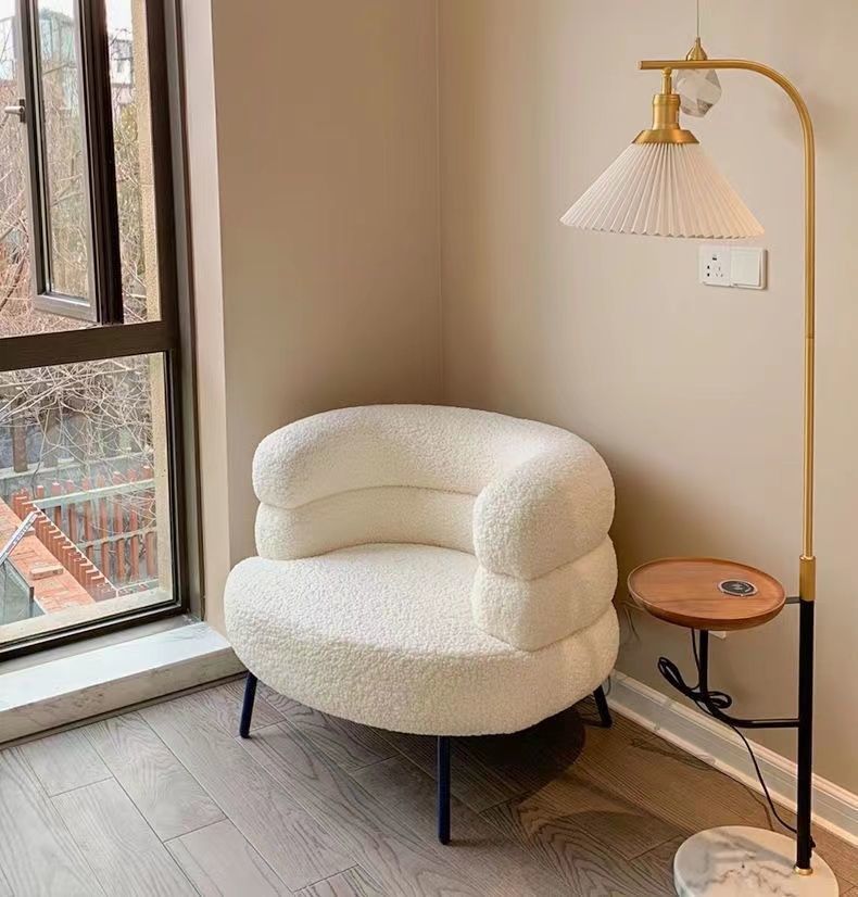 北欧现代羊羔绒单人沙发椅卧室网红ins休闲椅简约小户型阳台座椅