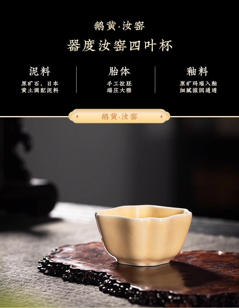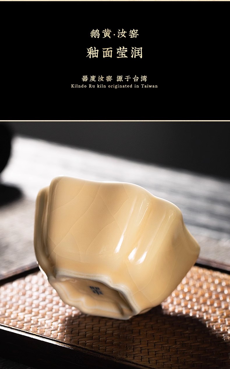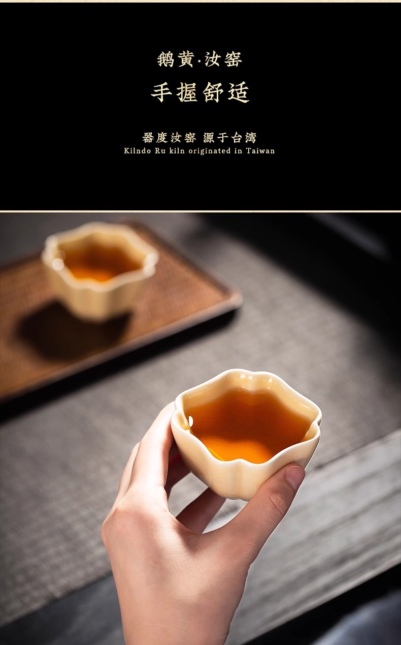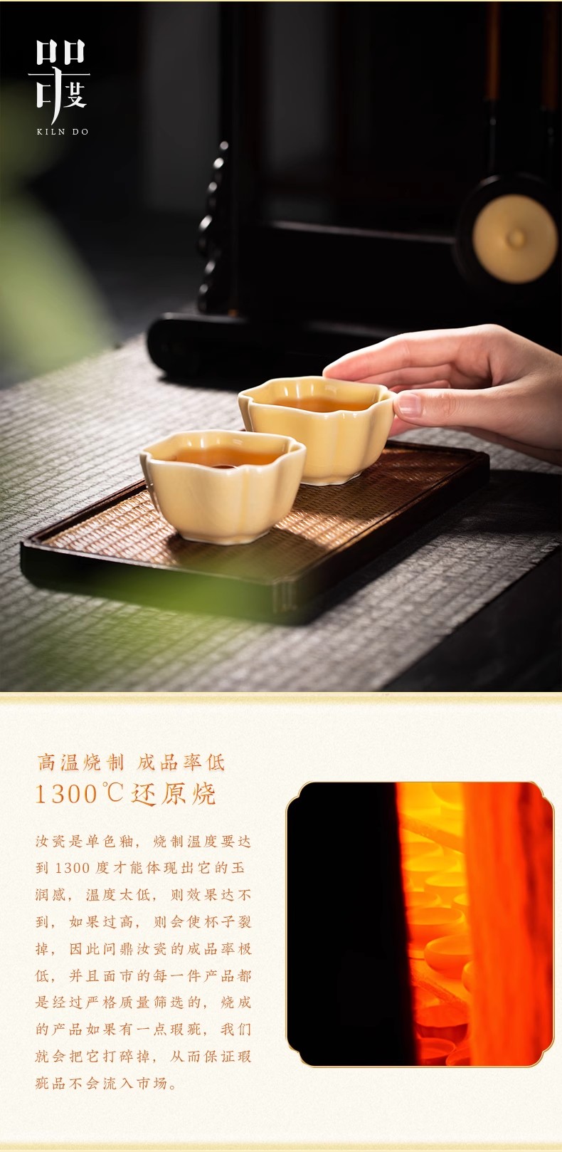 问鼎汝瓷鼎峰柴窑月白观月杯(梵红描金狮子绣球)