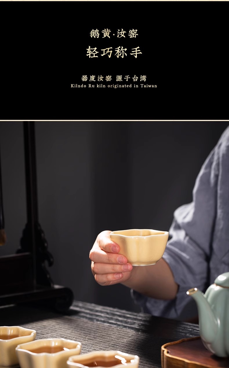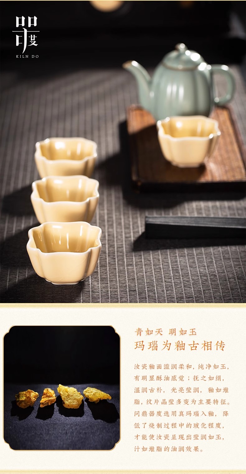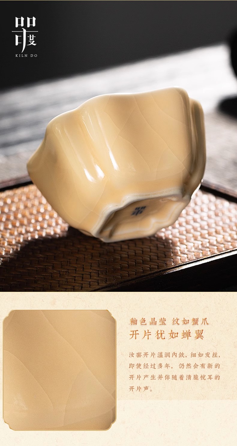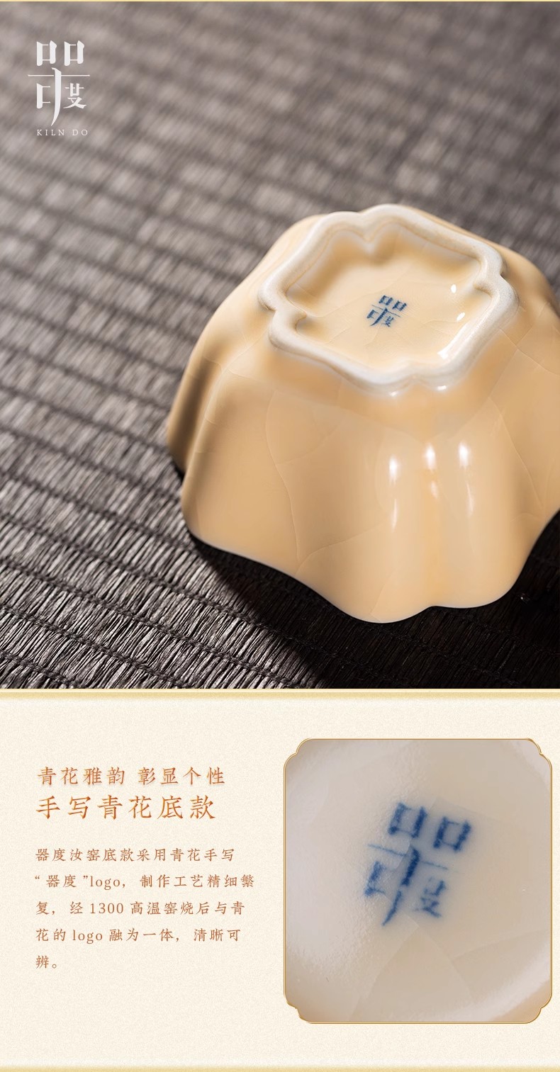 问鼎汝瓷鼎峰柴窑月白观月杯(梵红描金狮子绣球)