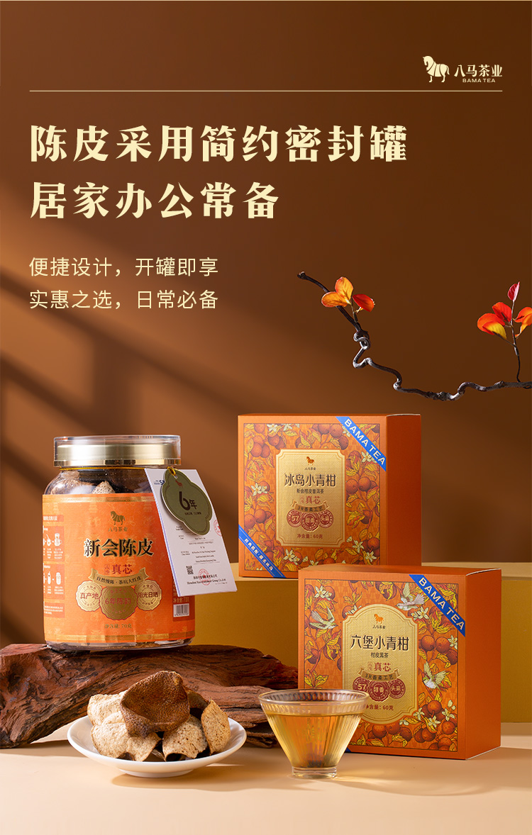八马茶业|新会陈皮·5年陈50克单罐装开盖即享,居家办公常备