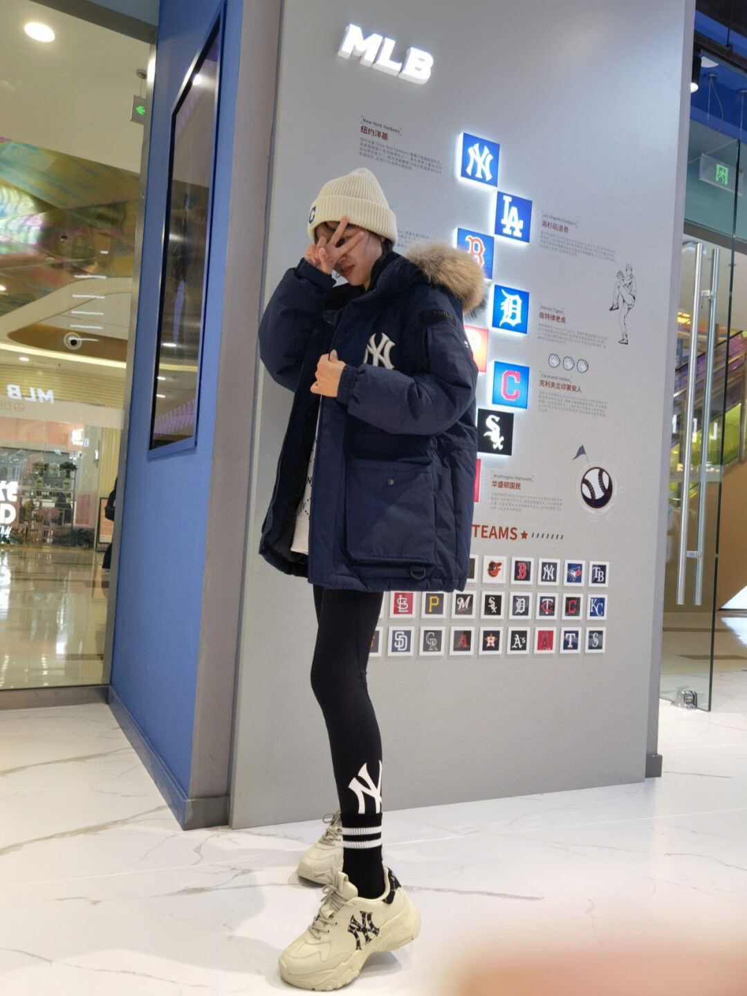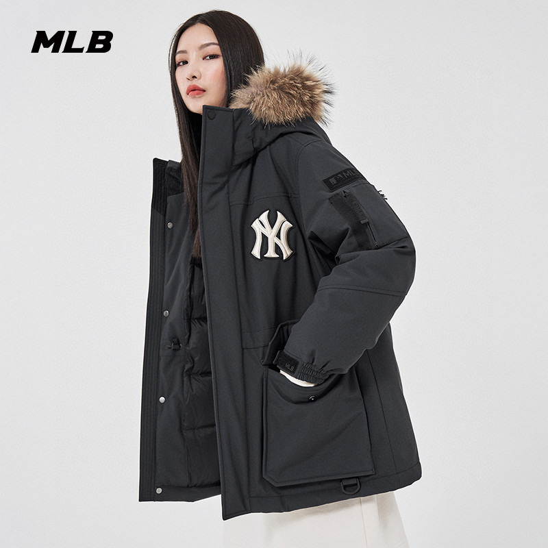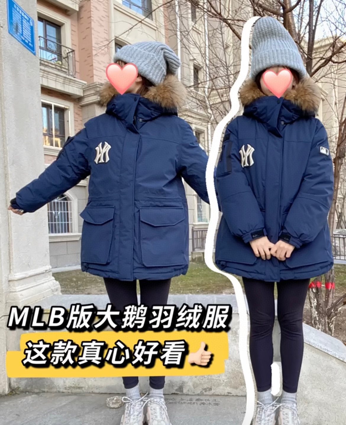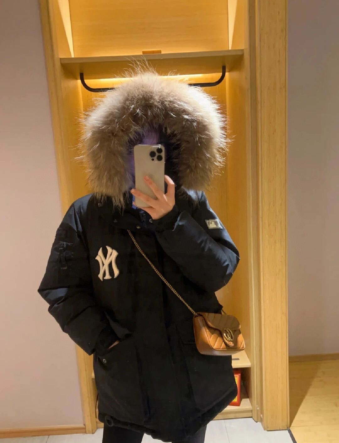 MLB洋基队大毛领 国标80绒 羽绒服NY韩国2023专柜同步发售四色齐发爆款大标字母LOGO外套夹克派克服