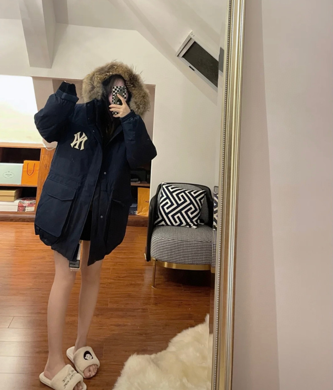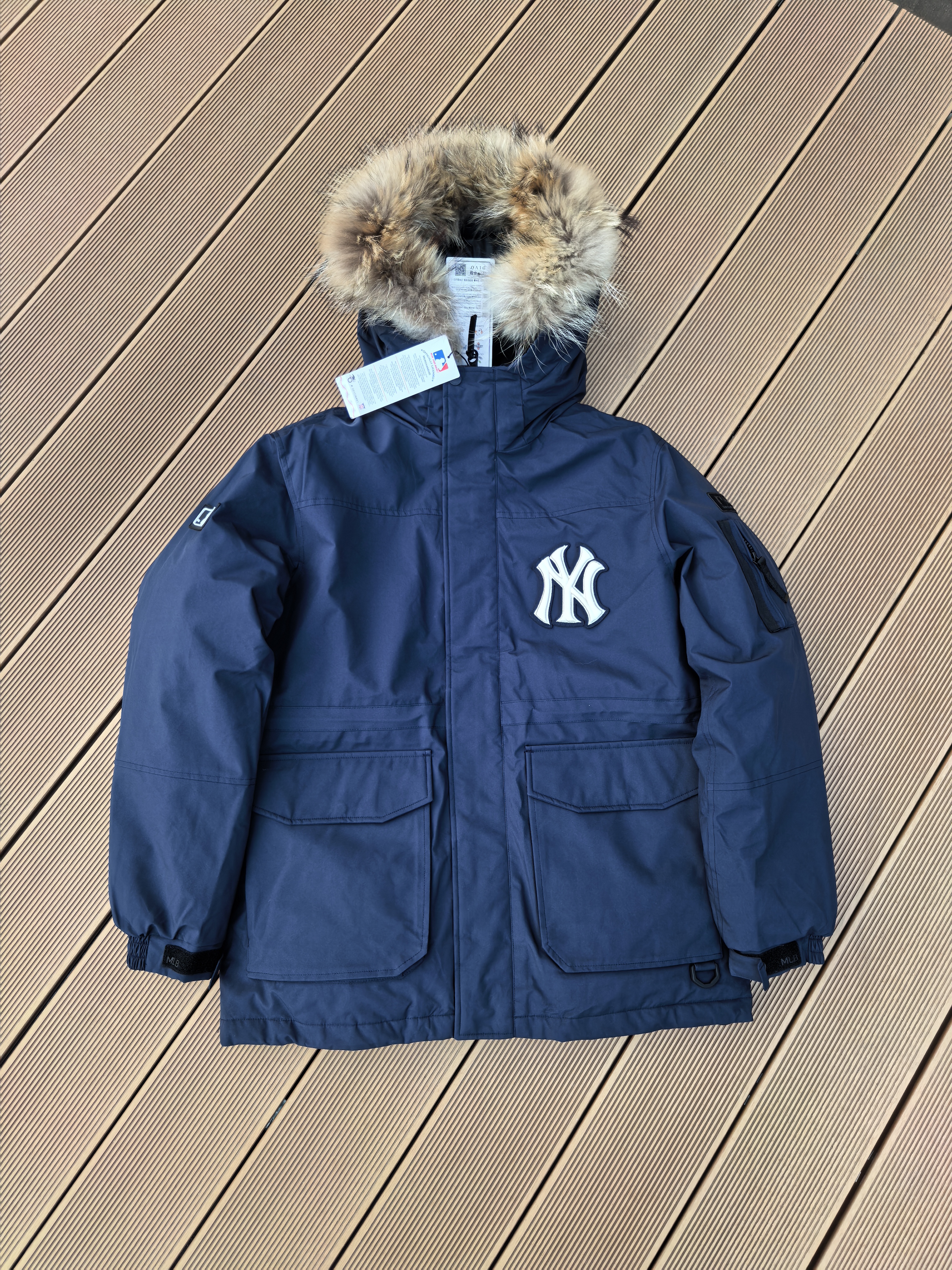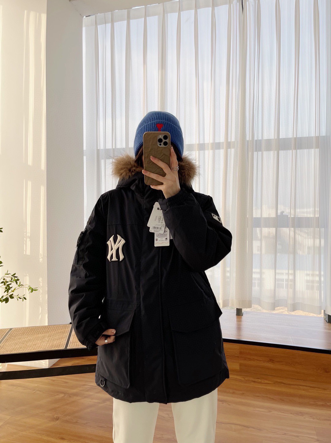 付款减库存! 一定要入!成本440左右80绒!!卖完无补;品质超好!!MLB洋基队大毛领 国标80绒 羽绒服 NY韩国2023专柜同步发售 样机羽绒服