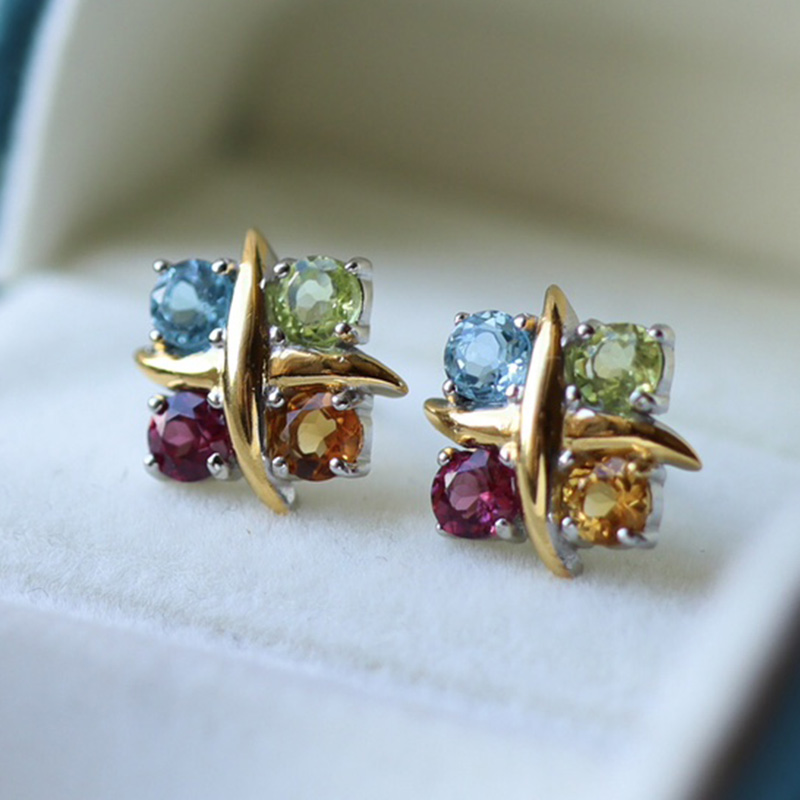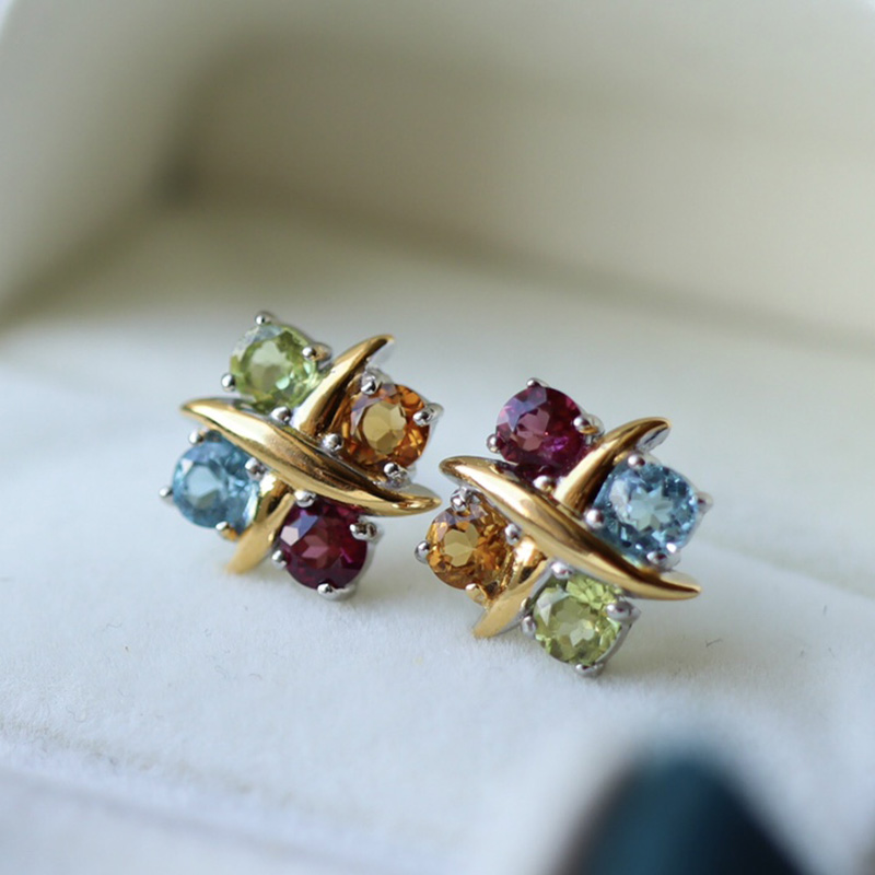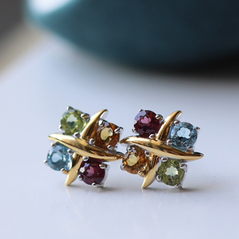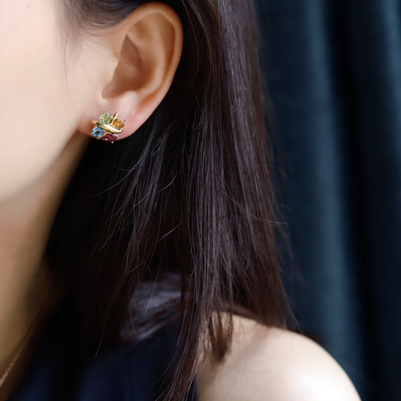 天然彩宝高级感耳钉。纯银镀18k金 晶体纯净 色彩艳丽 设计优雅大气