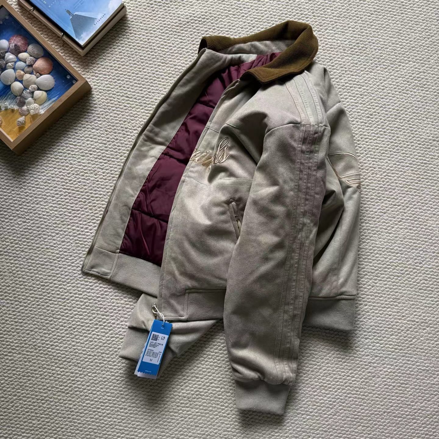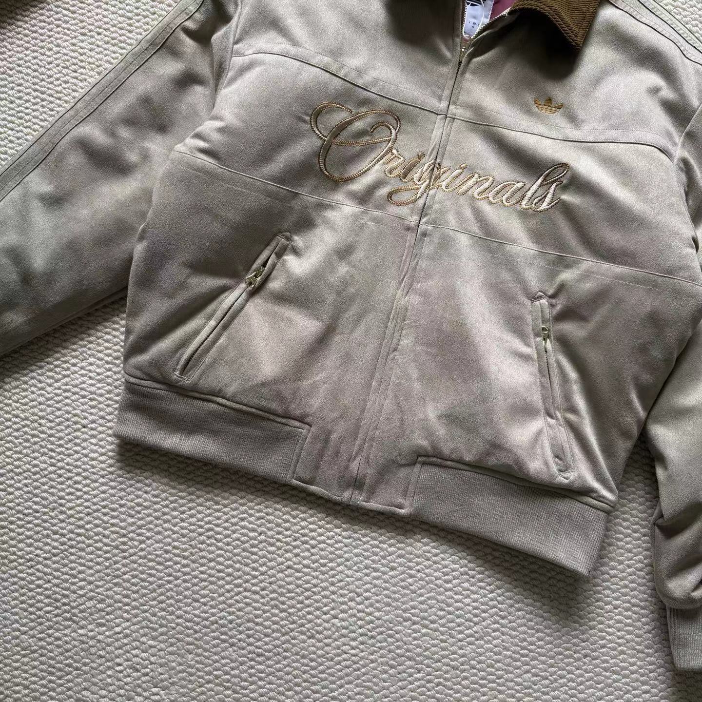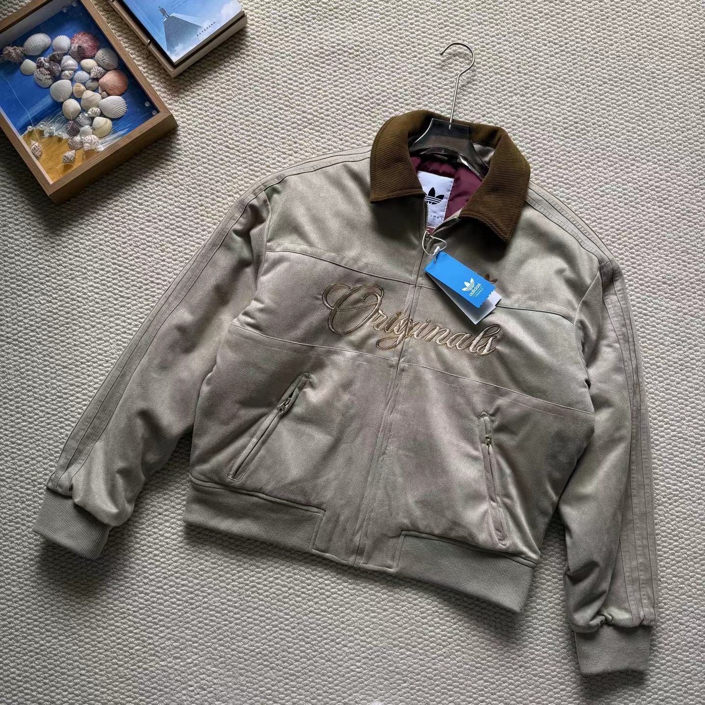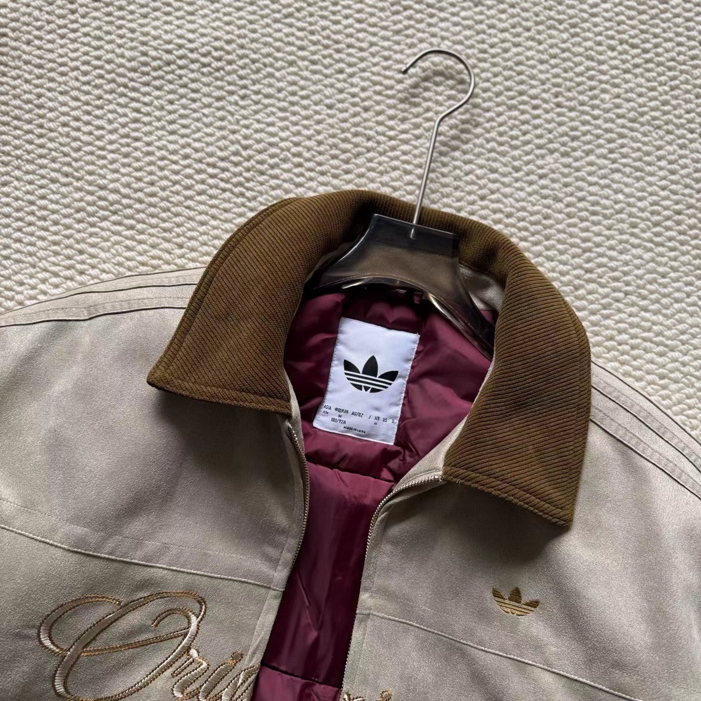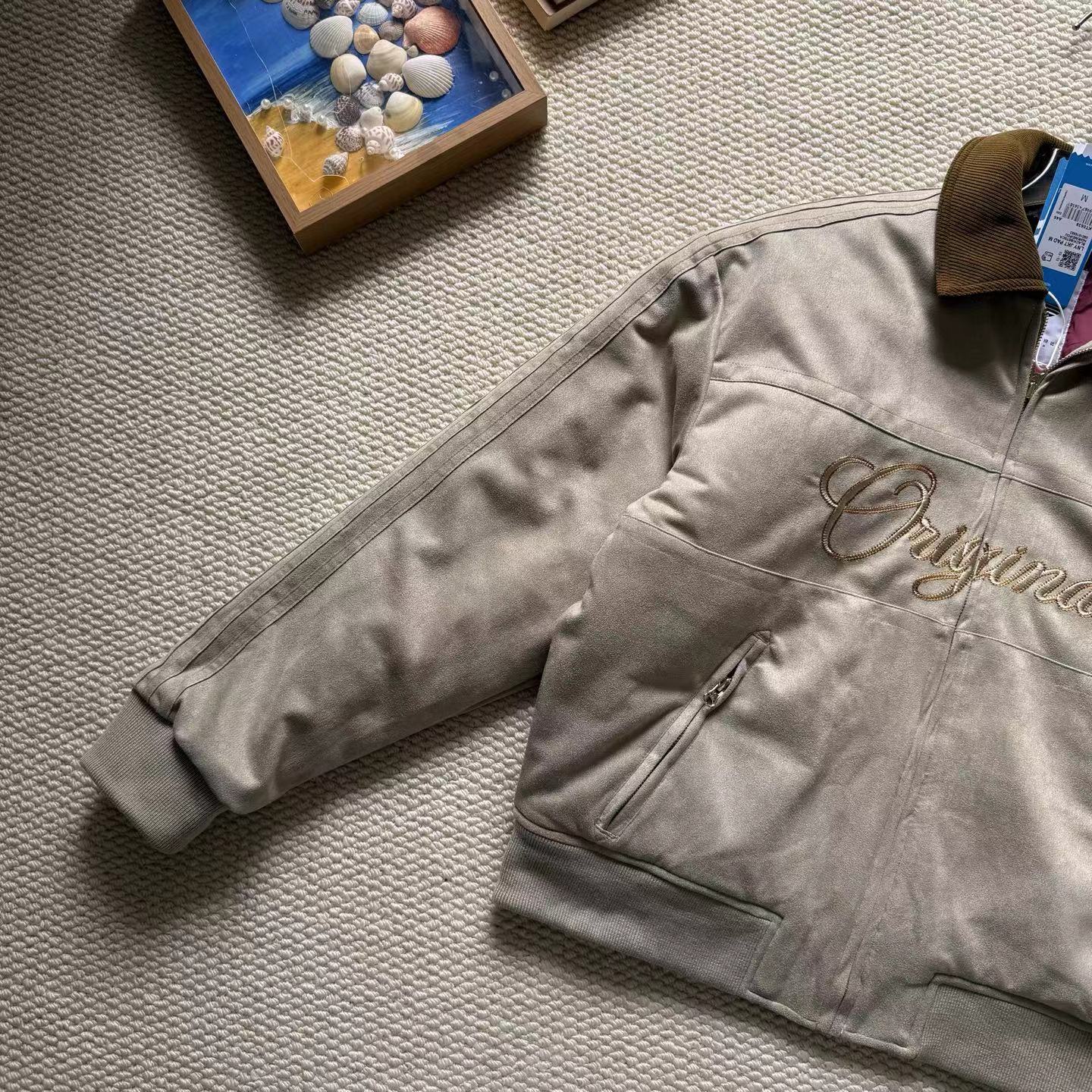 复古麂皮刺绣logo棒球服薄棉服,复古与质感兼备。高密麂皮绒面料软糯亲肤、防水防污,内里定点锁棉不跑绒,保暖又透气。灯芯绒翻领、定制五金拉链、高弹罗纹收口,细节jing致。胸前与背部万针刺绣立体有型,落肩宽松版型不挑身材。复古货物褐配色,搭配三道杠与大Logo,美式街头感拉满,冬日保暖与穿搭一步到位。