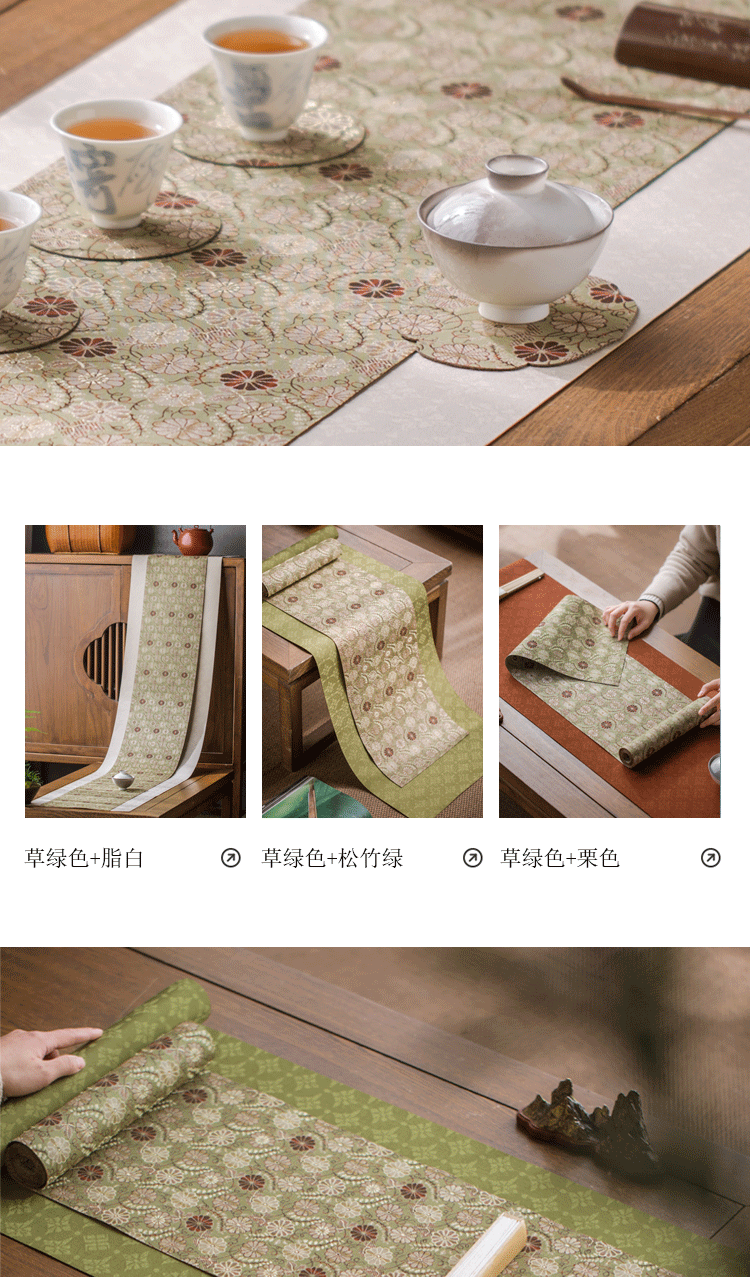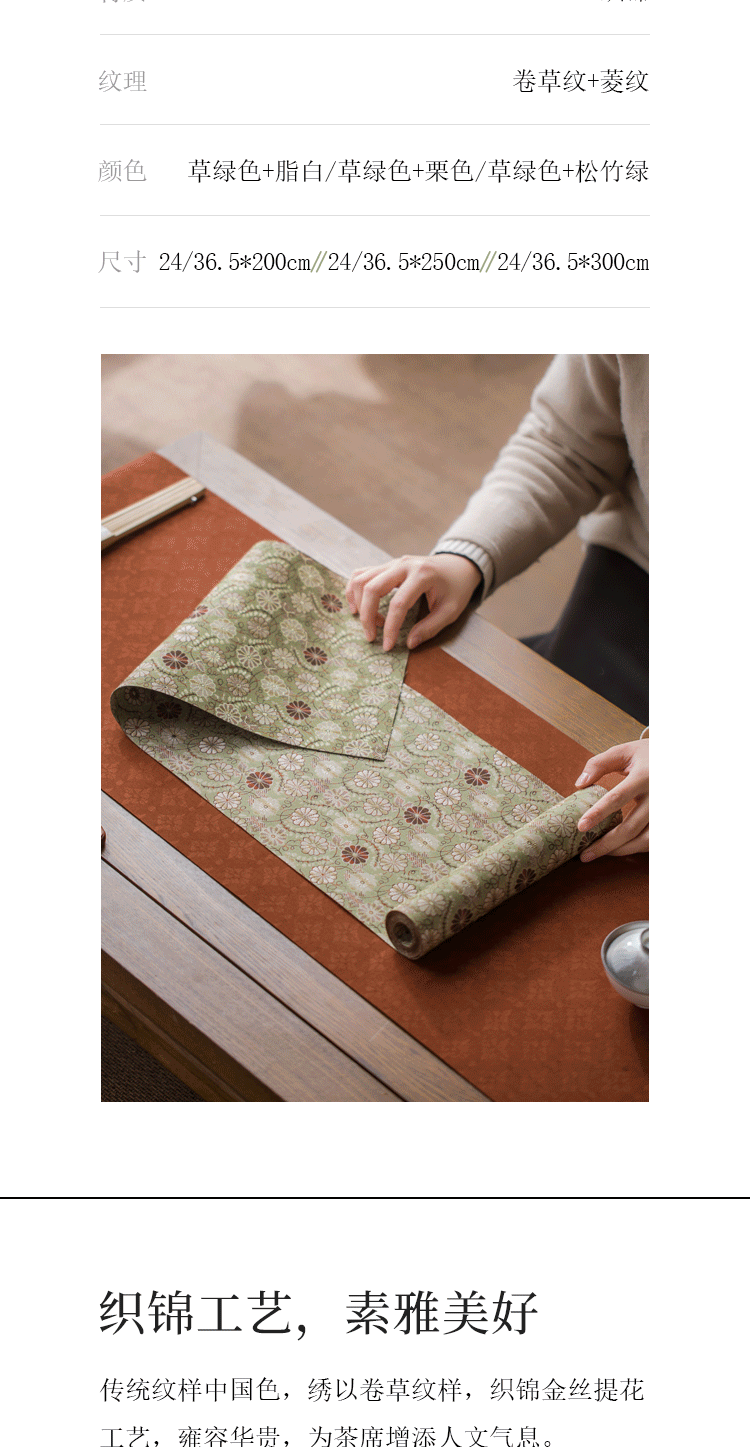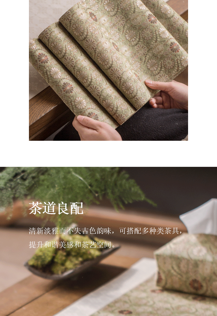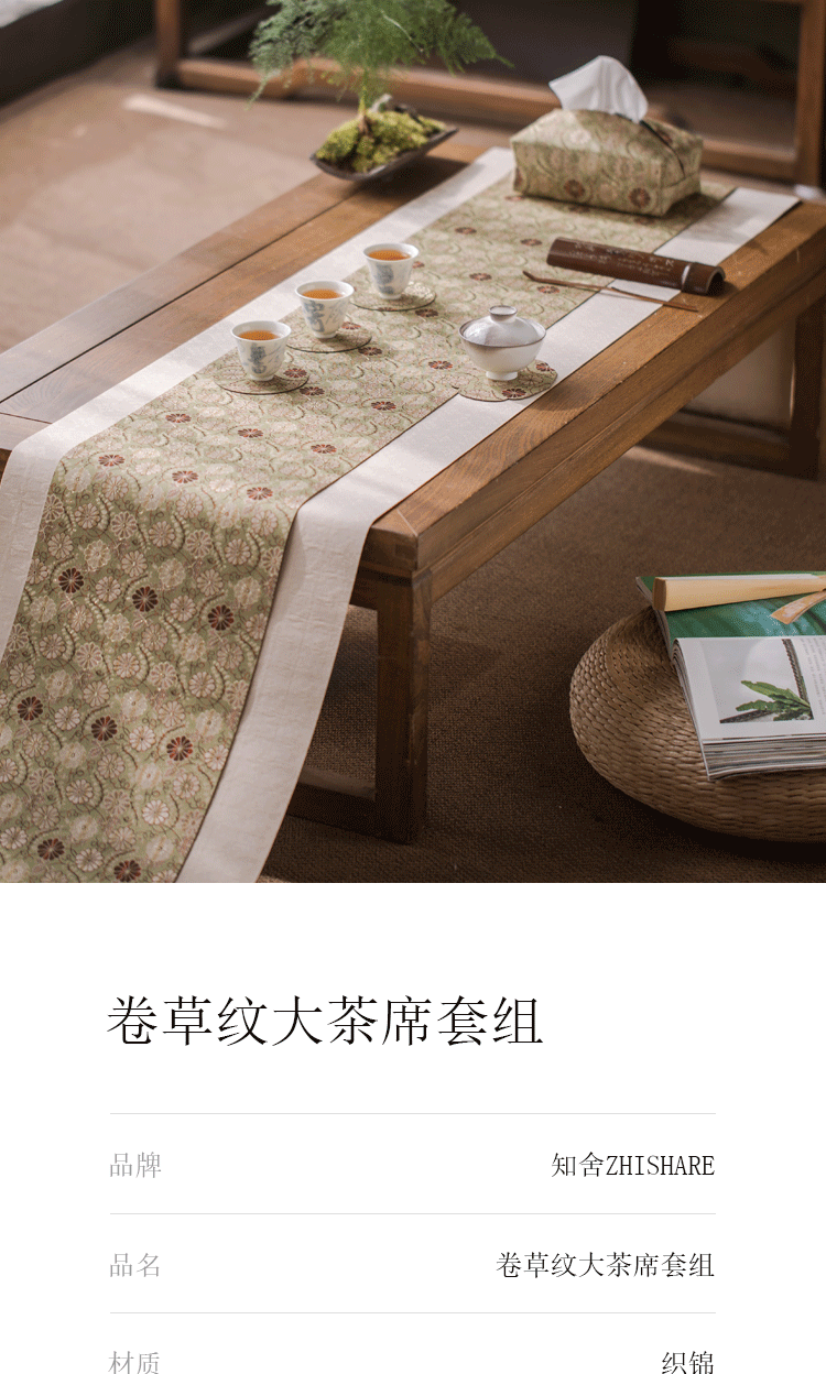 永利汇卷草纹茶席礼盒多色织锦双面用中式传统禅意百搭桌旗知舍