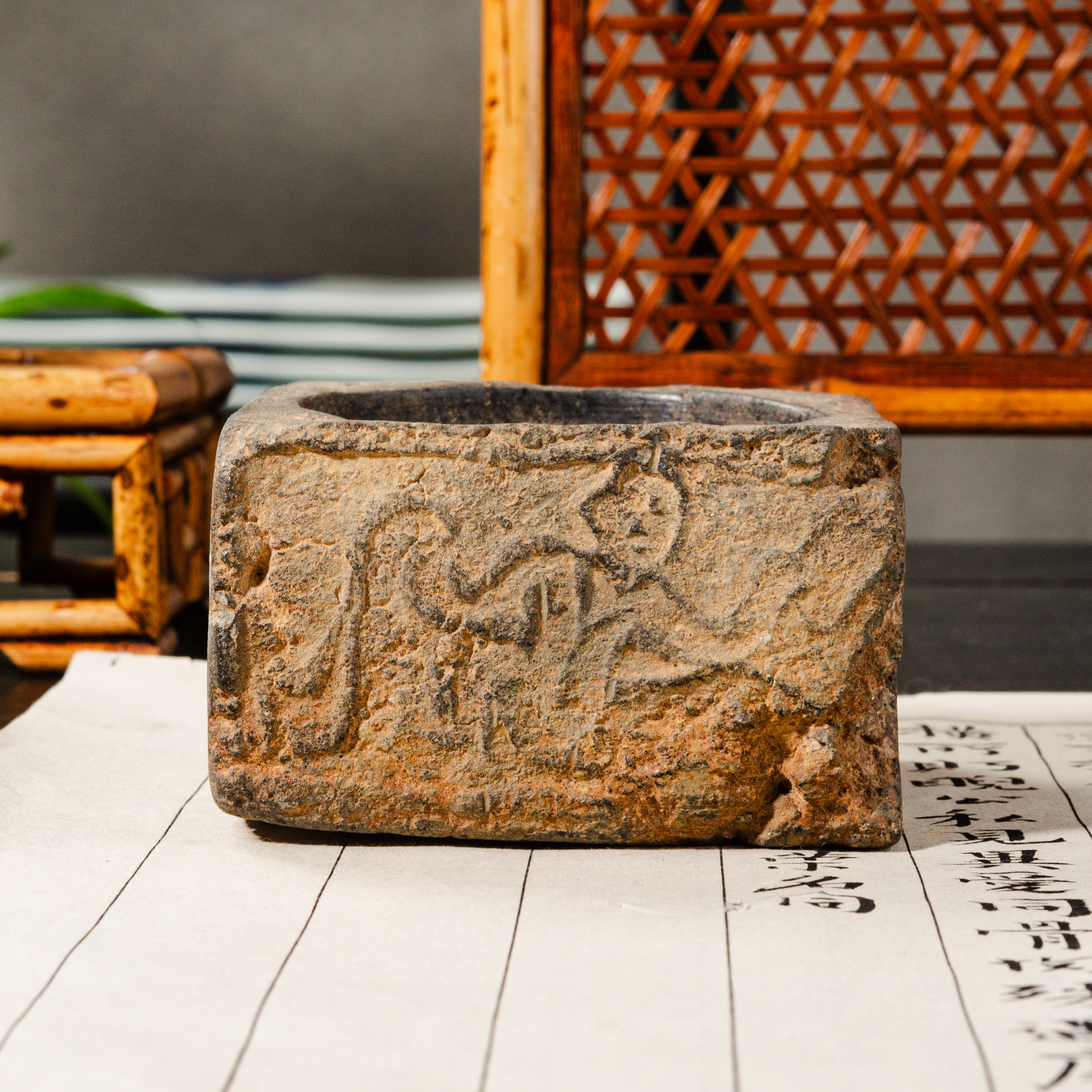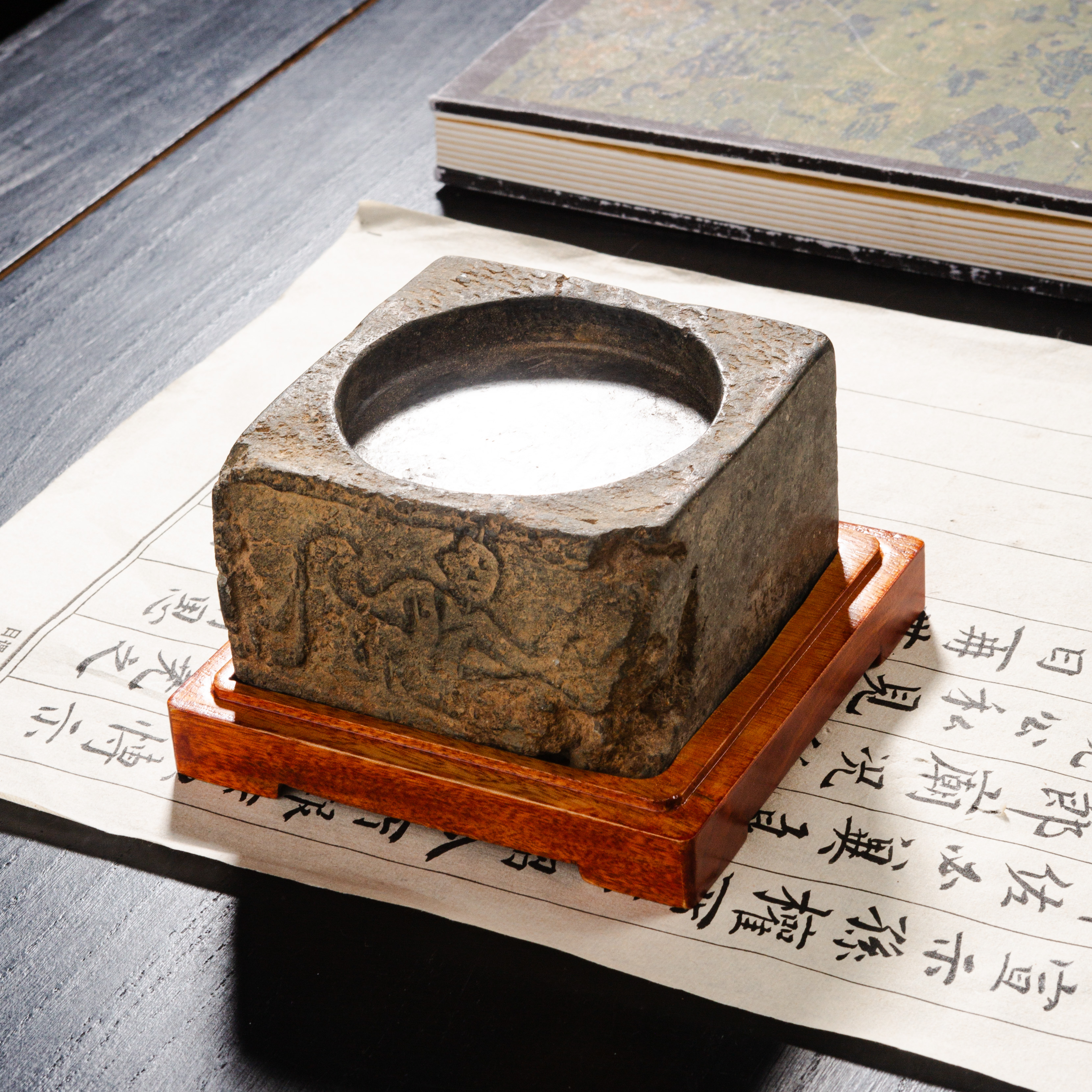 汉晋“仙人”古砖制砚,图案精美古朴,器型饱满端庄,胎质坚实细腻,配有手工精制刻字木盒。是文人案头之佳品。