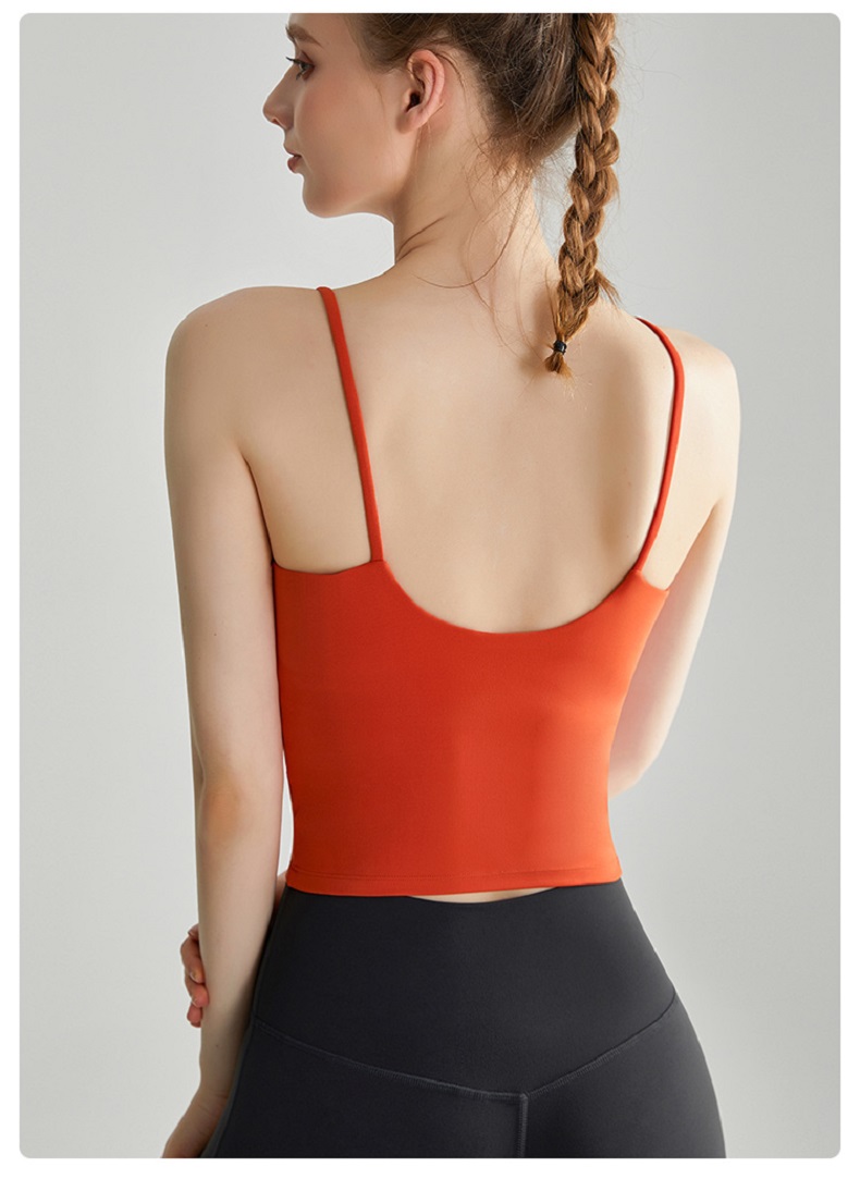 【运动必备】【细肩U型,修饰脸型】新款女细肩带U型美背运动内衣健身吊带瑜伽背心女胸垫一体中高强度防震文胸100%