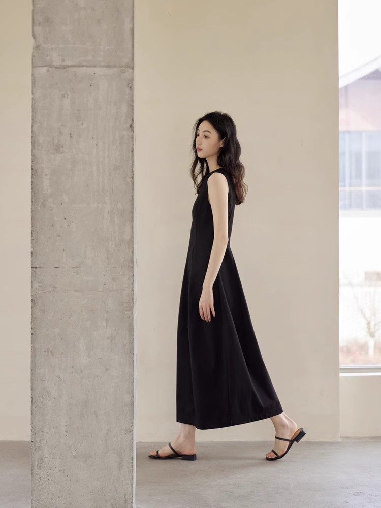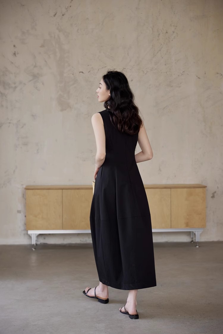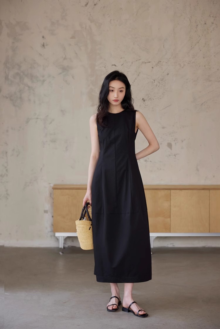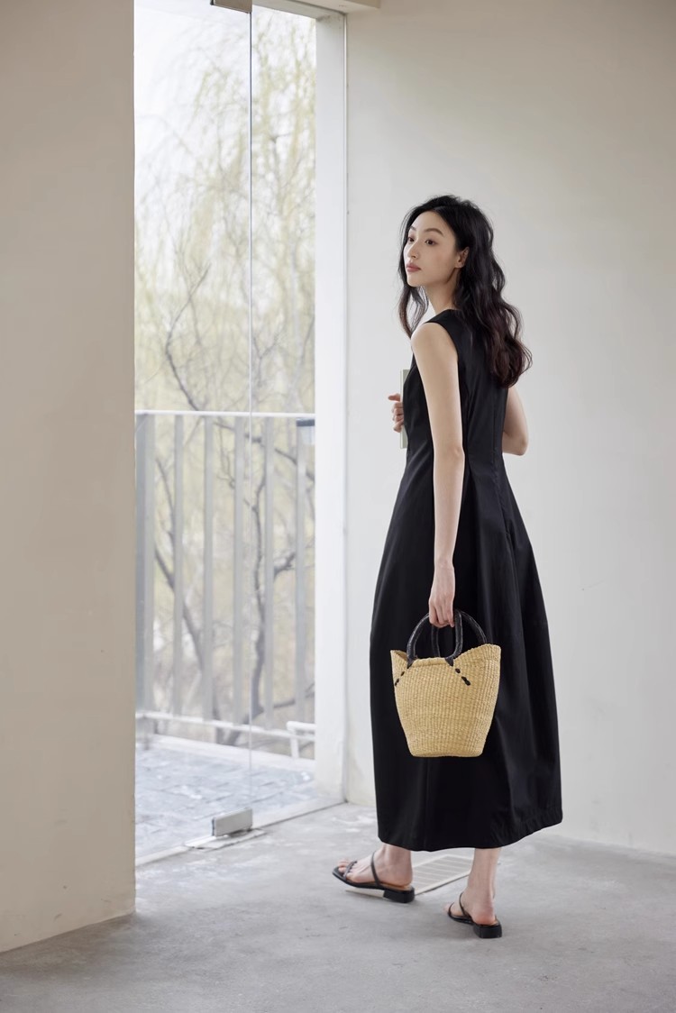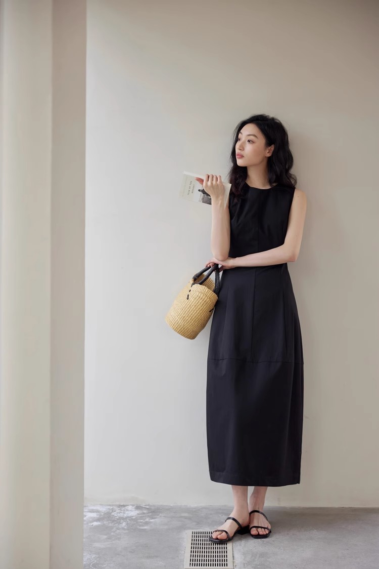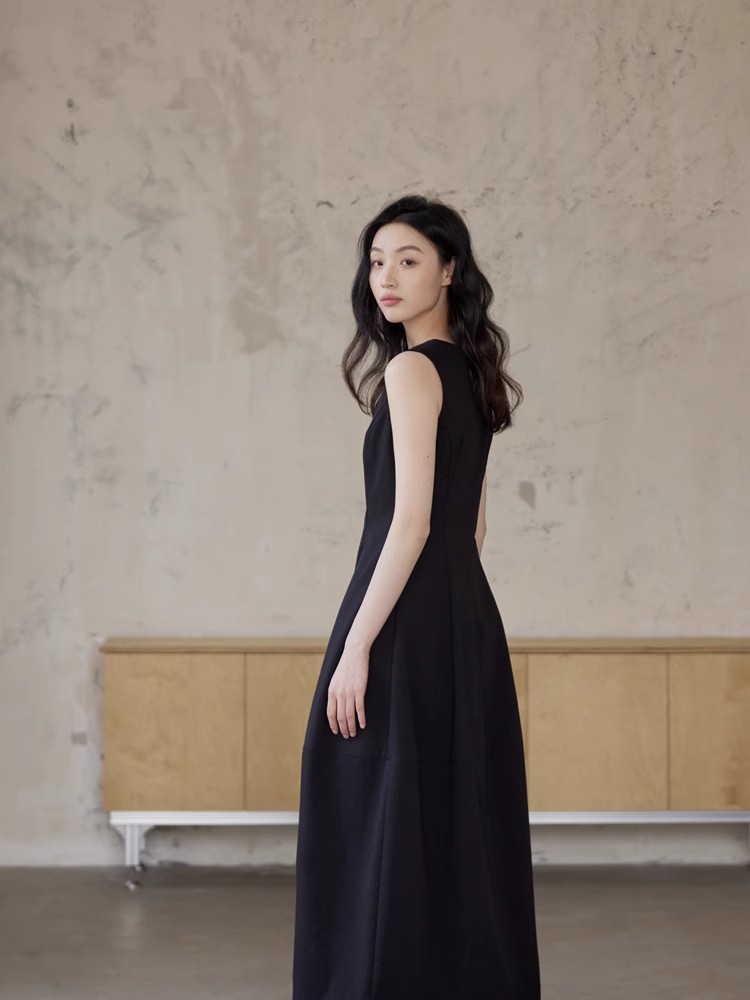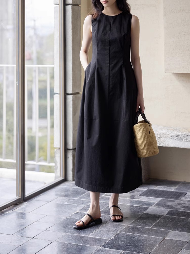Charming姹弥·简约高级感休闲黑色连衣裙女夏季设计感宽松气质显瘦花苞长裙