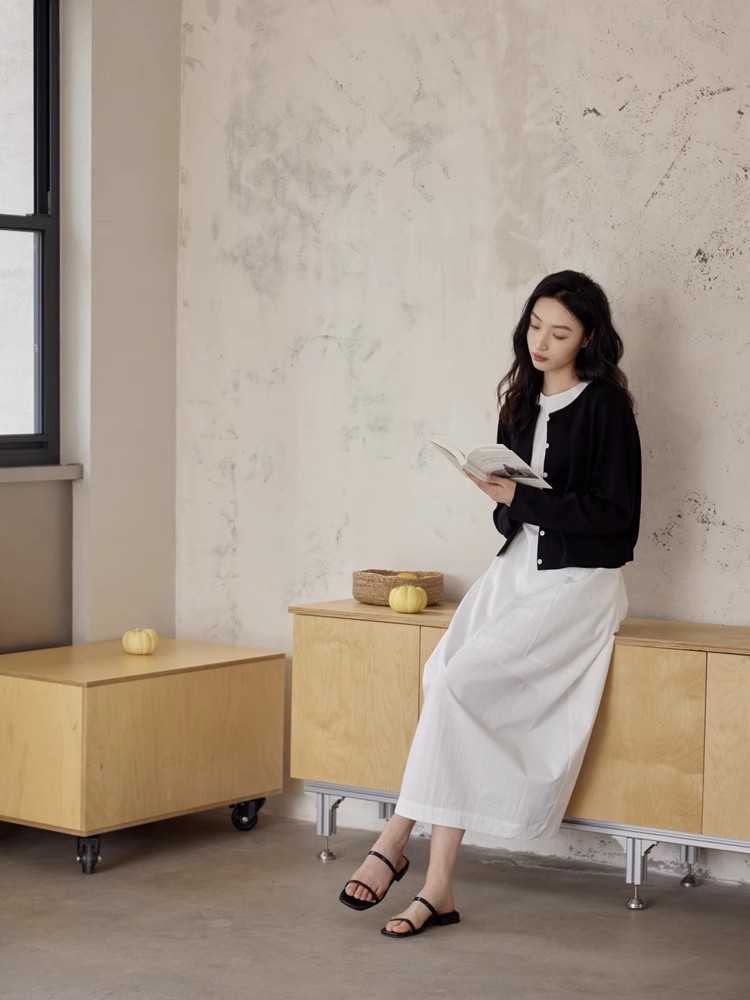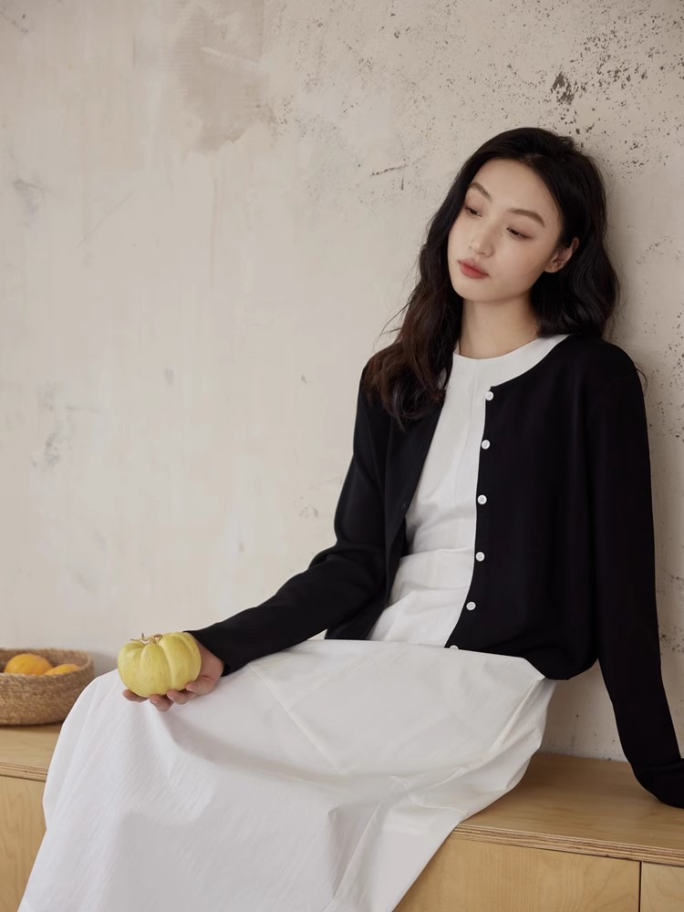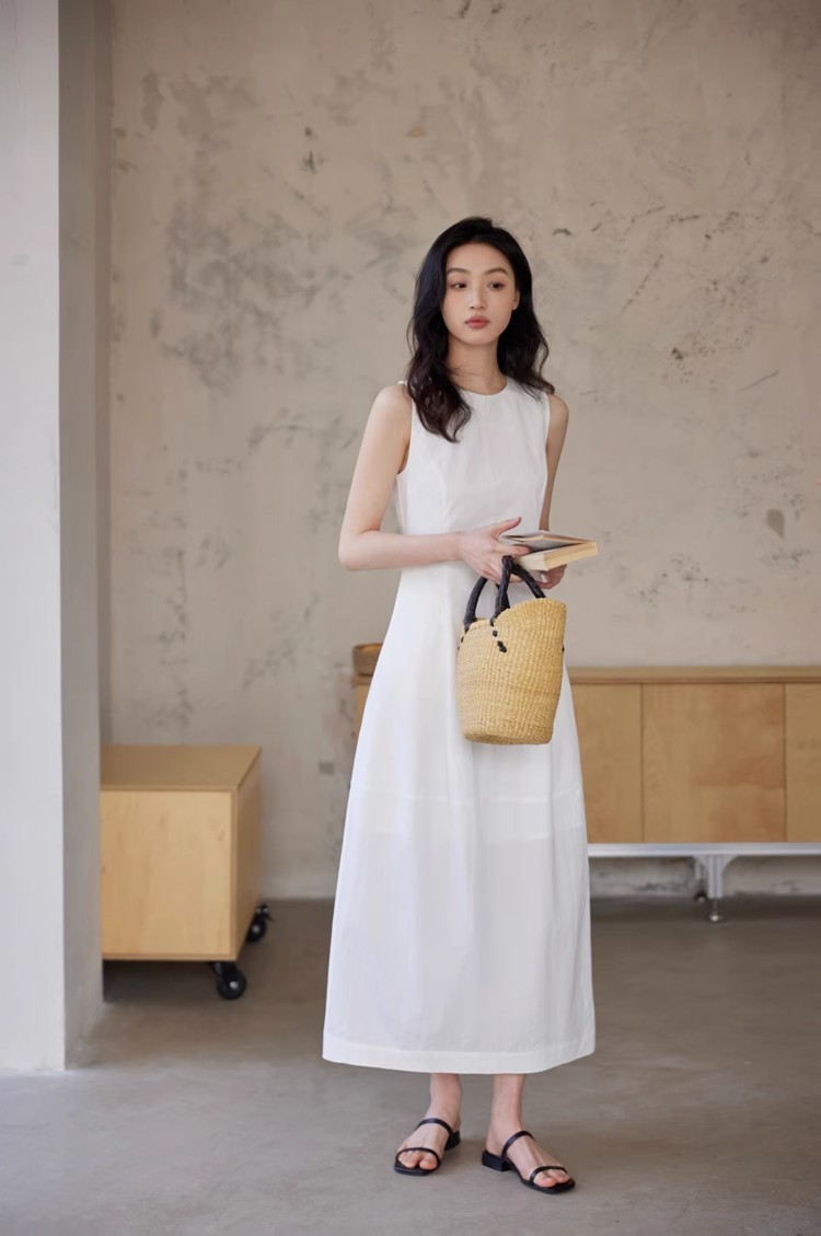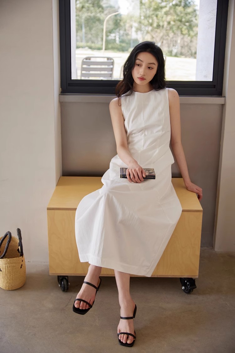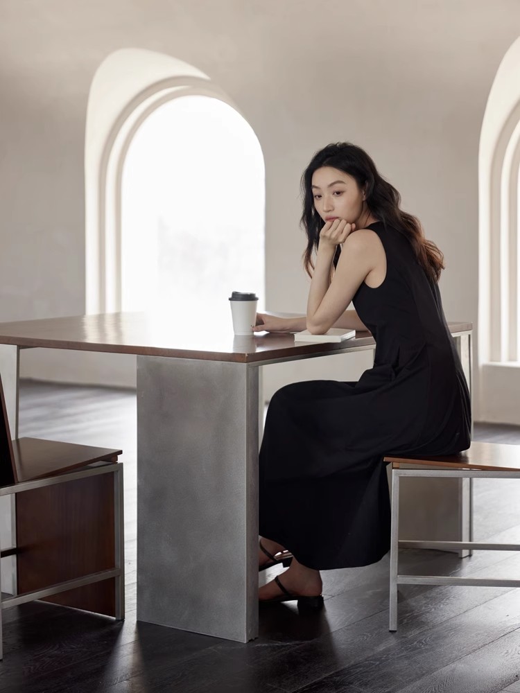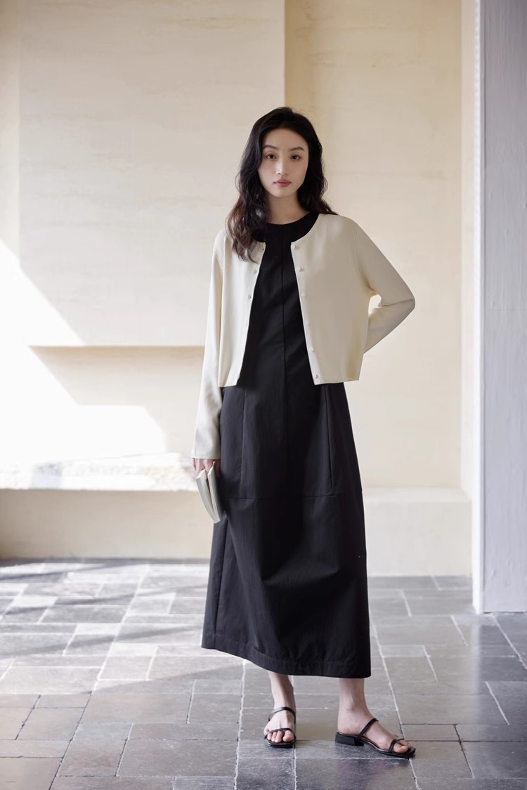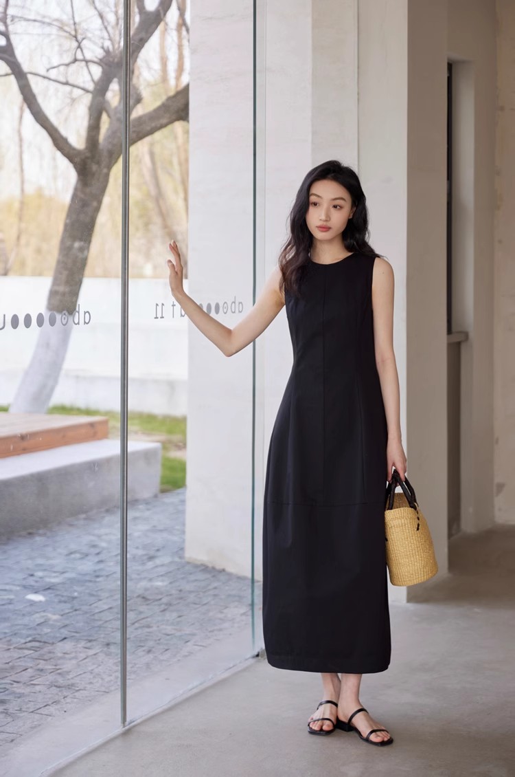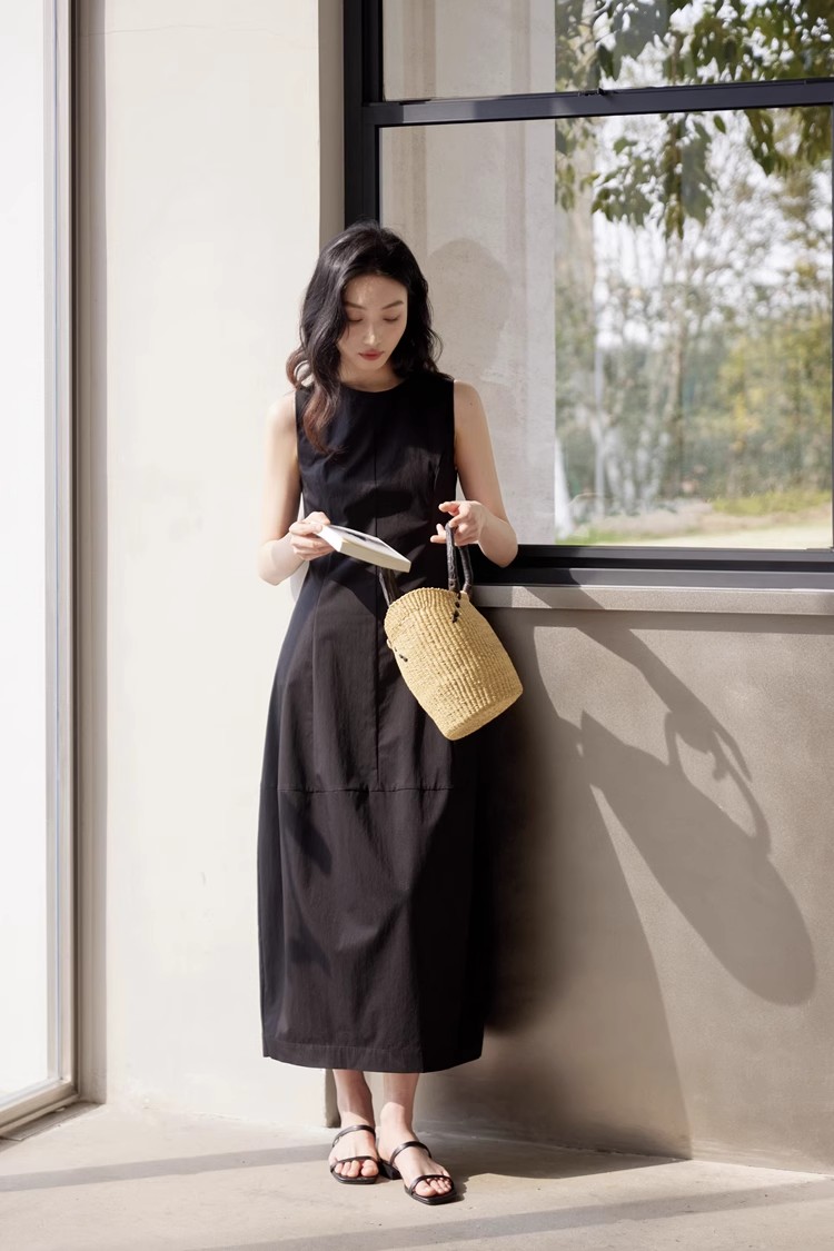 Charming姹弥·简约高级感休闲黑色连衣裙女夏季设计感宽松气质显瘦花苞长裙