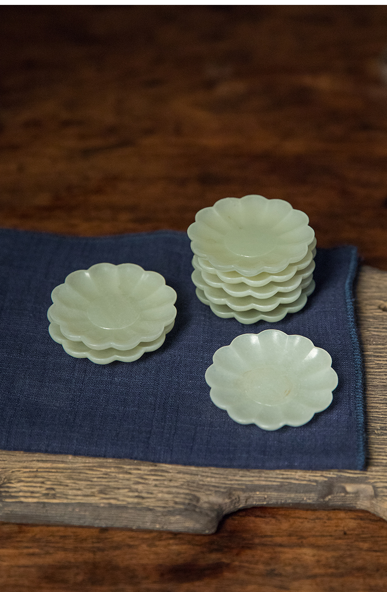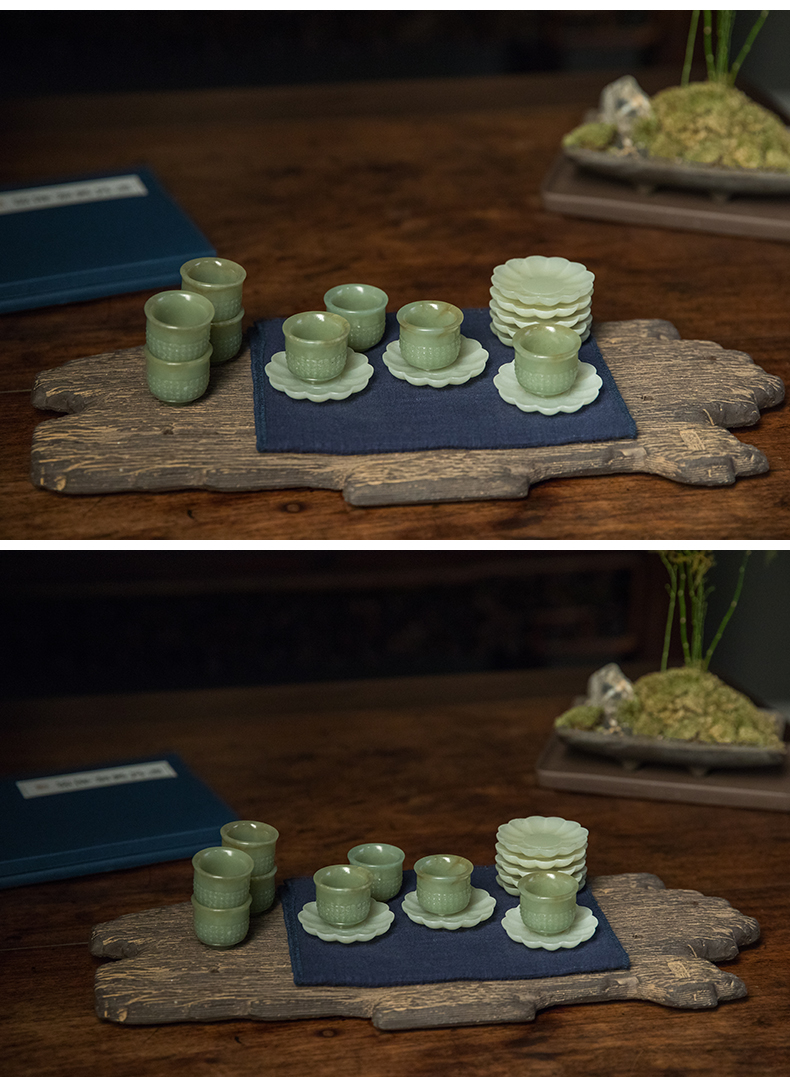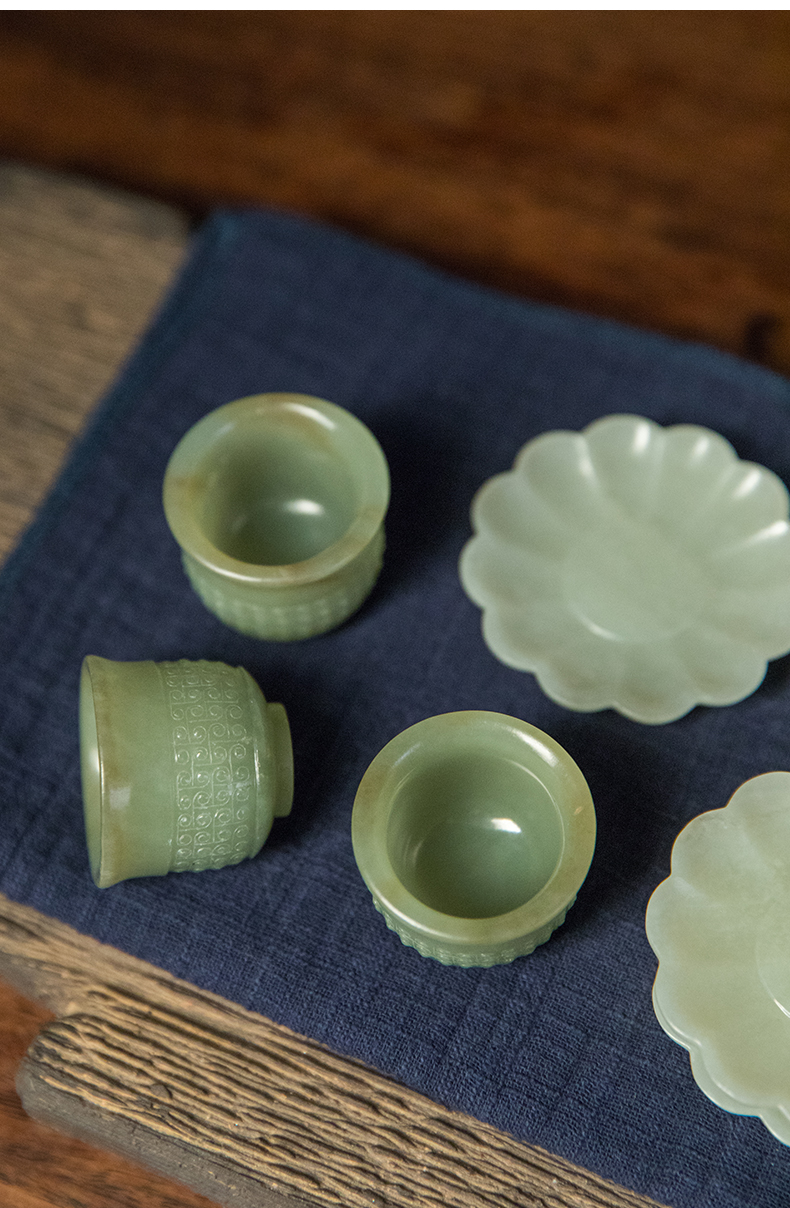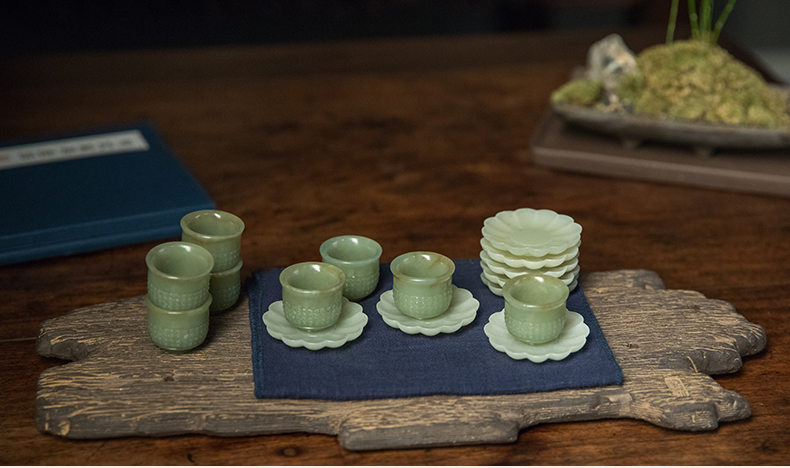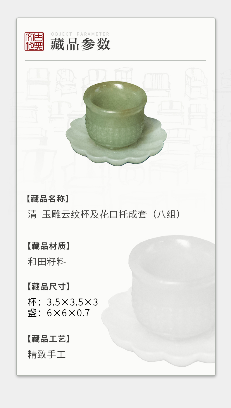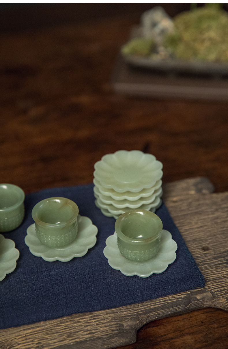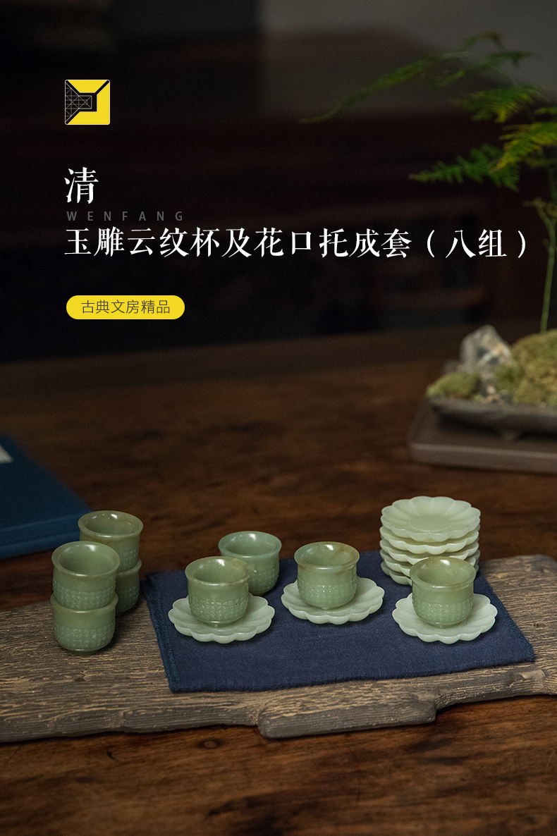 清 玉雕云纹杯及花口托成套(八组)
