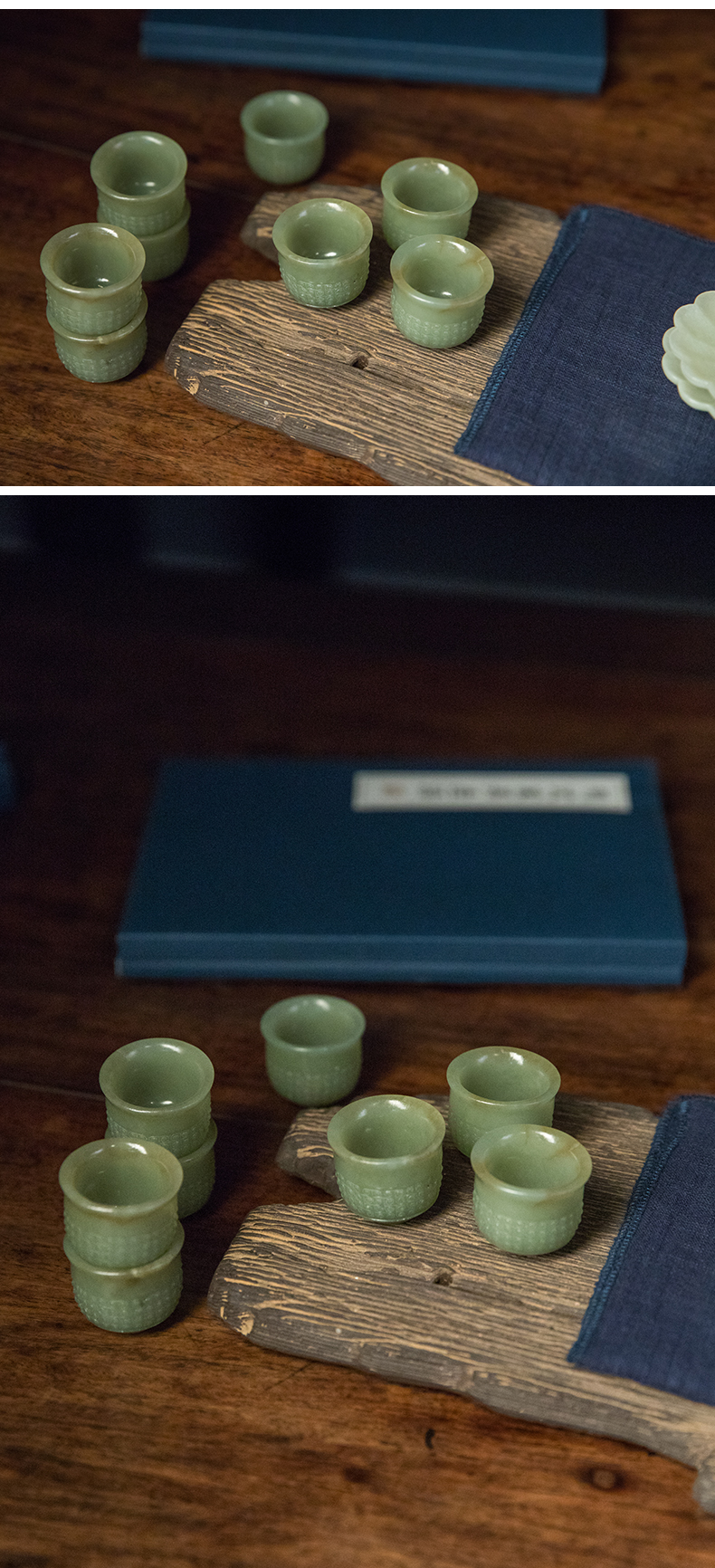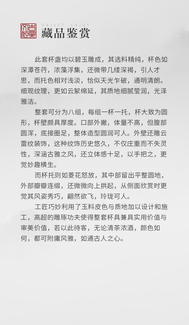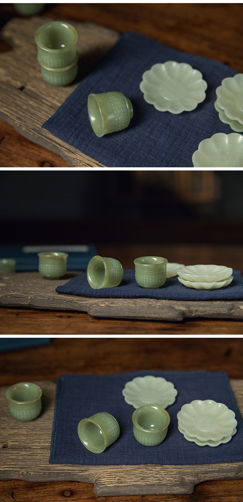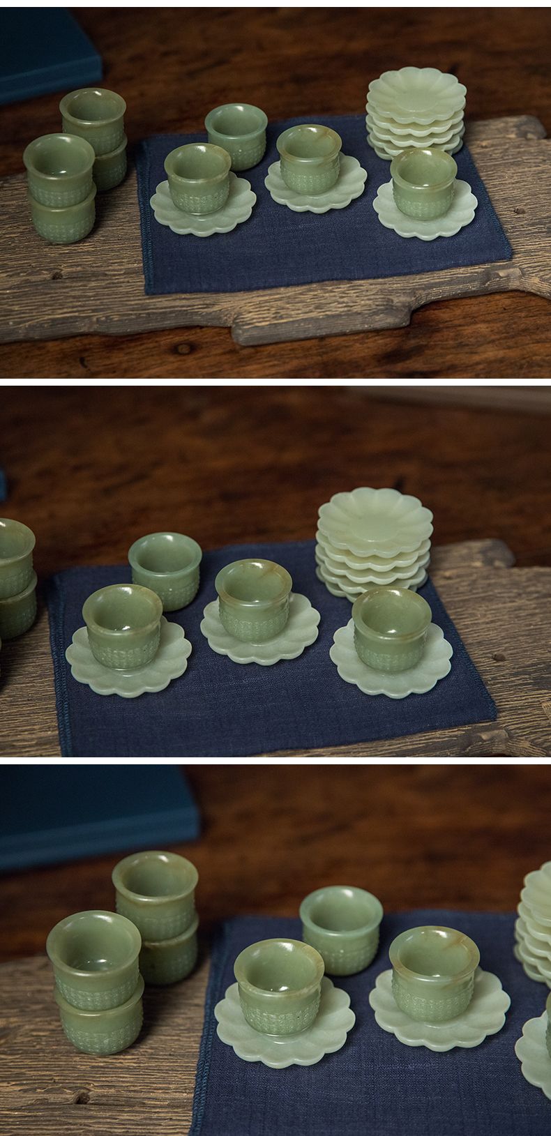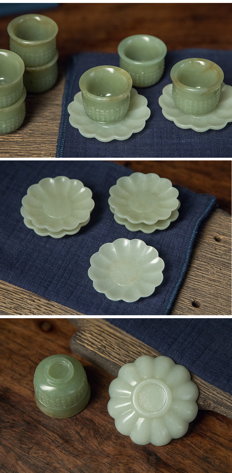 清 玉雕云纹杯及花口托成套(八组)