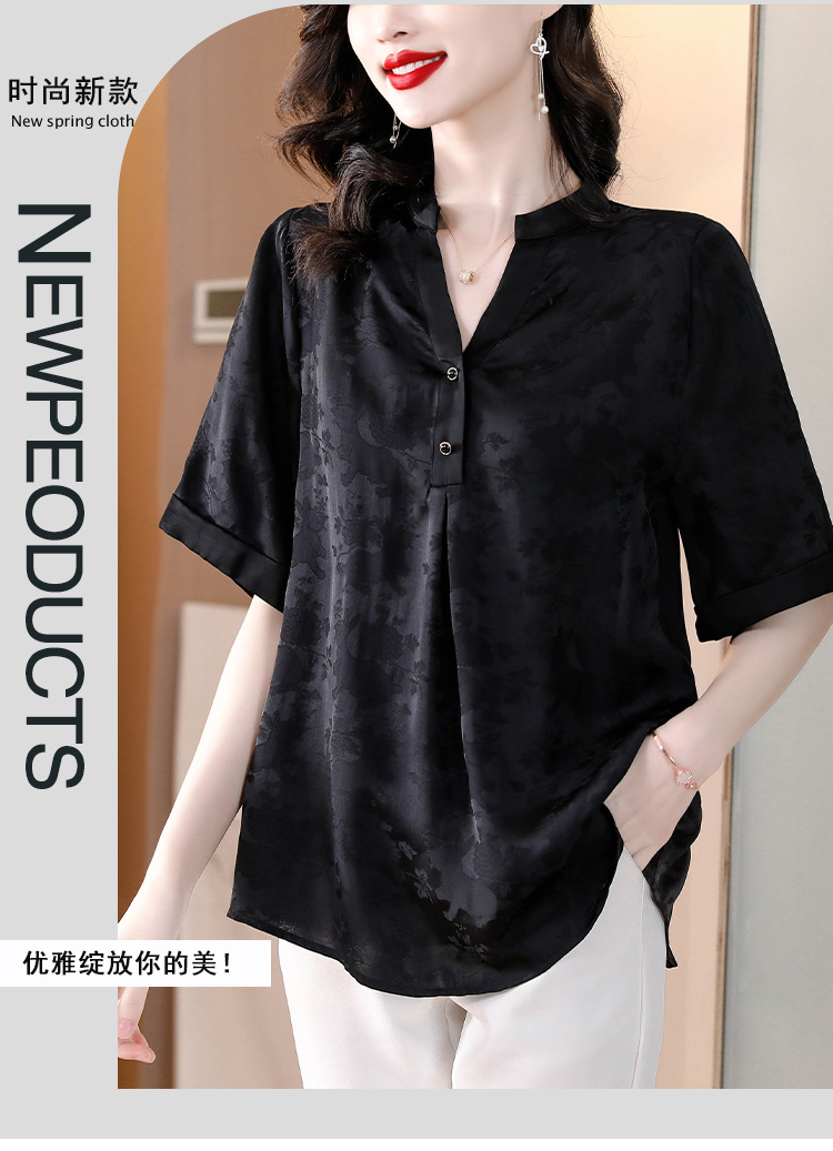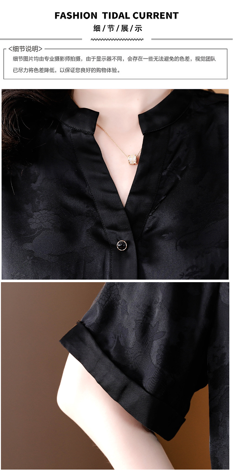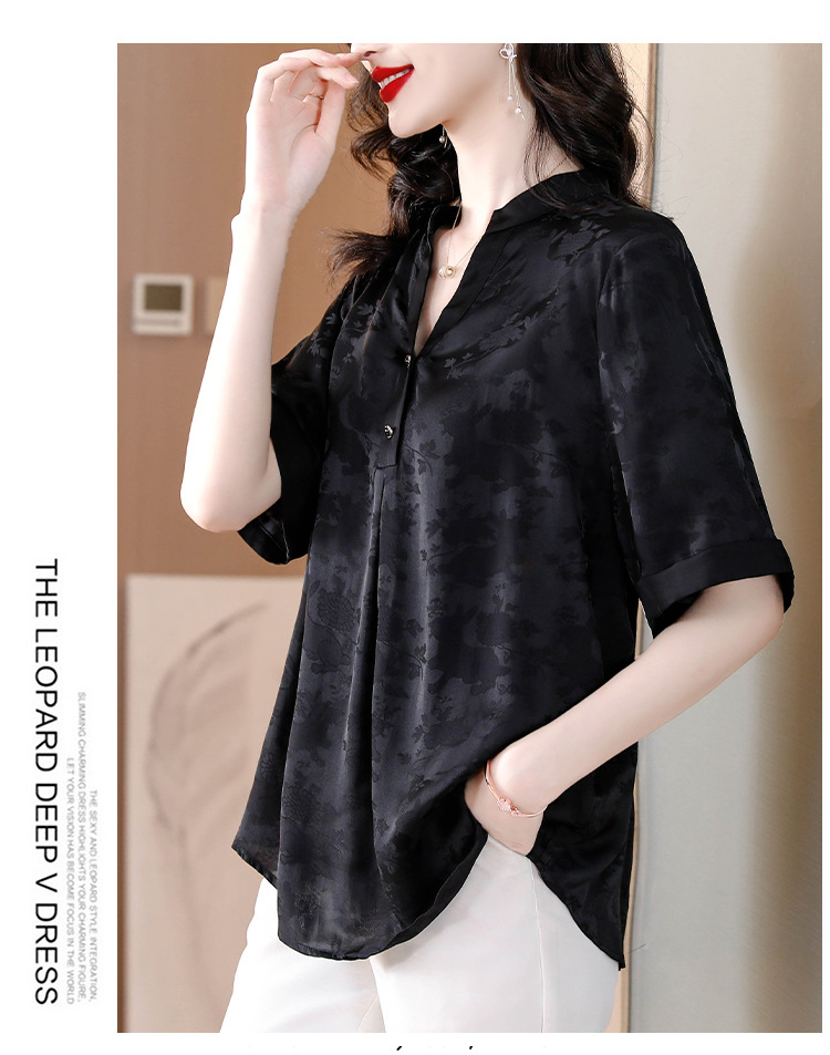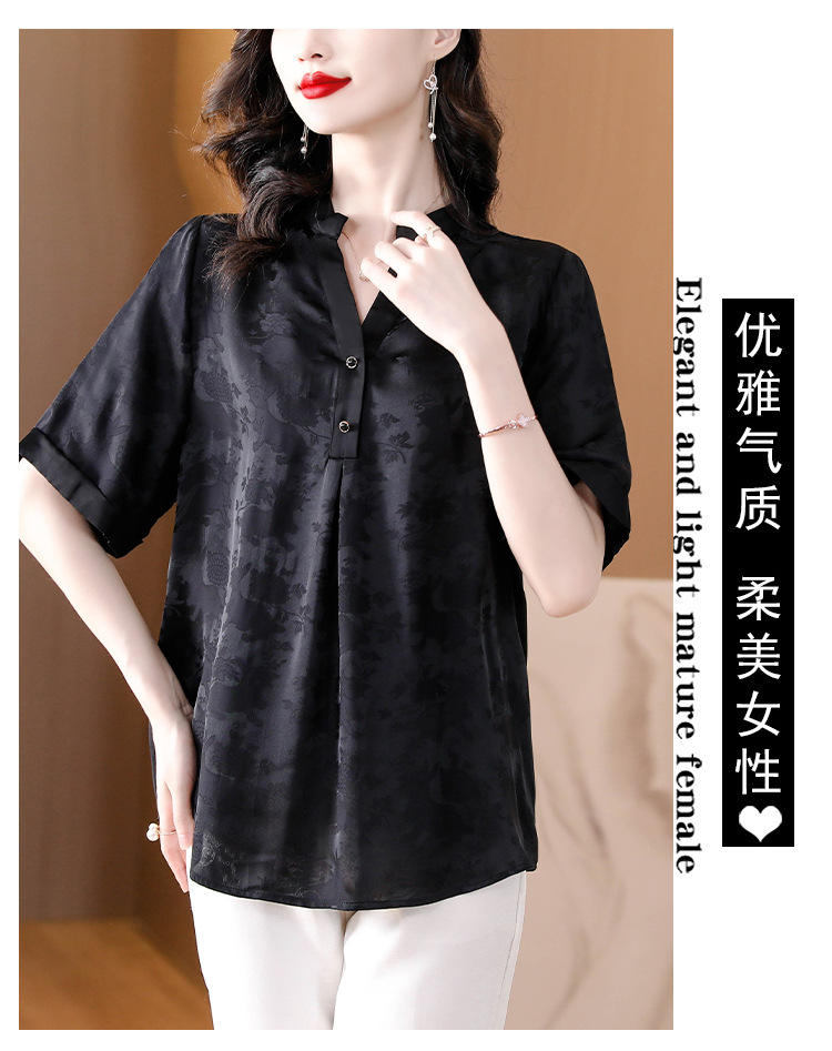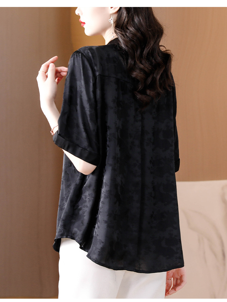 女短袖衬衫夏季新款妈妈小衫宽松遮肚子黑色上衣
