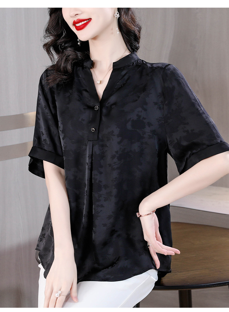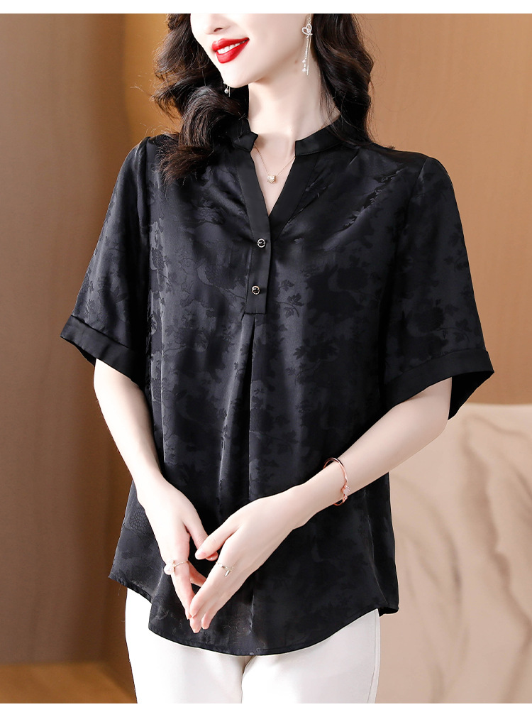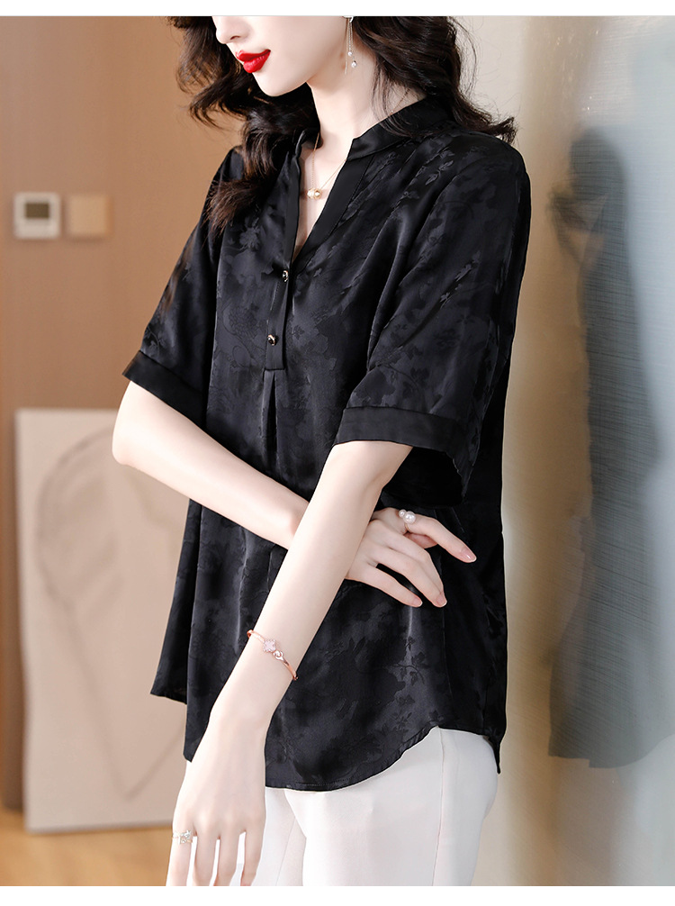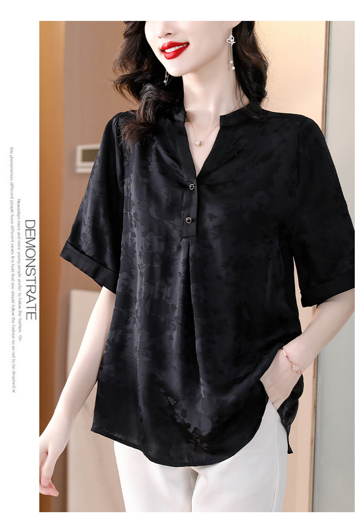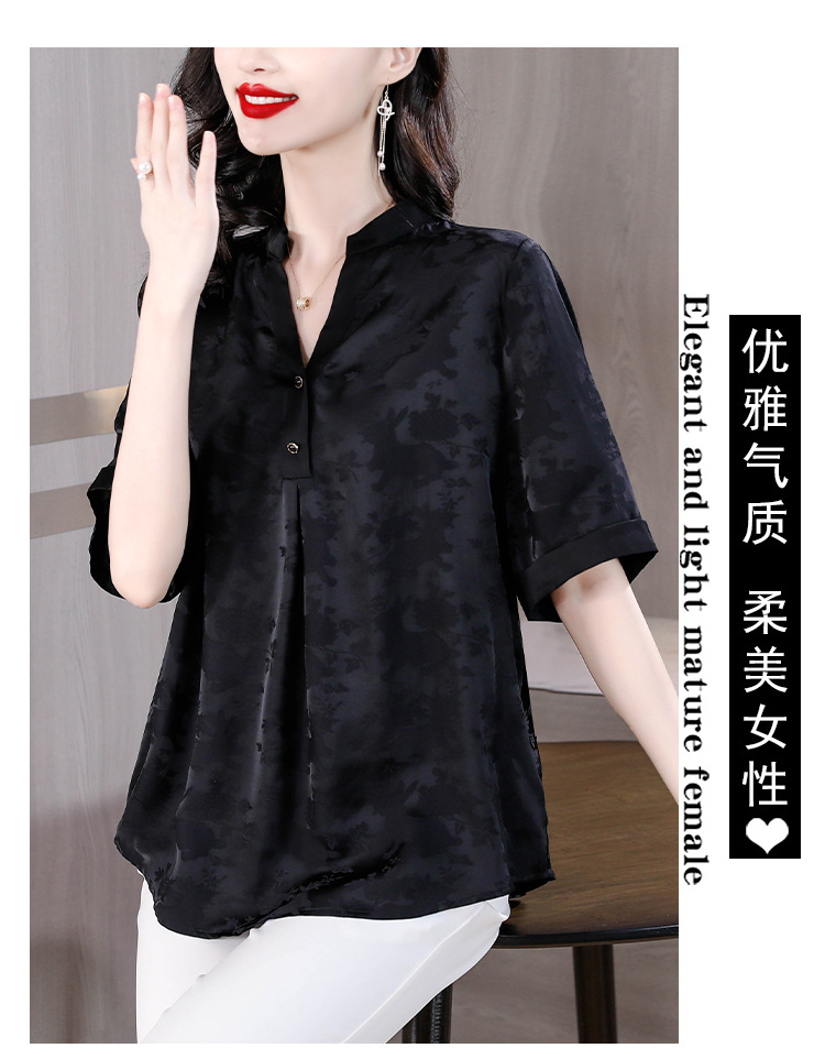 女短袖衬衫夏季新款妈妈小衫宽松遮肚子黑色上衣
