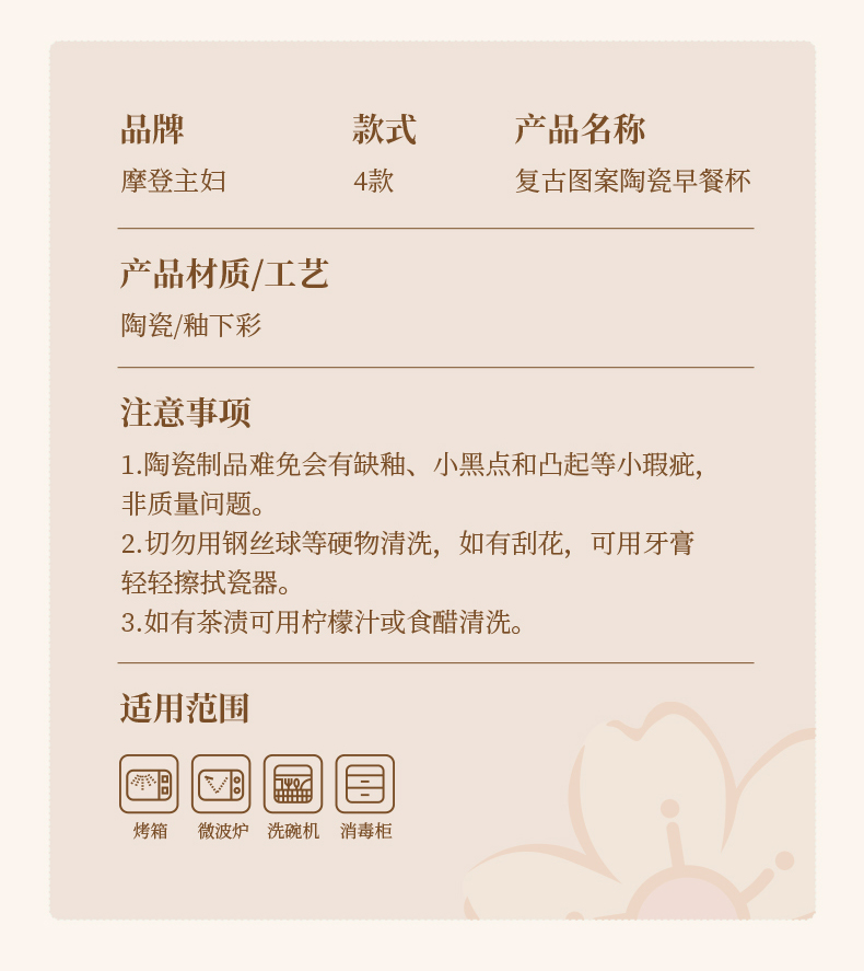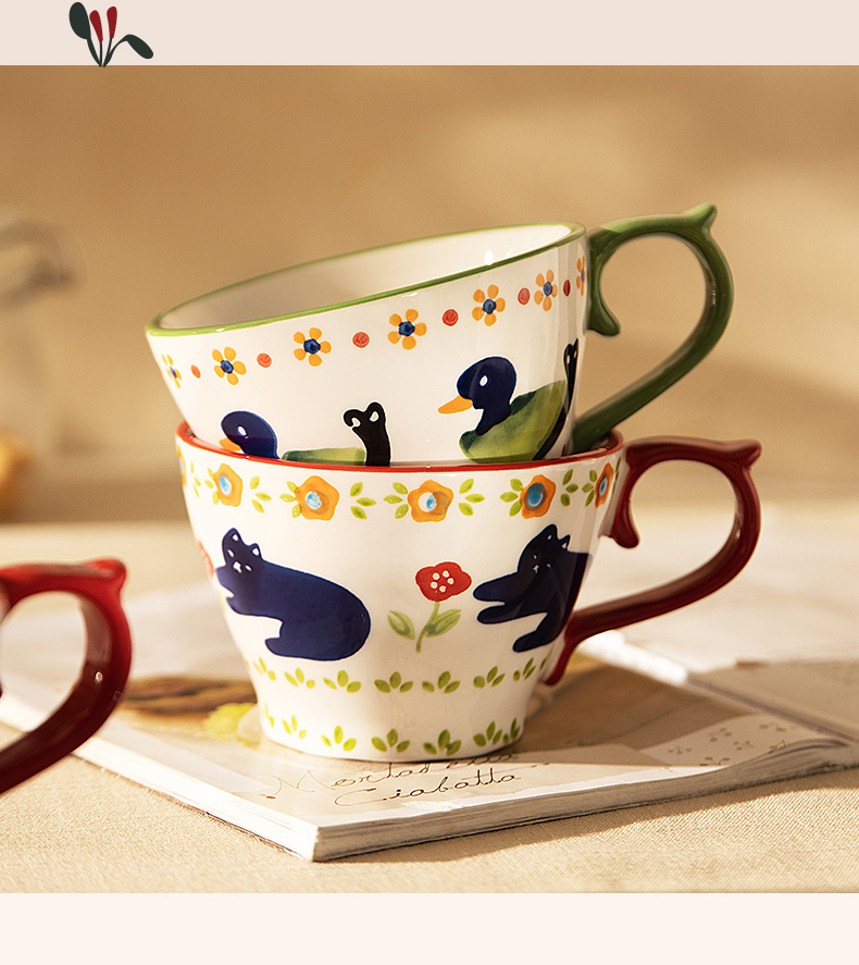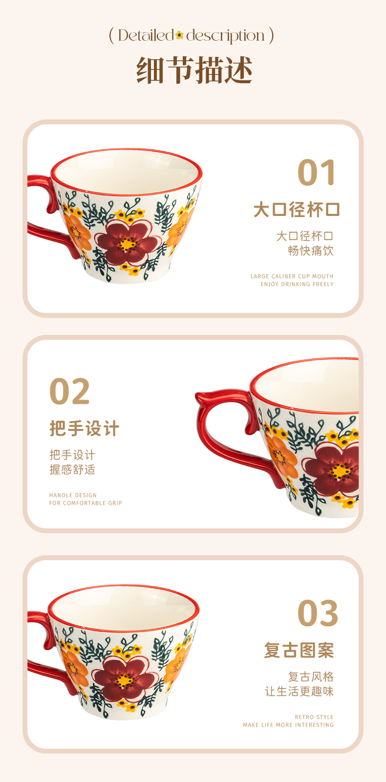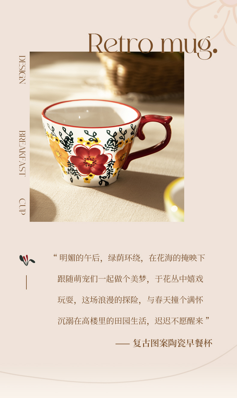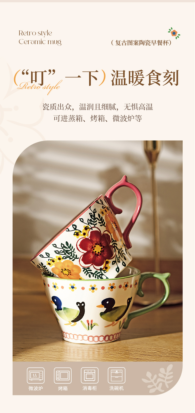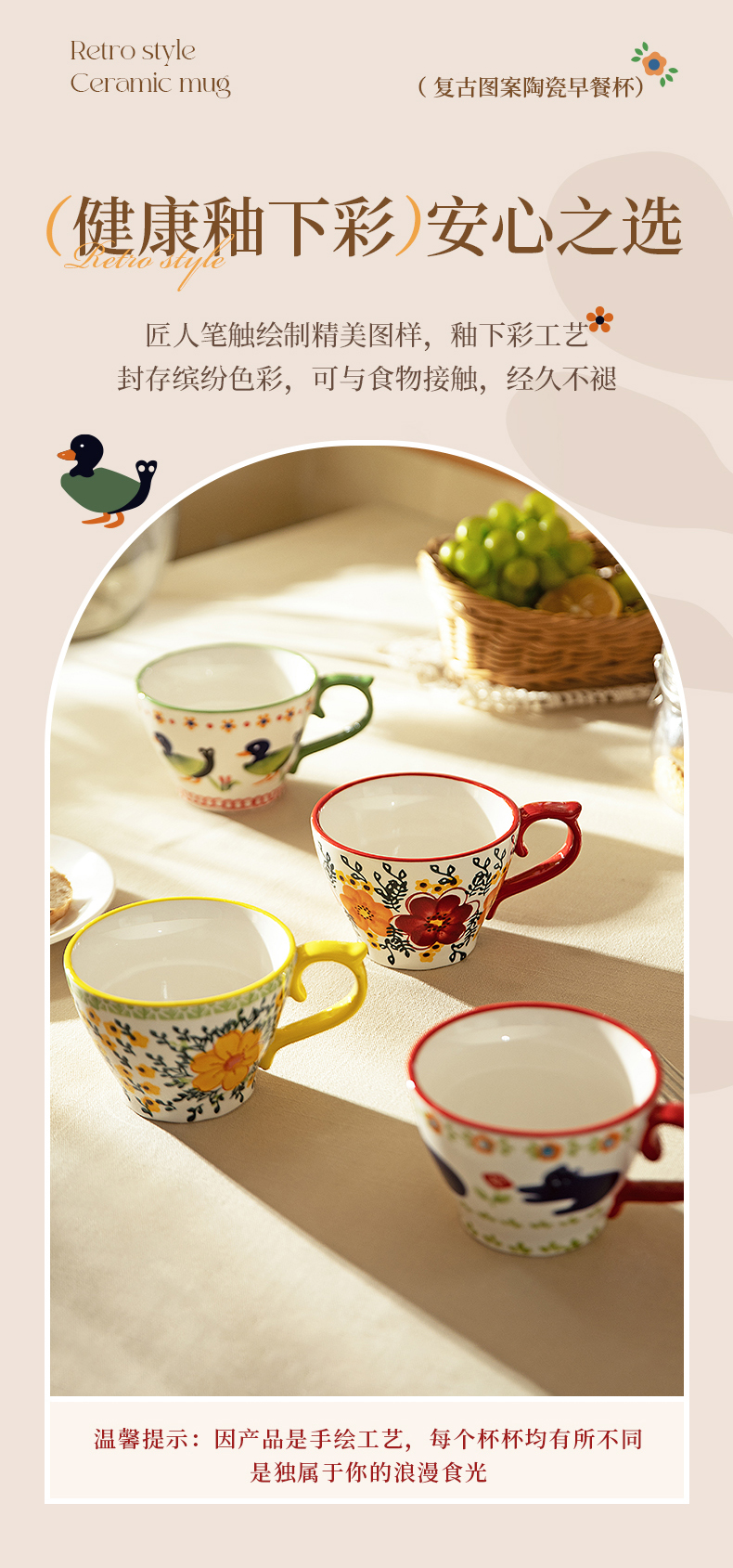 摩登主妇原创釉下彩马克杯家用早餐杯咖啡杯子复古陶瓷杯创意水杯