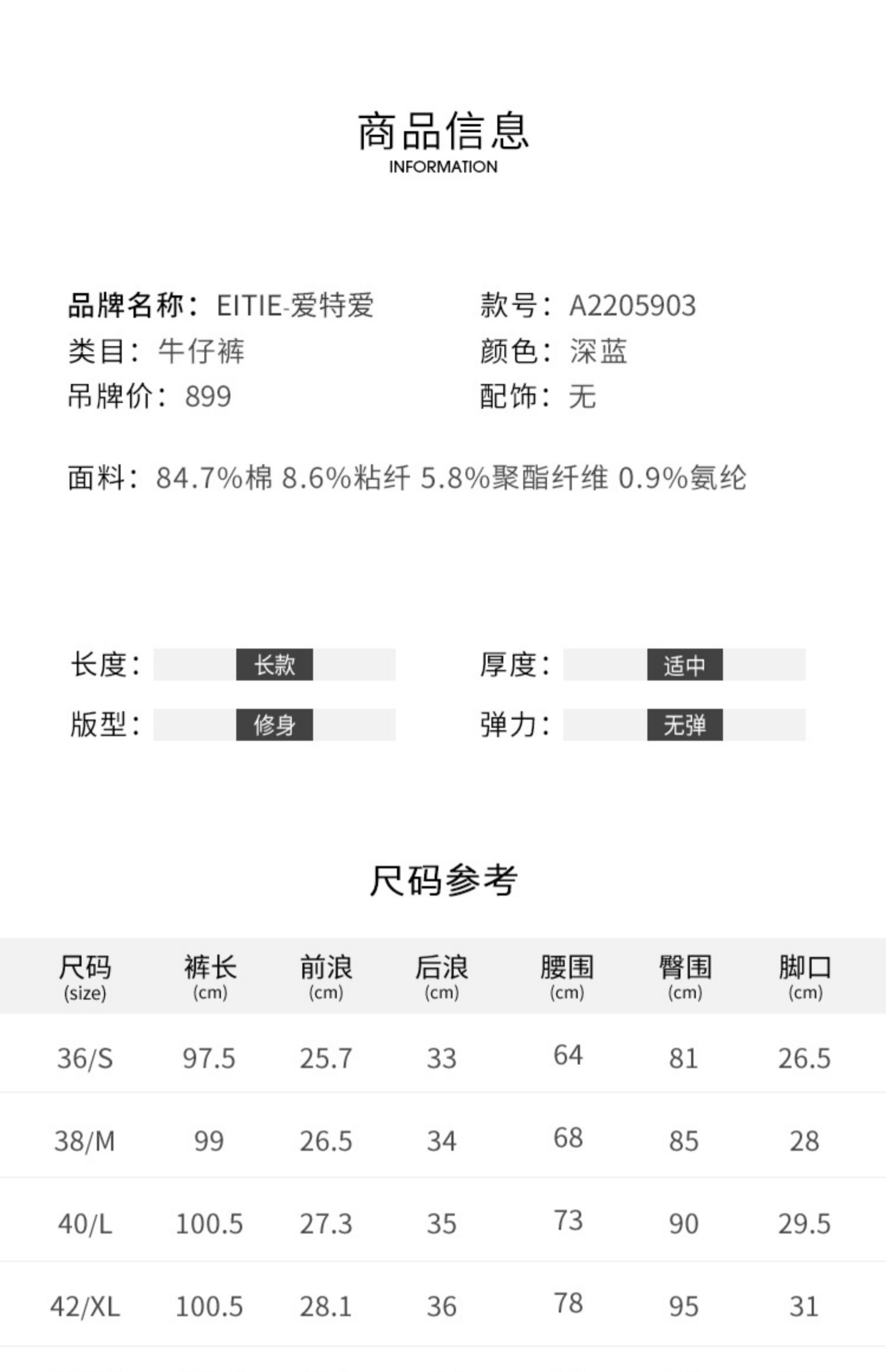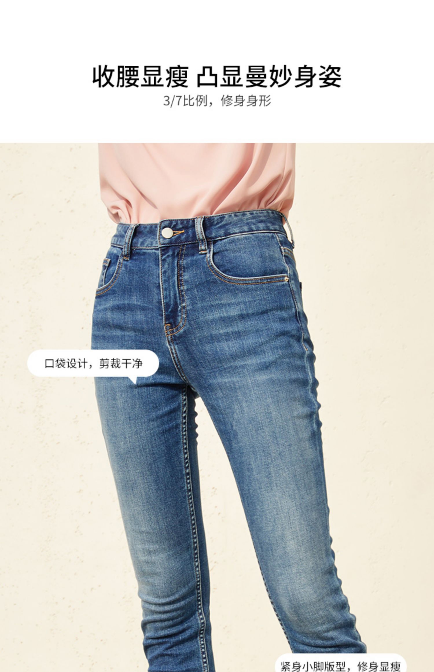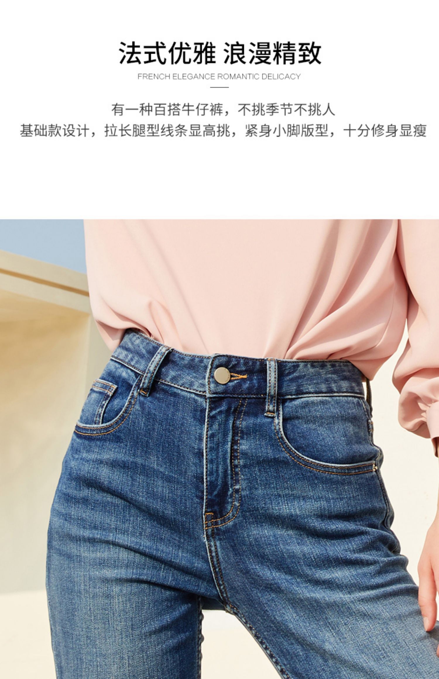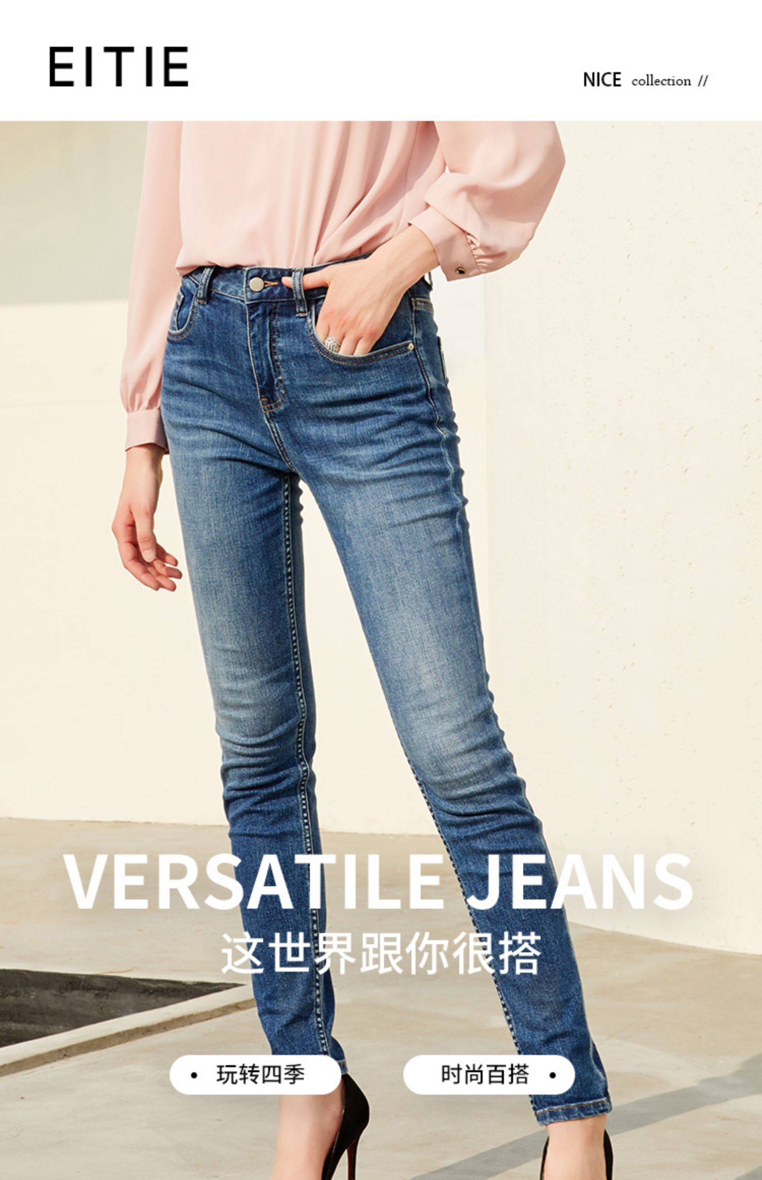 EITIE爱特爱春季新款简约通勤时尚显瘦小脚修身牛仔裤长裤女A2205903