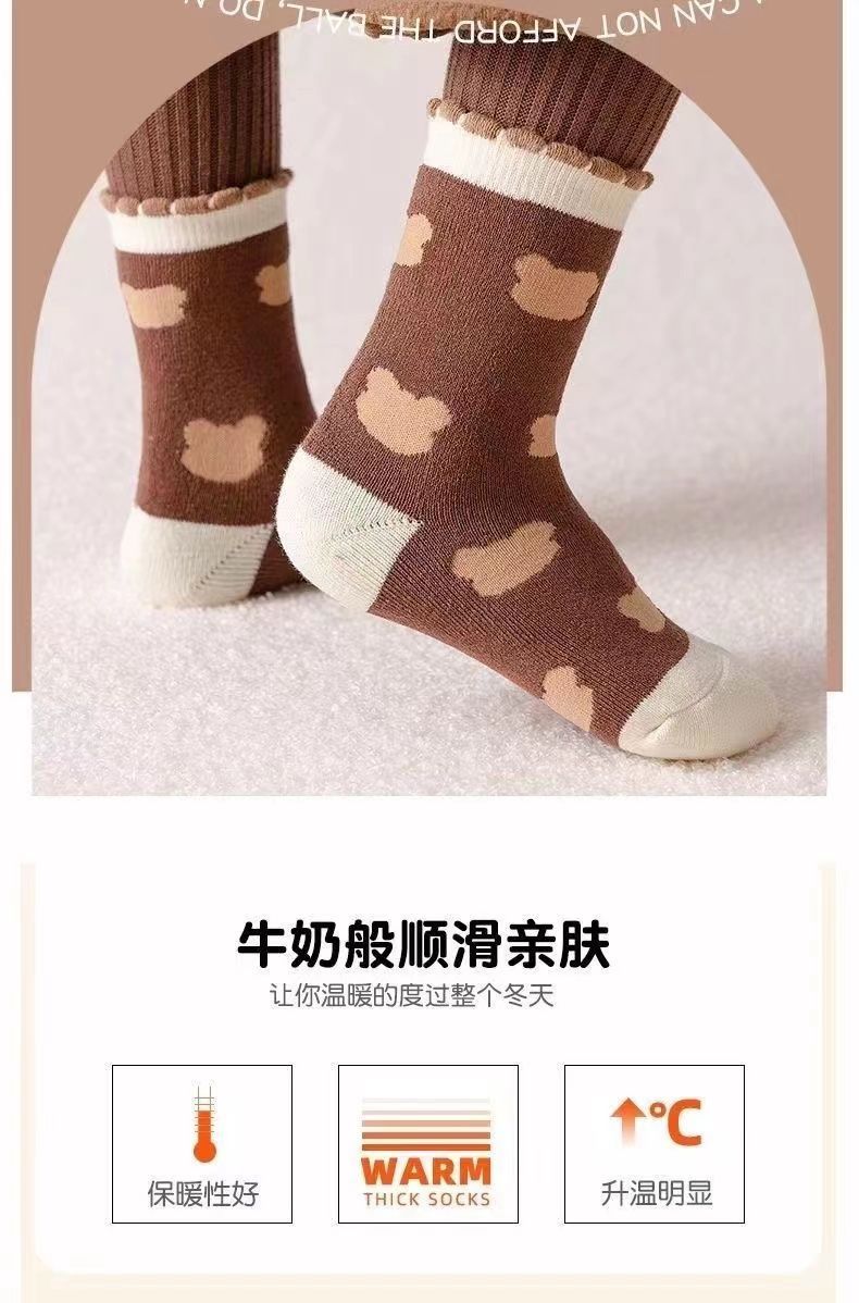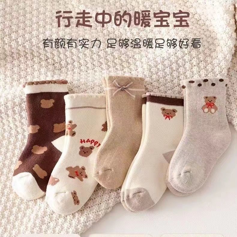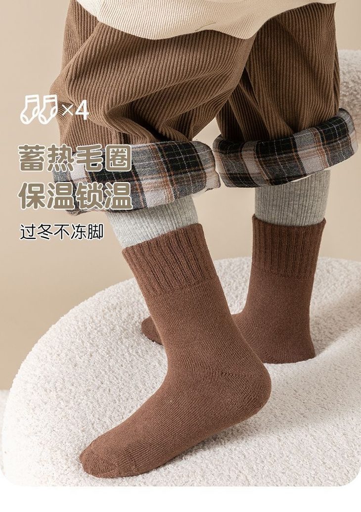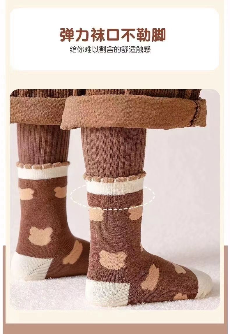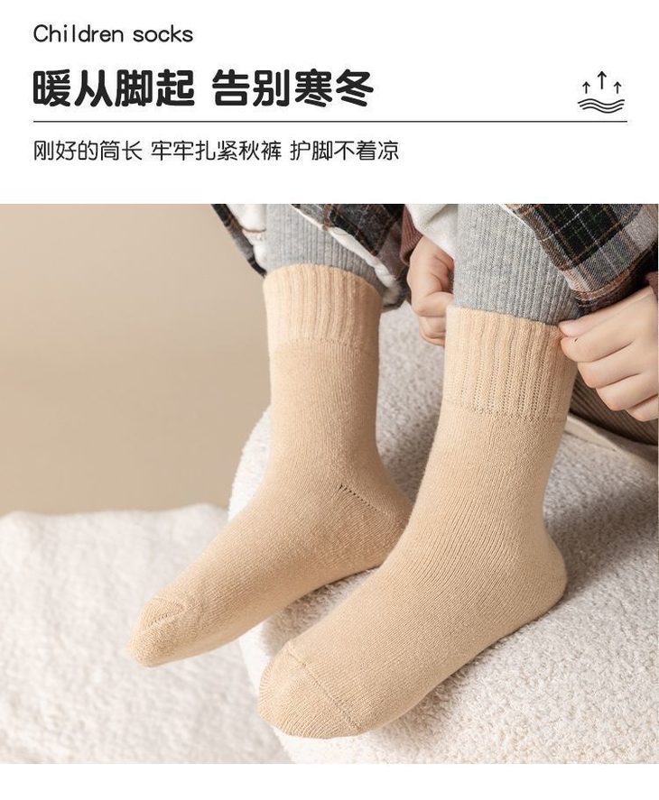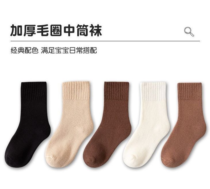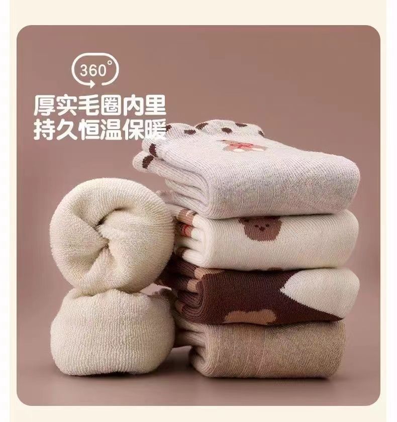 【秒杀】15.9元【5双装】秋冬男女童防寒保暖加绒加厚儿童袜子宝宝女孩中筒毛巾袜毛圈棉袜0-13岁
