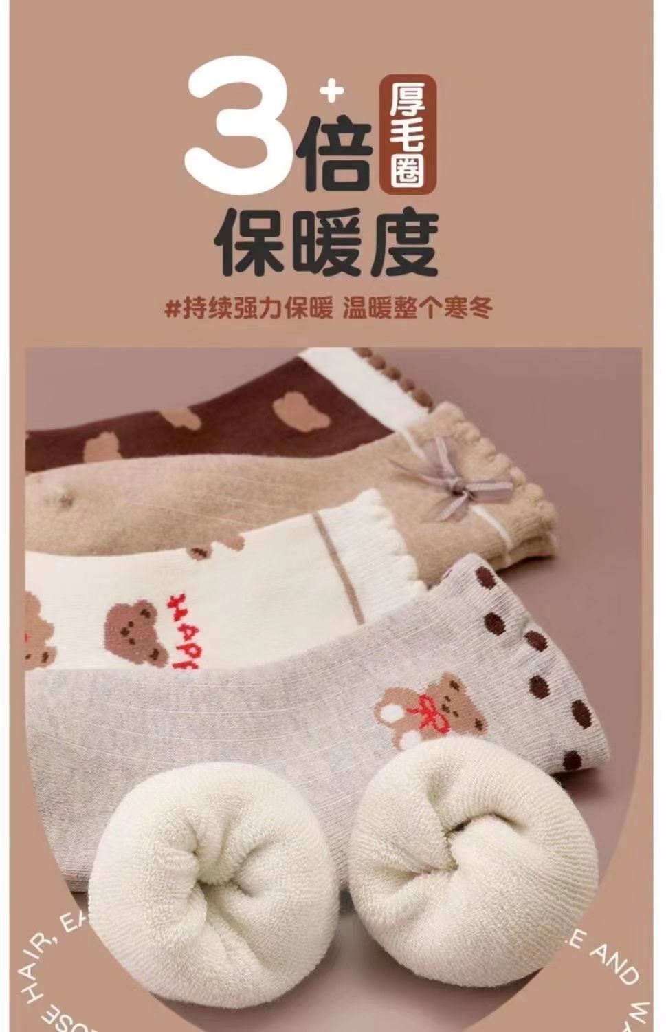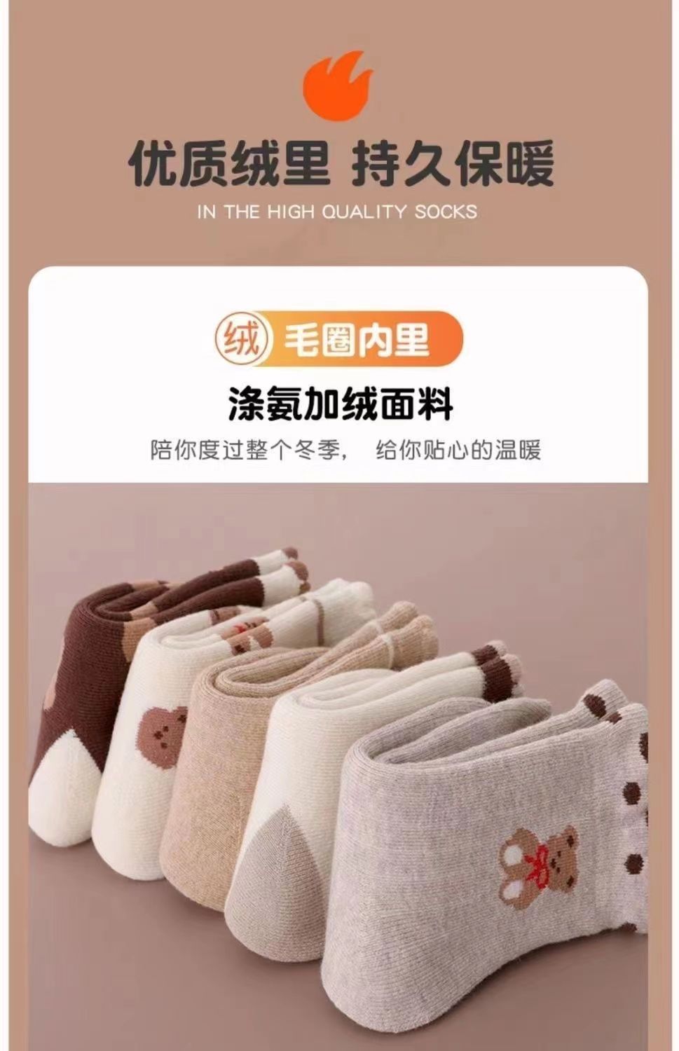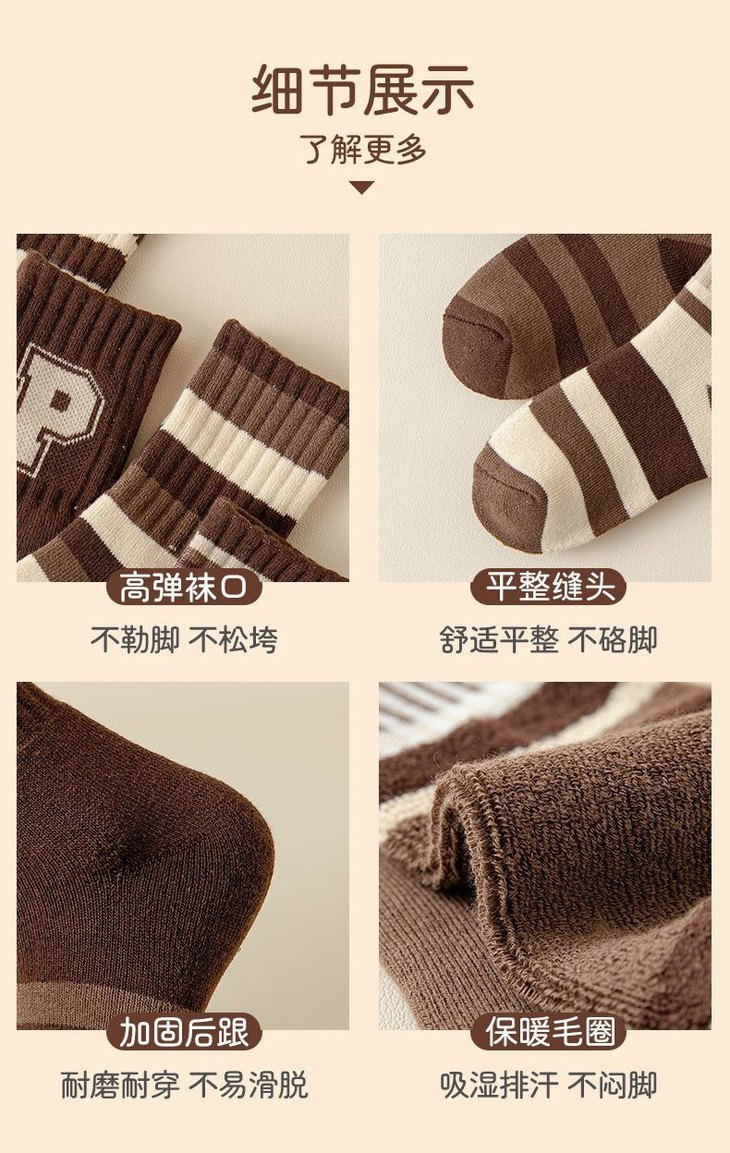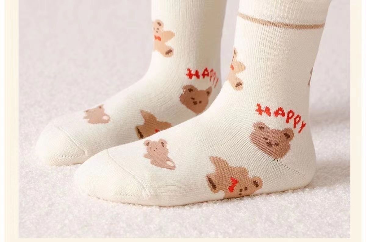 【秒杀】15.9元【5双装】秋冬男女童防寒保暖加绒加厚儿童袜子宝宝女孩中筒毛巾袜毛圈棉袜0-13岁