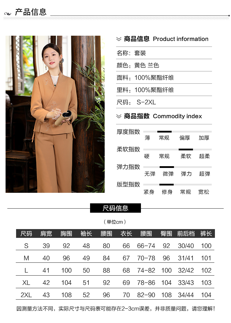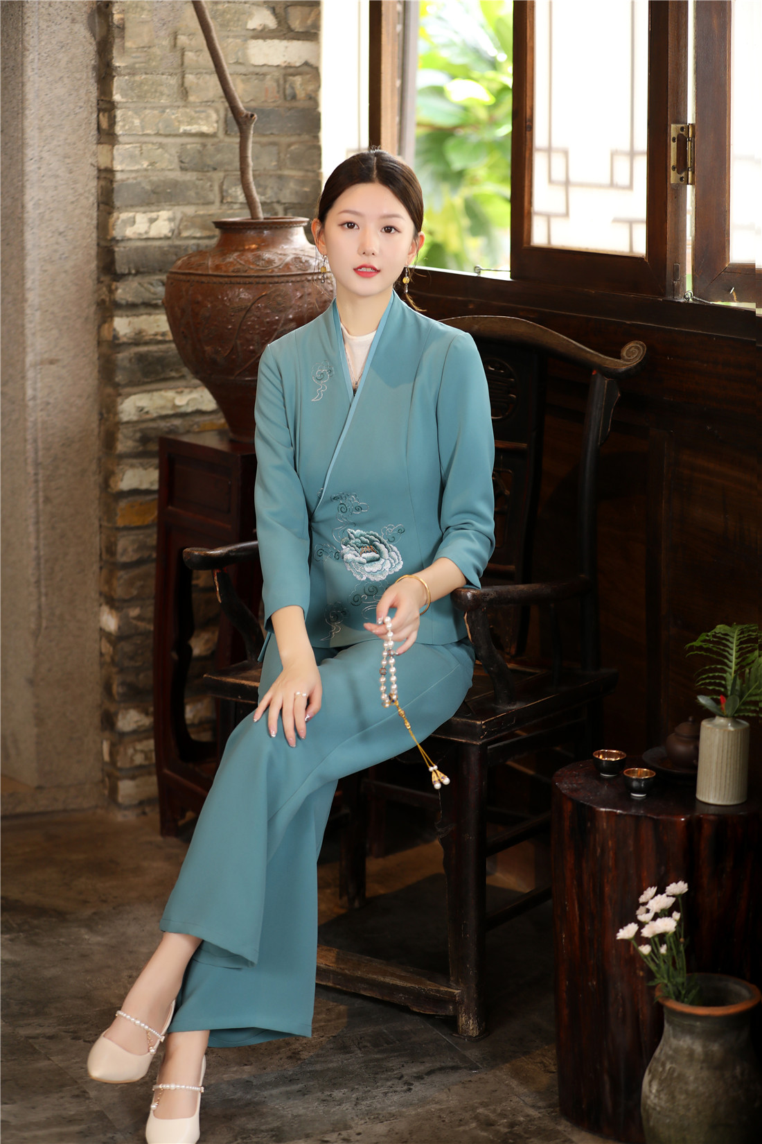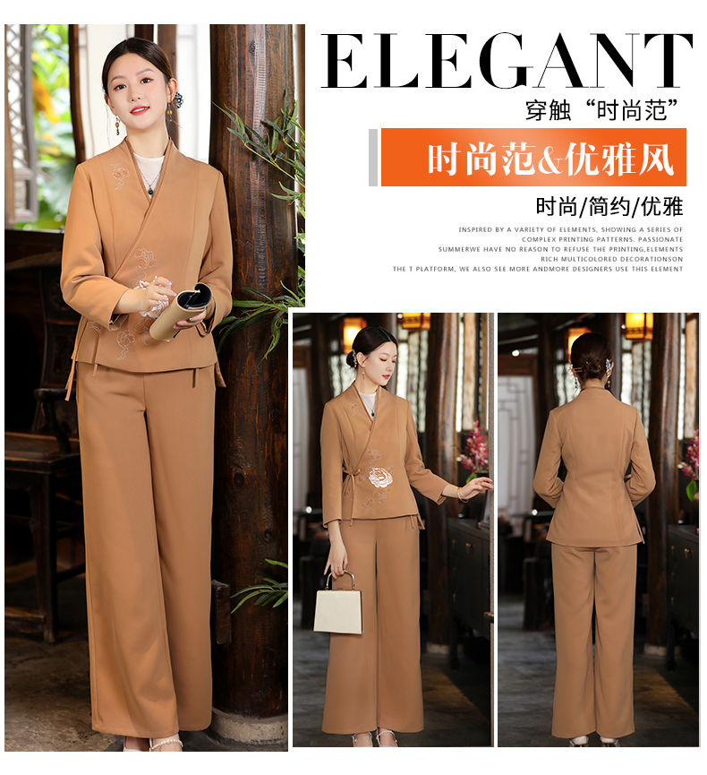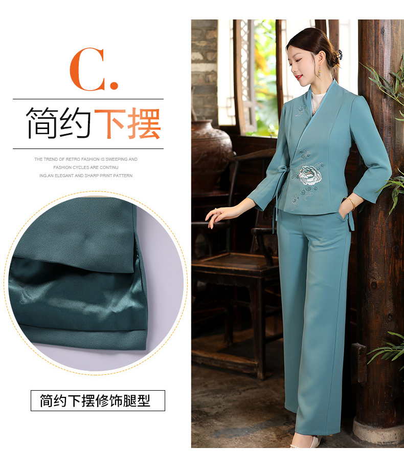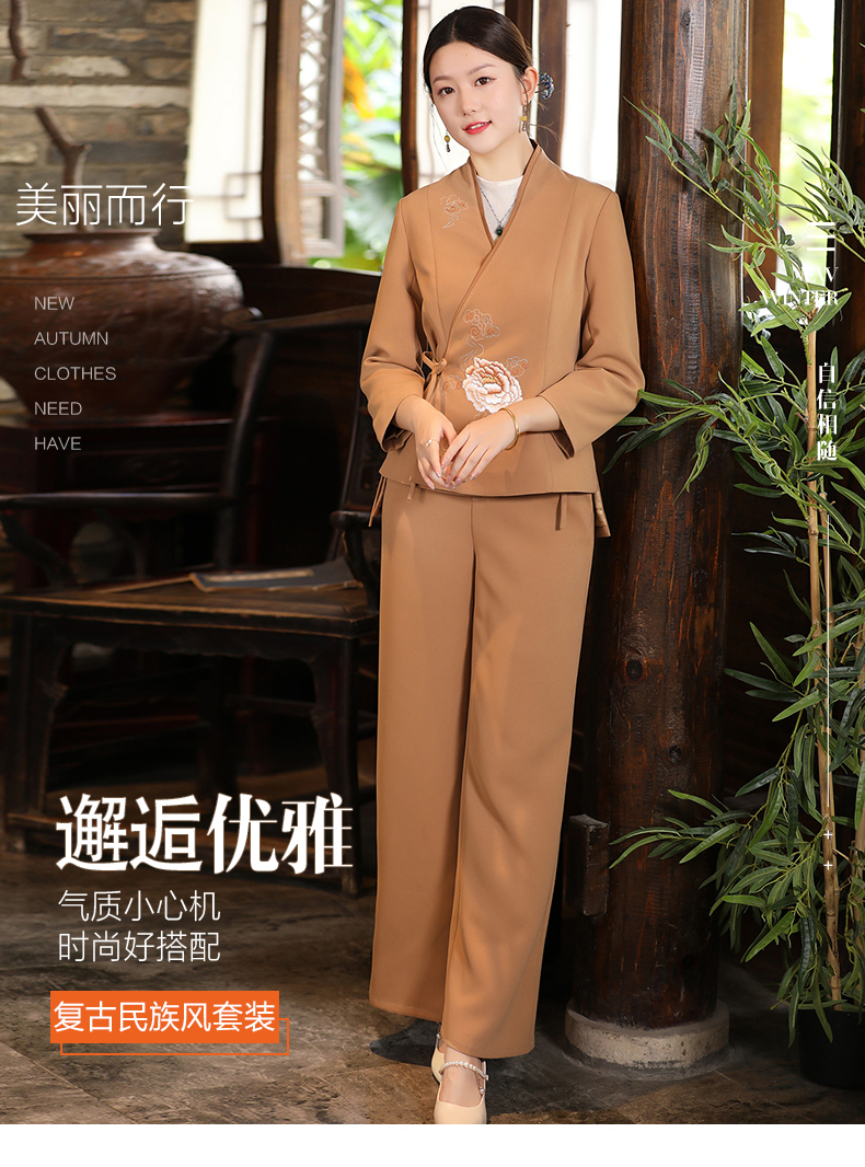 民族风唐装职业阔腿裤套装2021年新款女秋冬装中国风汉服两件套潮 YFN21282