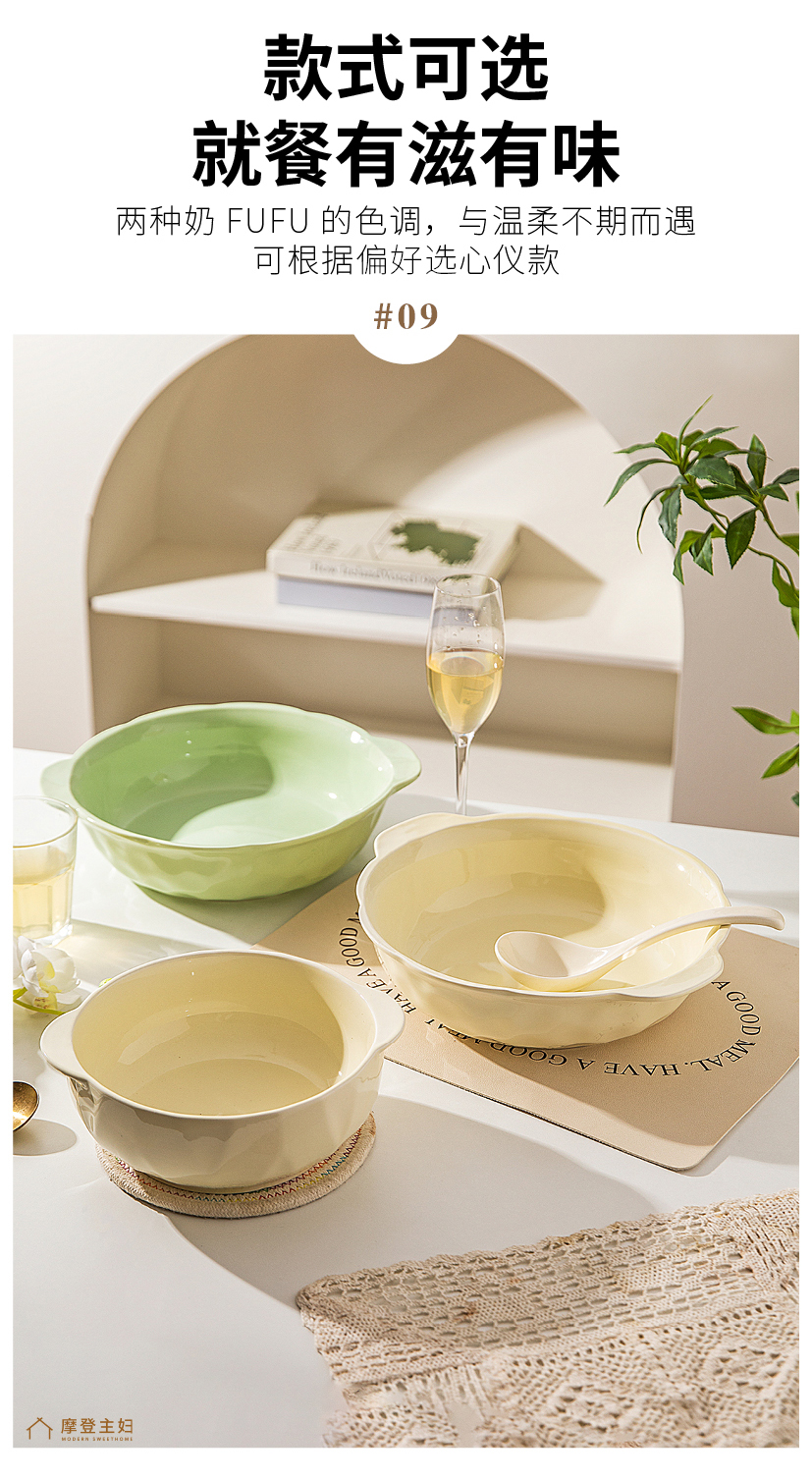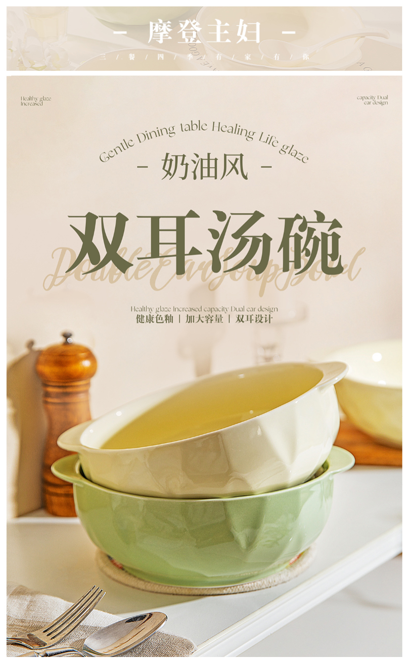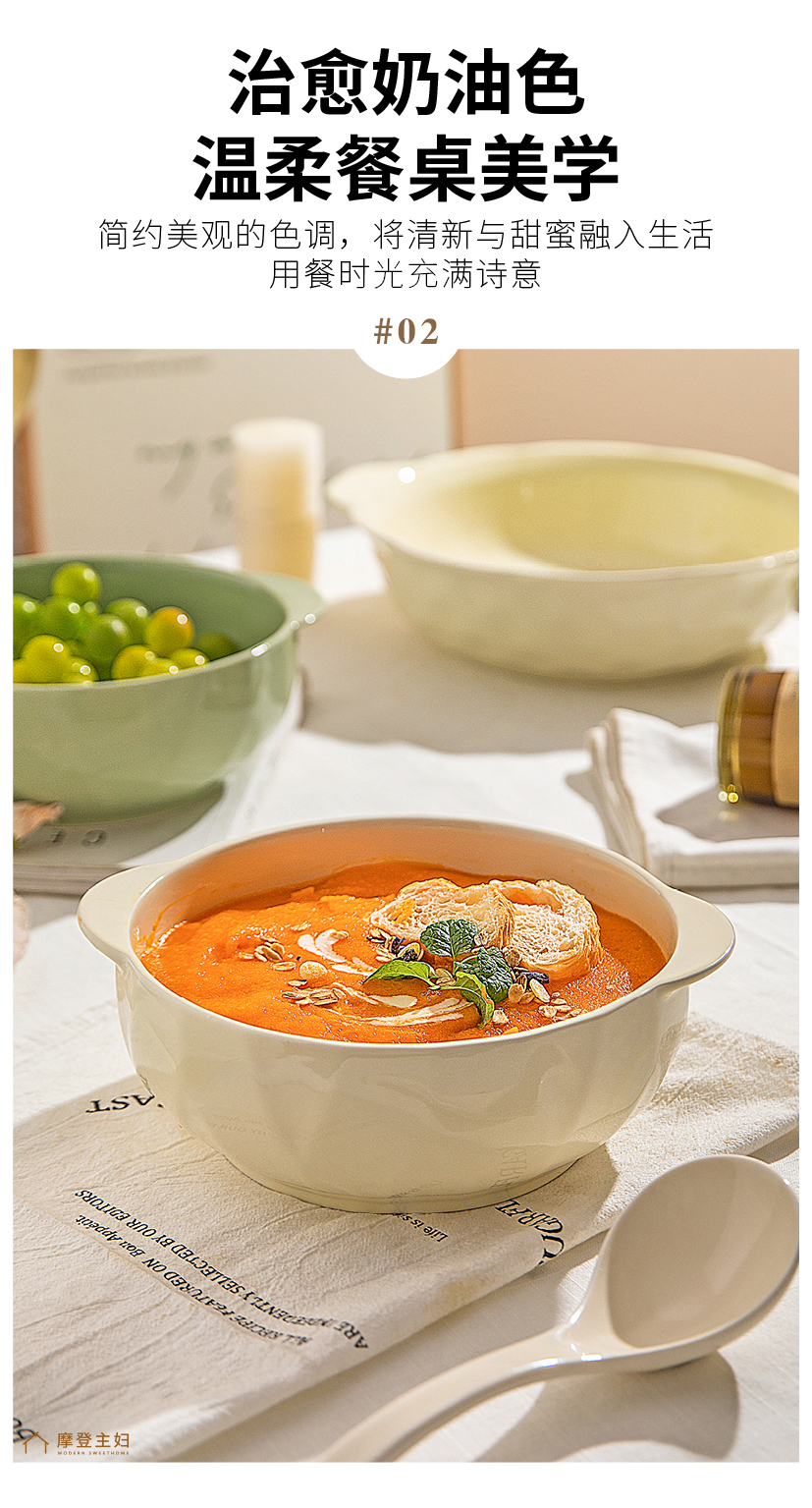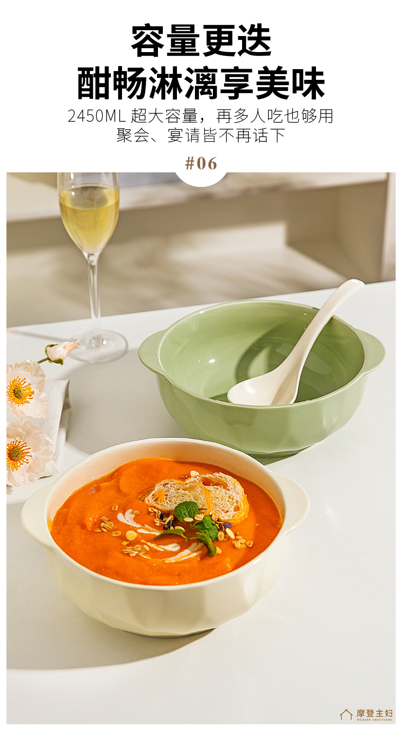 摩登主妇双耳汤碗家用2025年新款陶瓷酸菜鱼大盆碗高级感大号汤盆