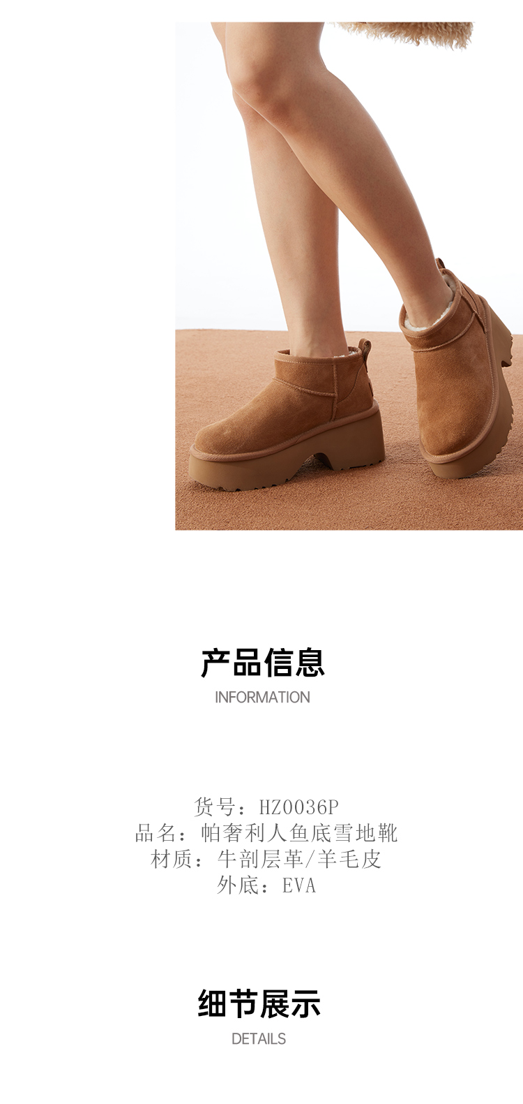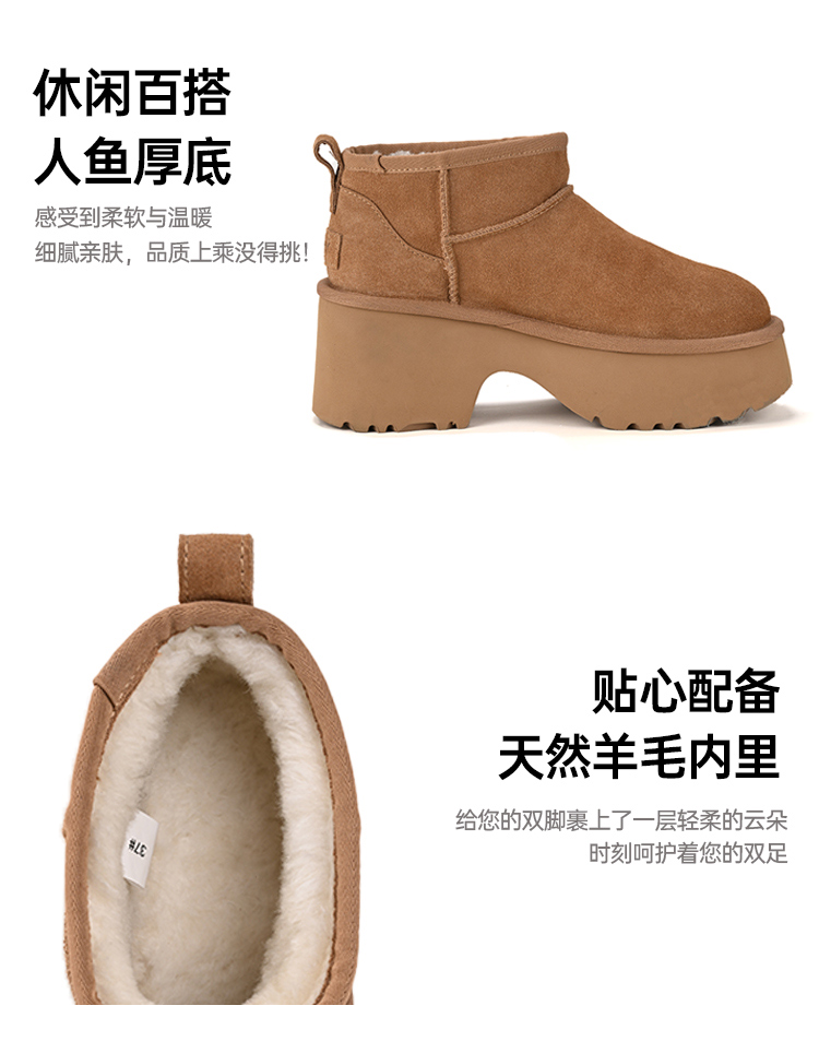 【梅花出品】帕奢利/LAMY人鱼厚底牛皮澳洲羊毛雪地靴HZ0036P