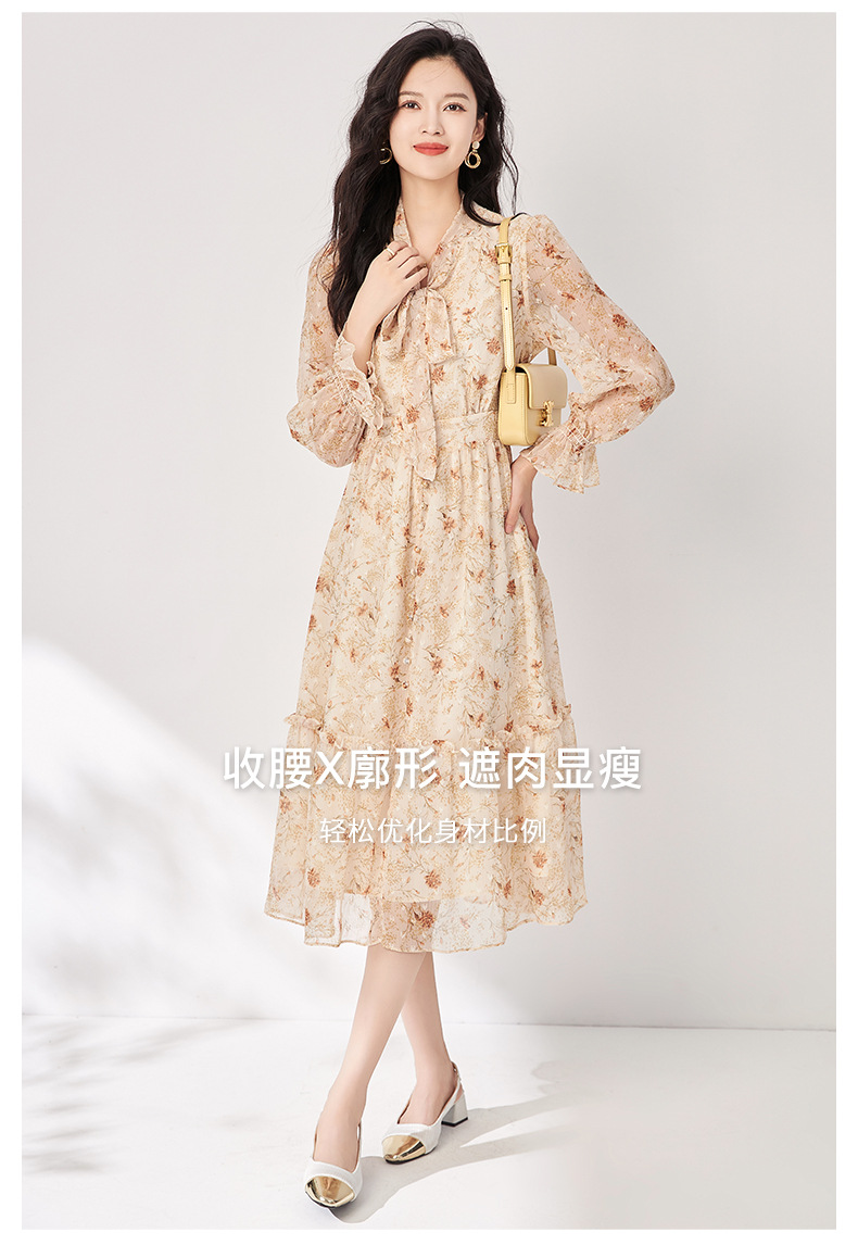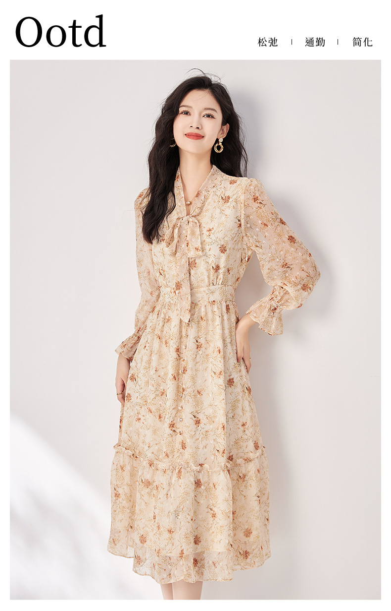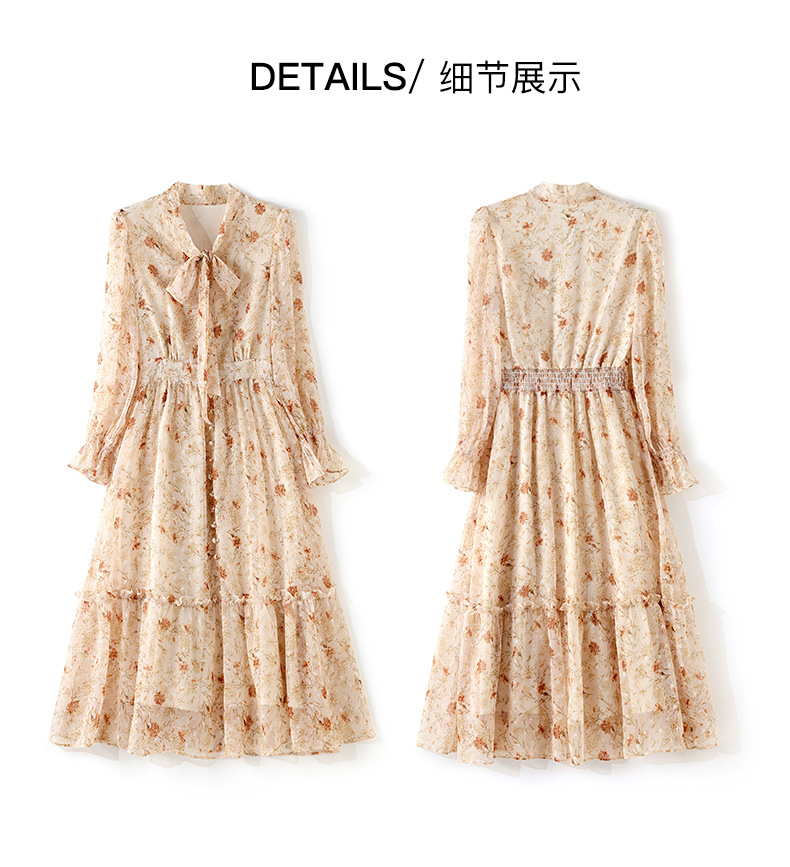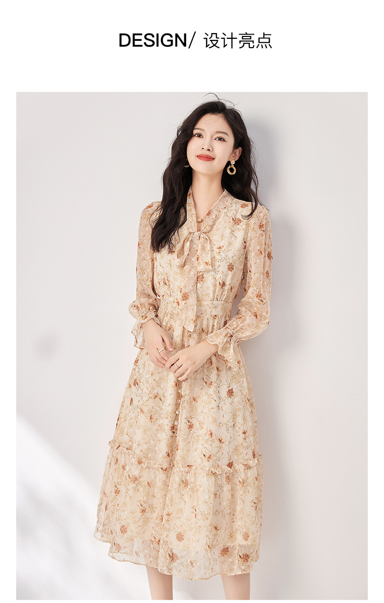 秋季新款,浪漫轻奢名媛印花立体花显瘦百搭内搭连衣裙WLZD-2318310