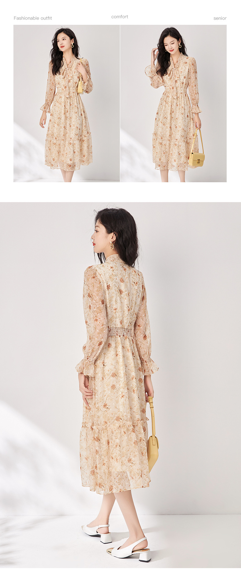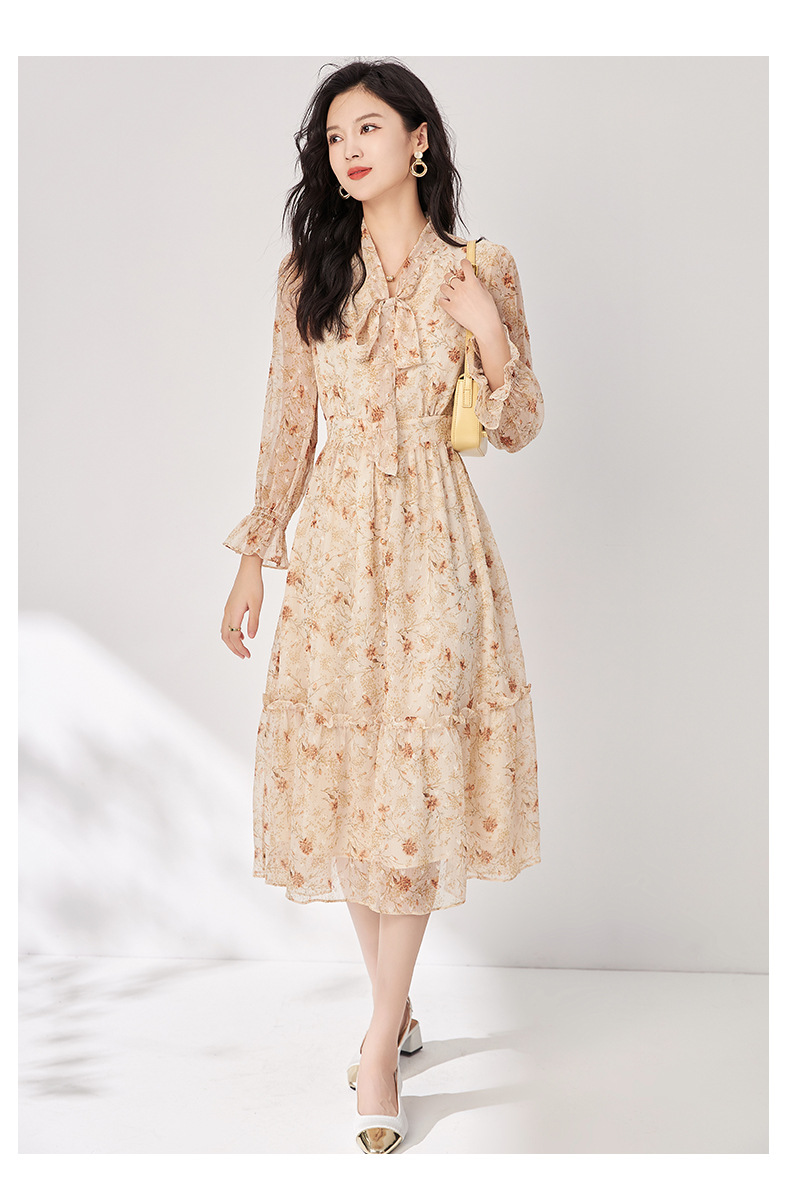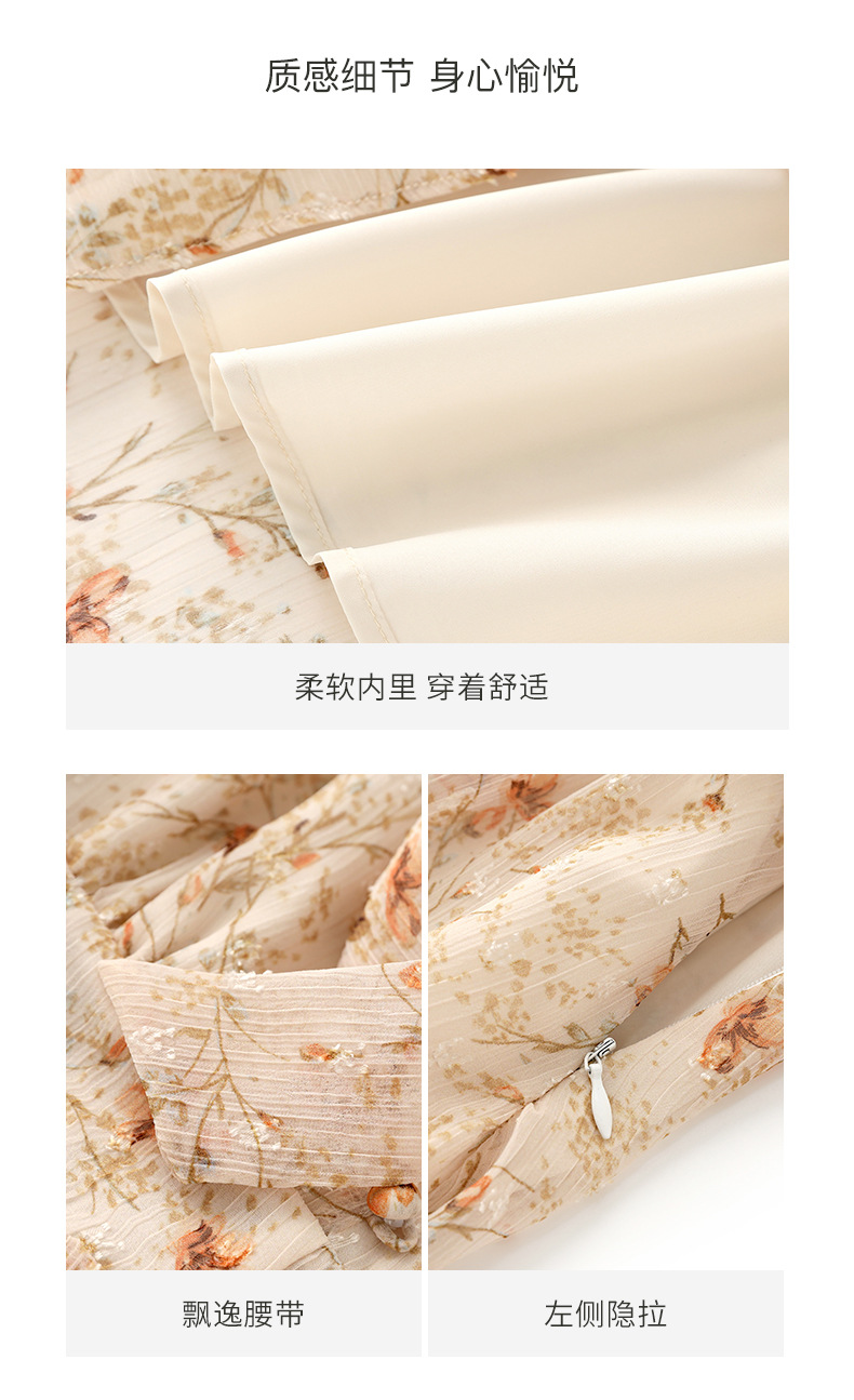 秋季新款,浪漫轻奢名媛印花立体花显瘦百搭内搭连衣裙WLZD-2318310