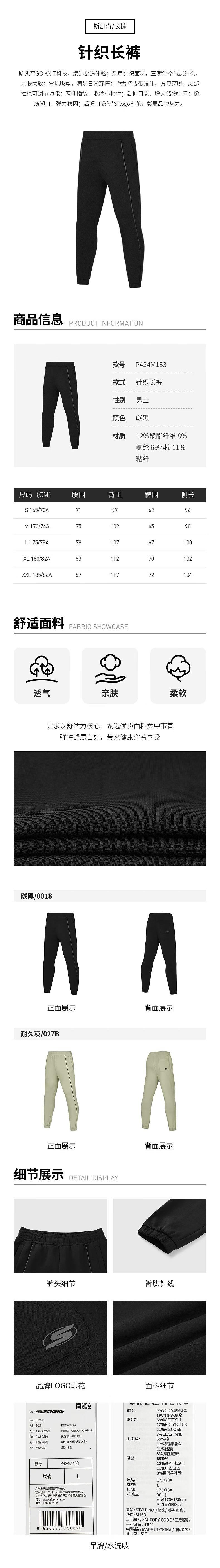 Skechers斯凯奇 男针织长裤 P424M153-027B
