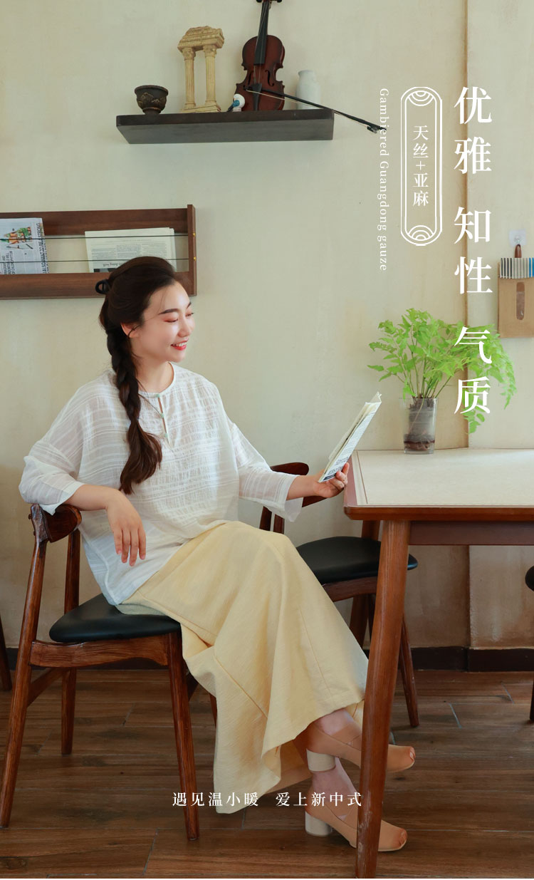 【抖音专属】套装(圆领小衫24708545酂白+阔腿裤24709615酂白)
