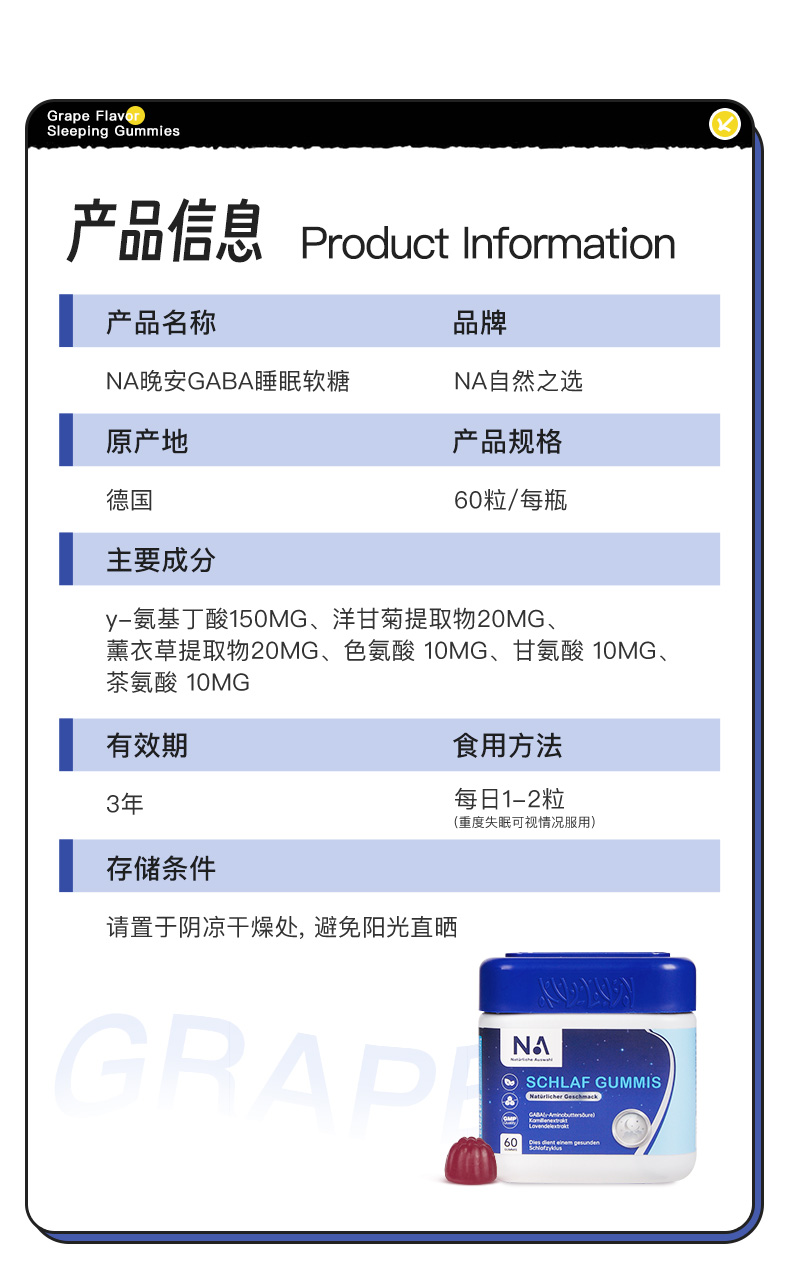 【双十一爆款机制】德国NA晚安GABA睡眠软糖 睡前2粒 整夜好梦 平衡情绪 放松身心 低卡无负担【香港直邮】