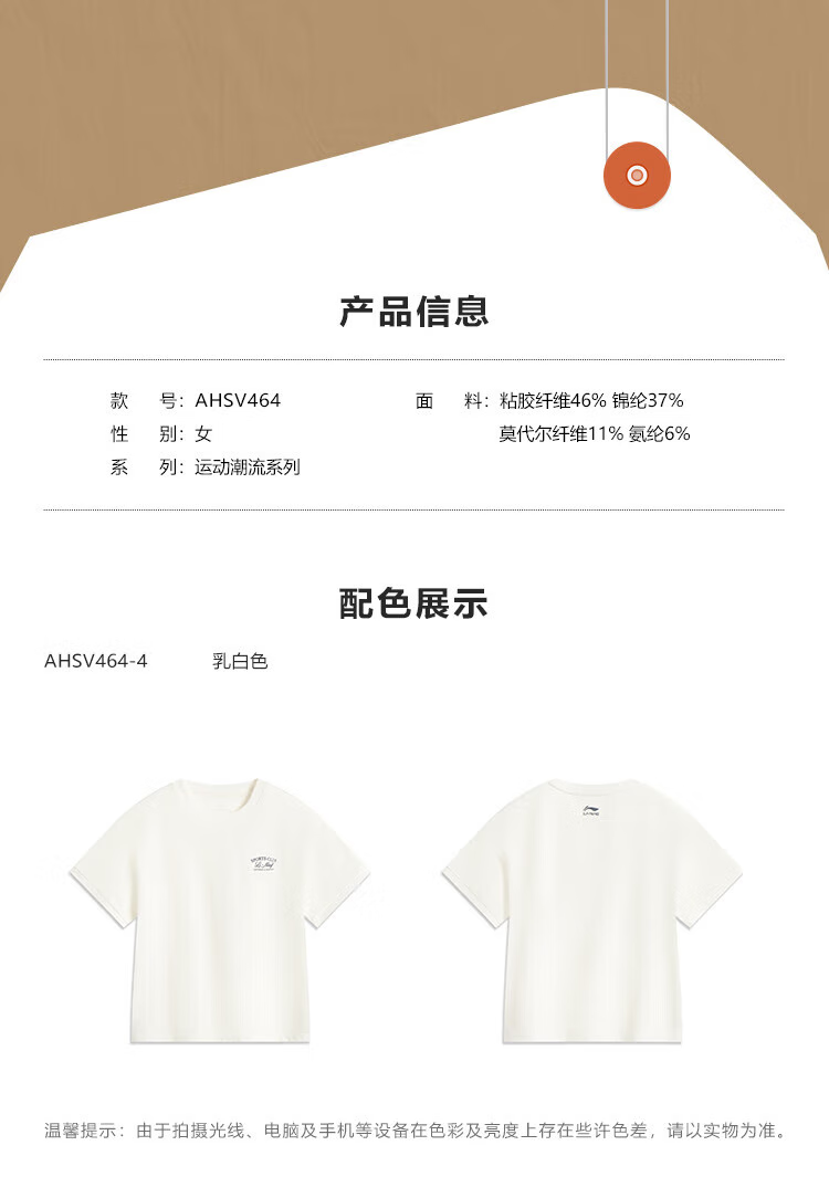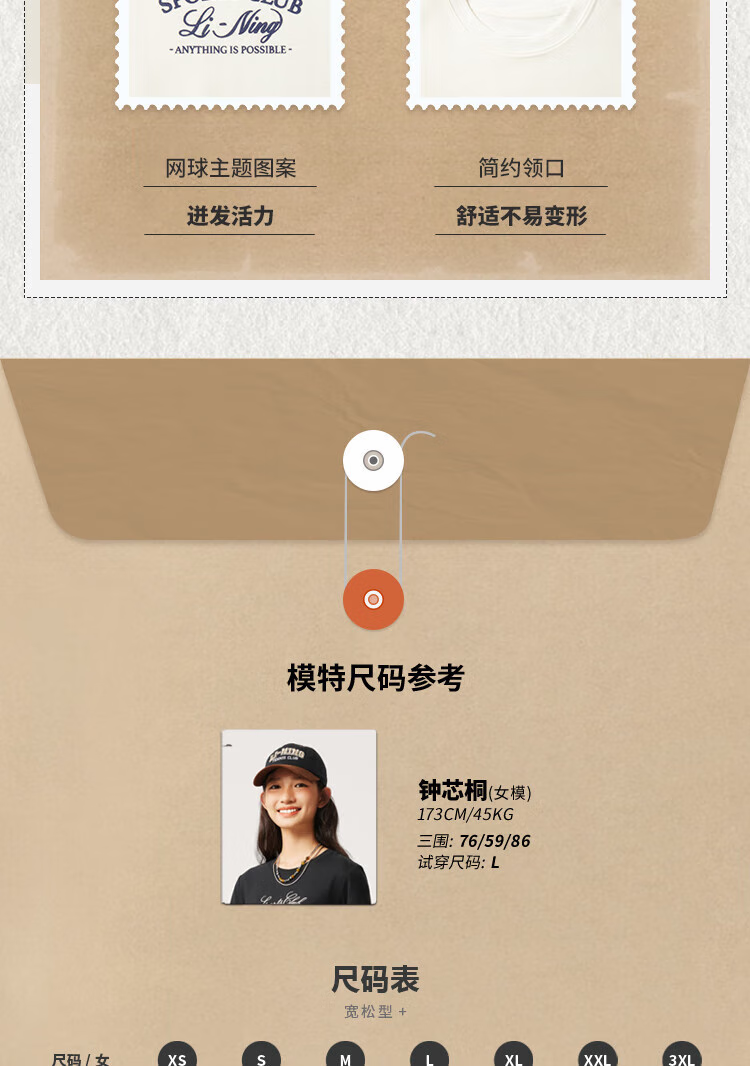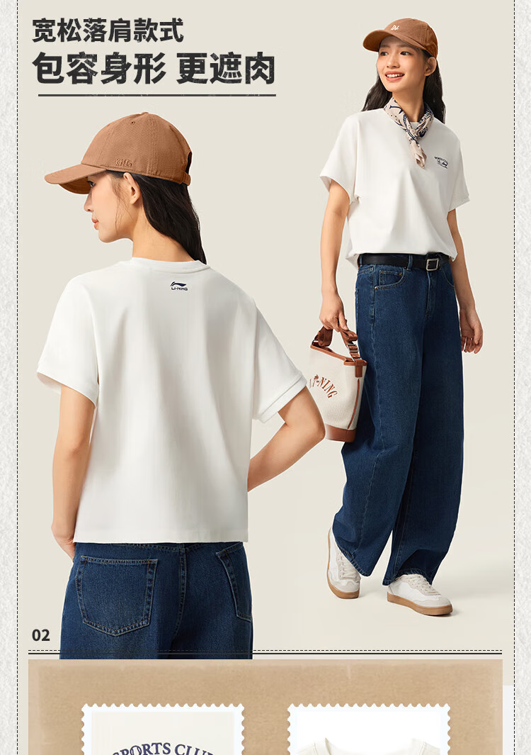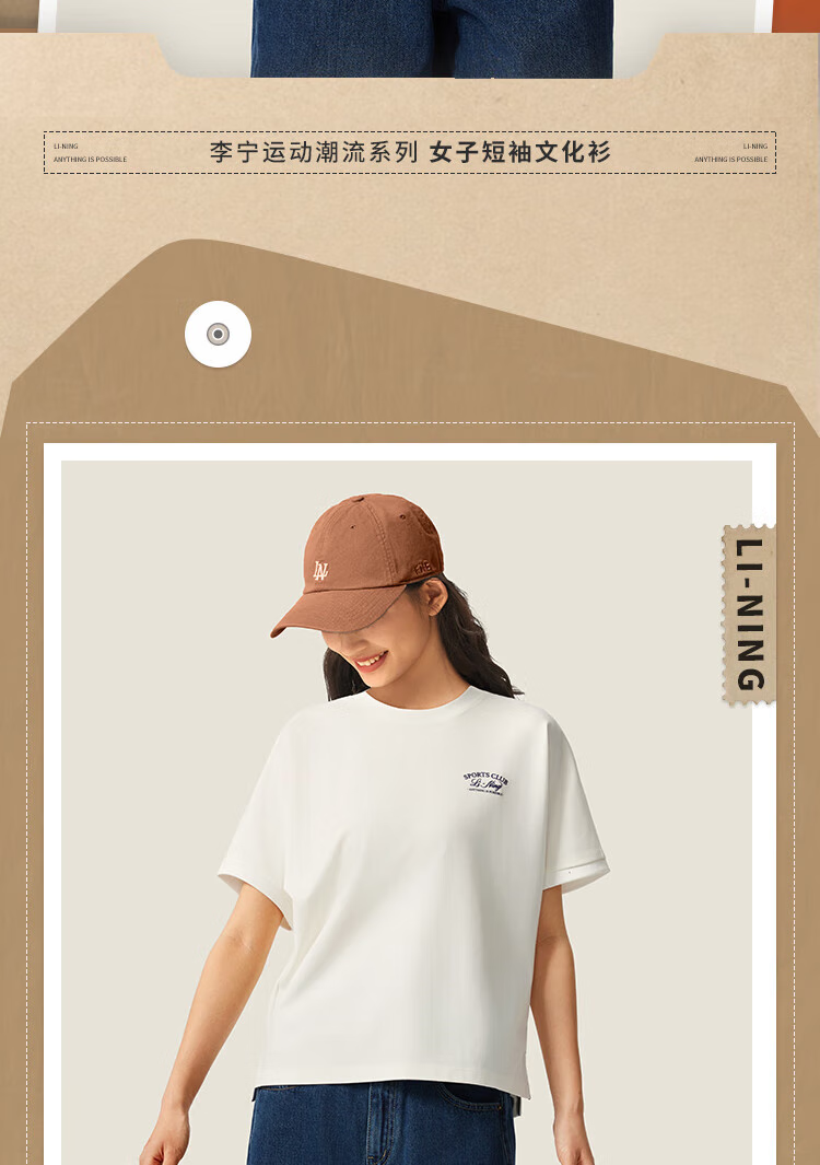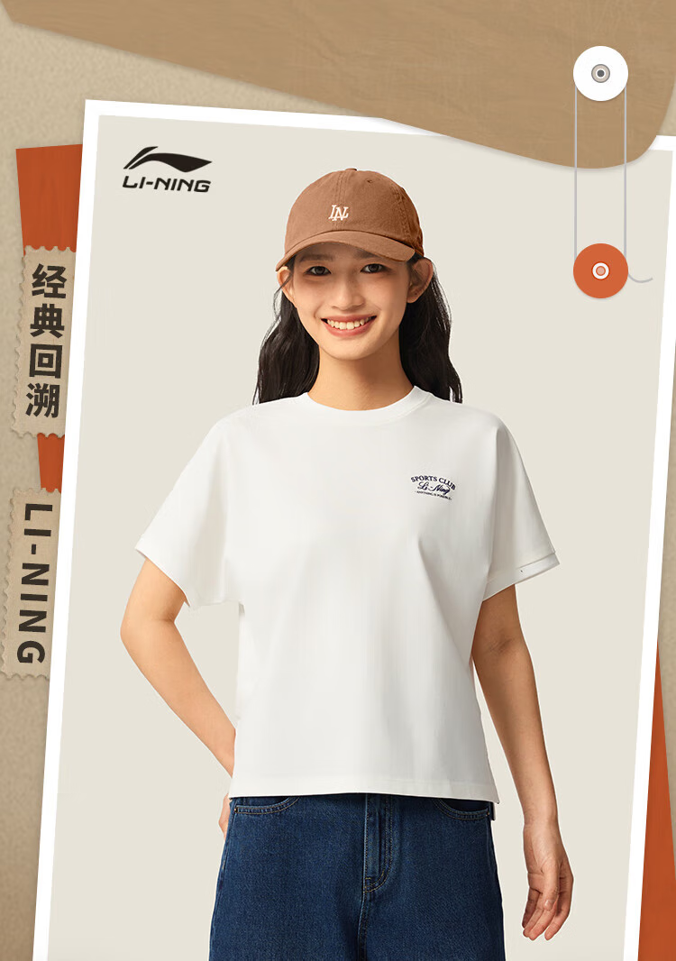 李宁(LI-NING)潮流运动短袖T恤衫女2025秋季圆领文化衫AHSV464