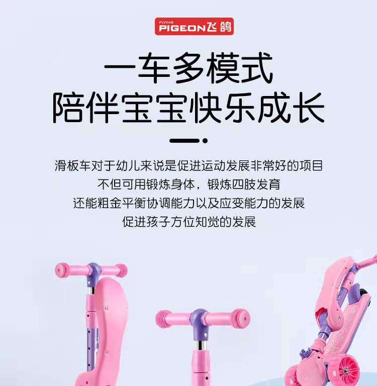 飞鸽儿童平衡车无脚踏2-4岁 飞鸽儿童滑板车