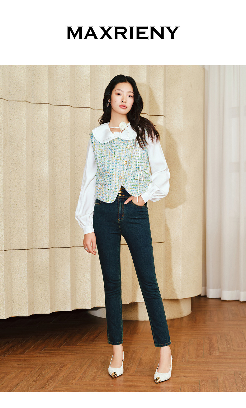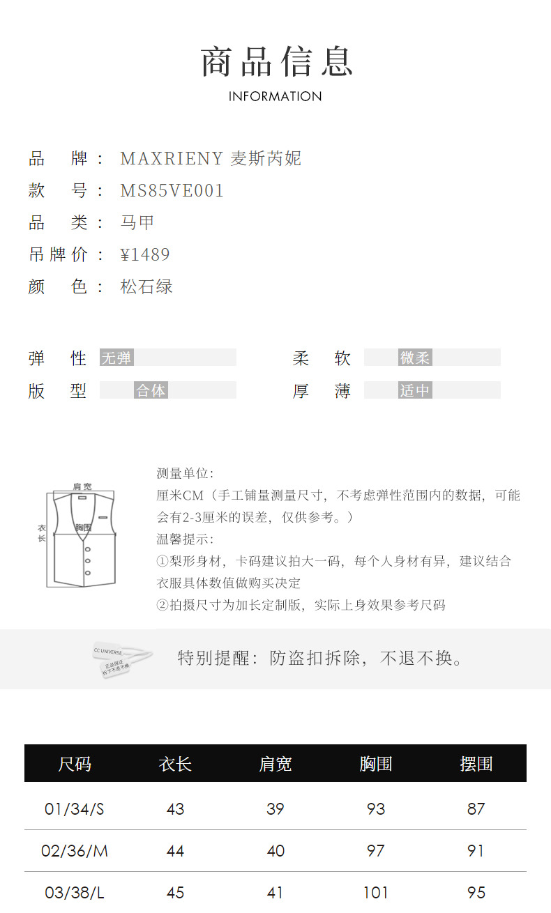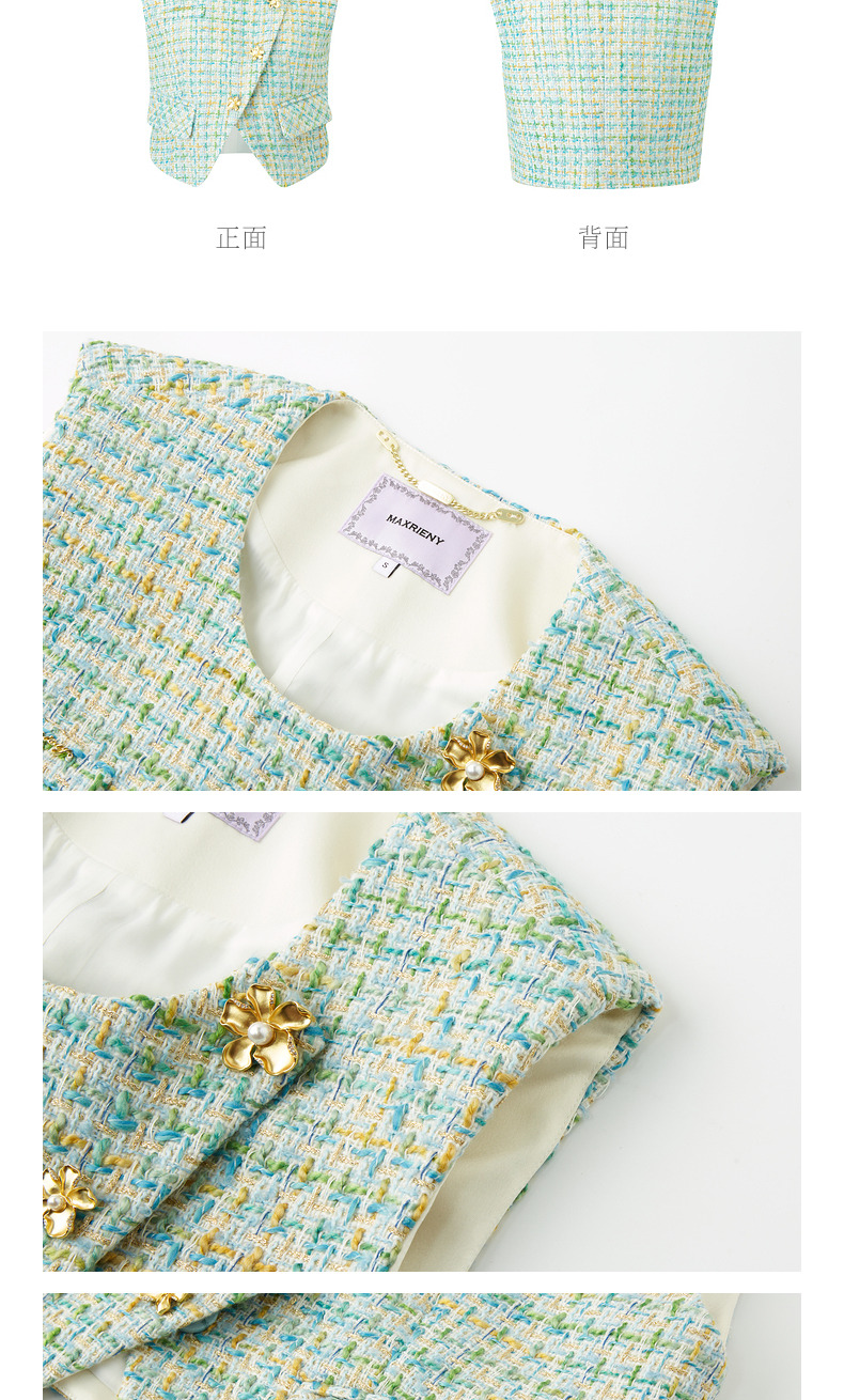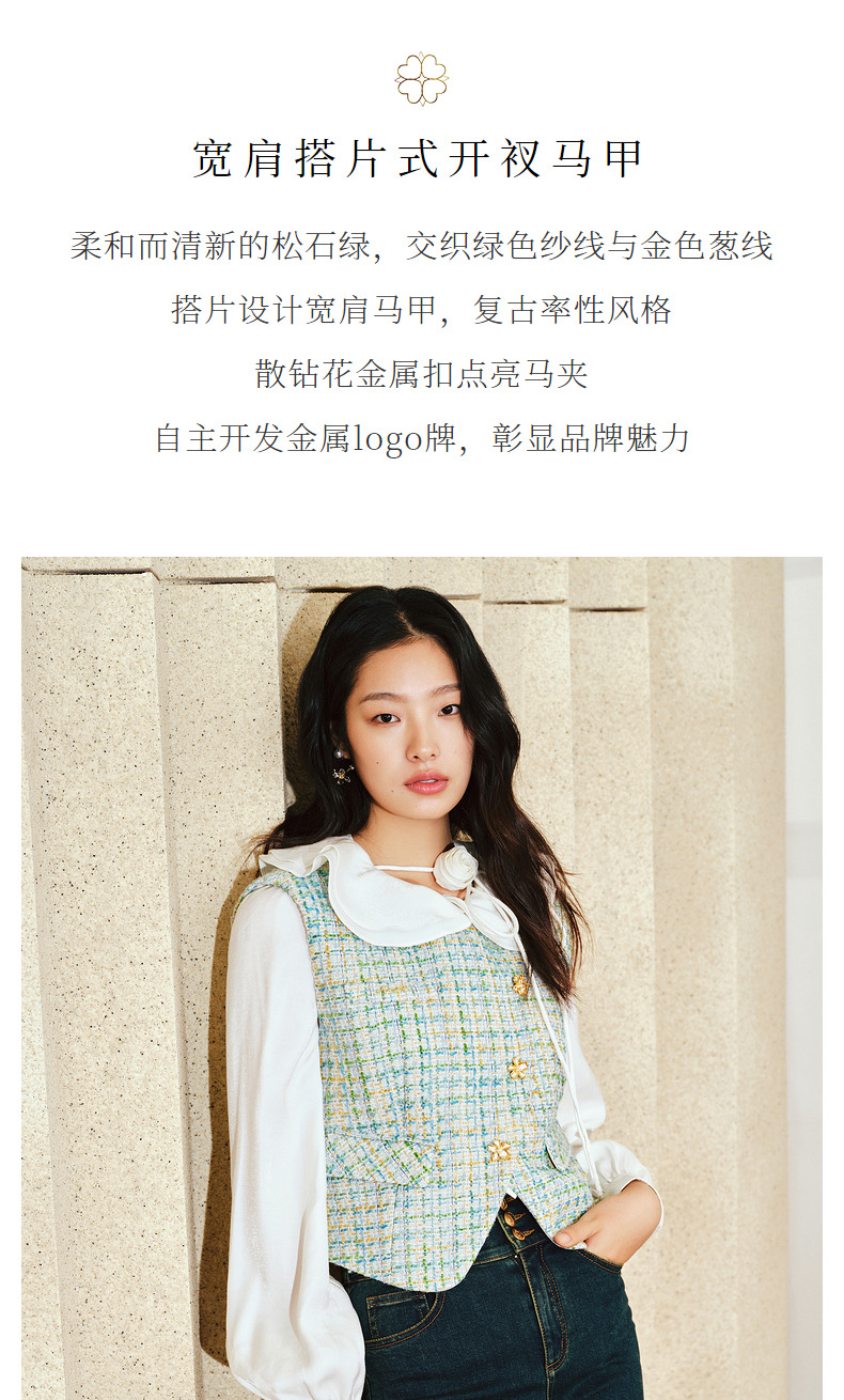 MAXRIENY小香风宽肩搭片开衩马甲薄荷曼波甜美马夹(货号:MS85VE001)