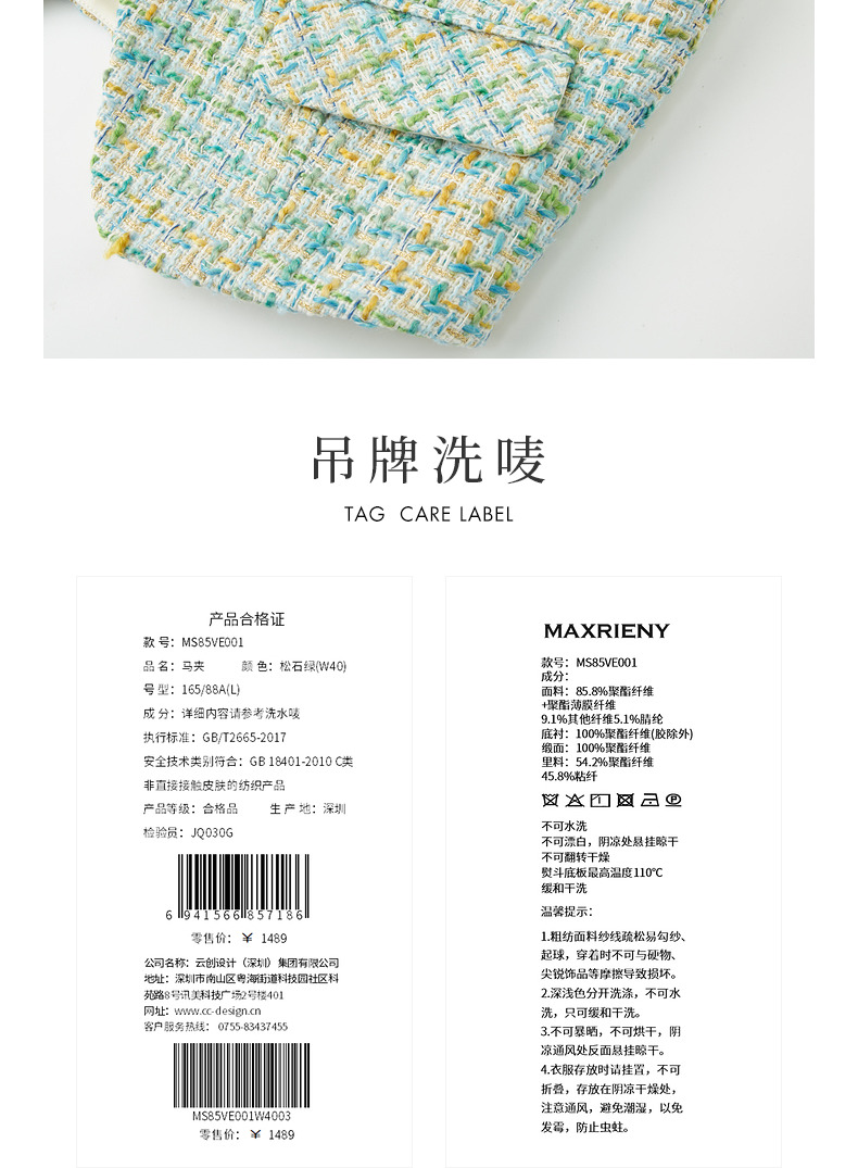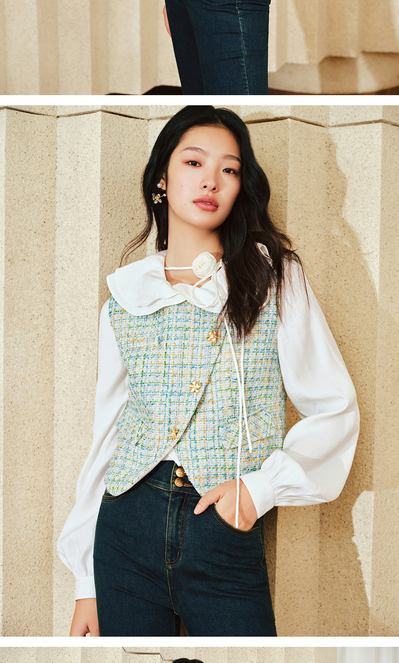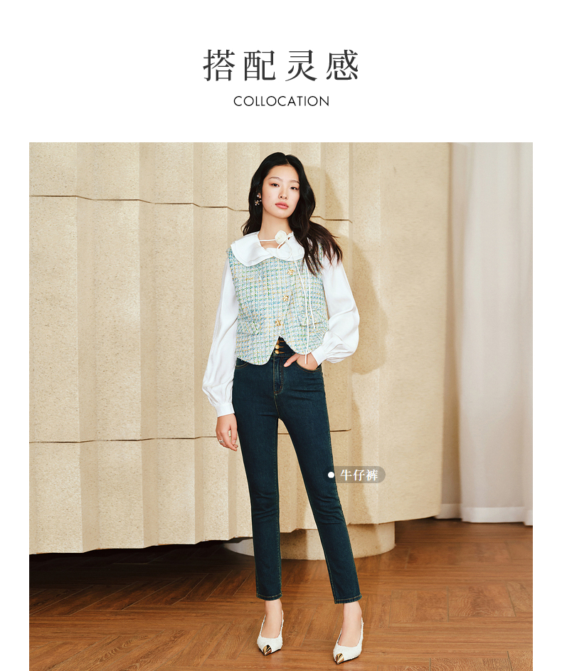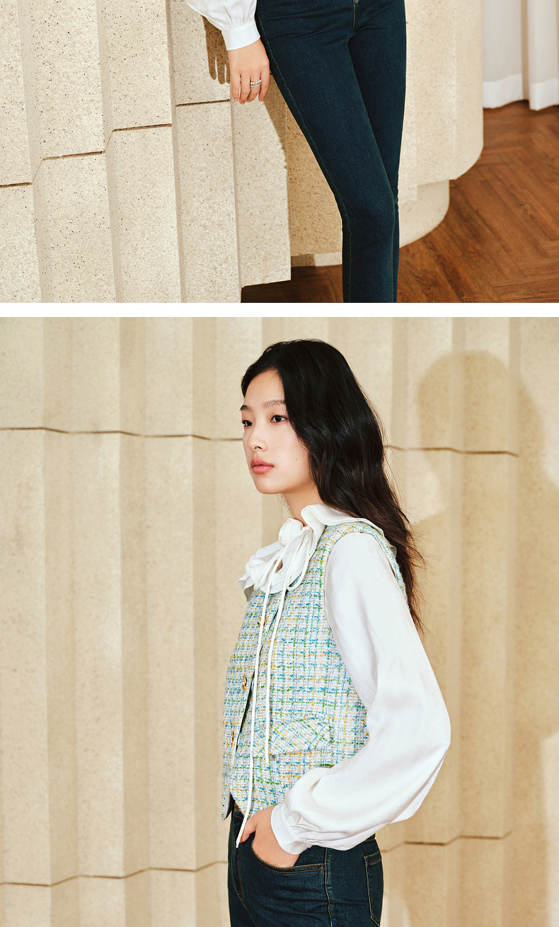 MAXRIENY小香风宽肩搭片开衩马甲薄荷曼波甜美马夹(货号:MS85VE001)