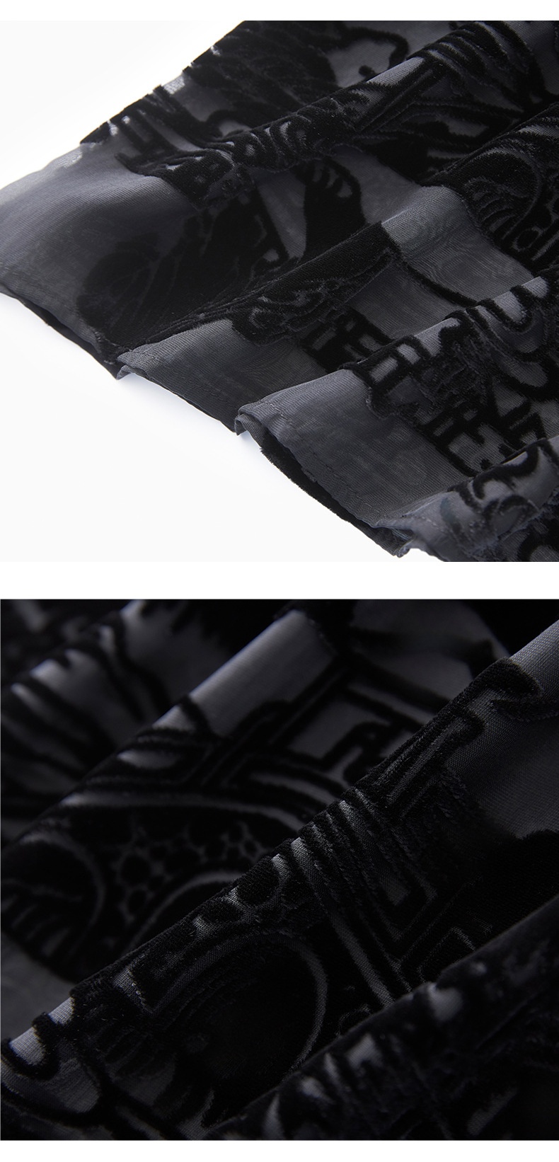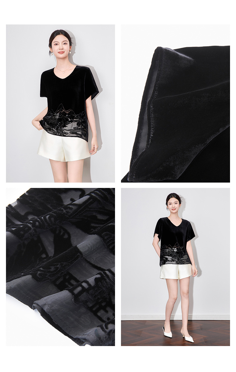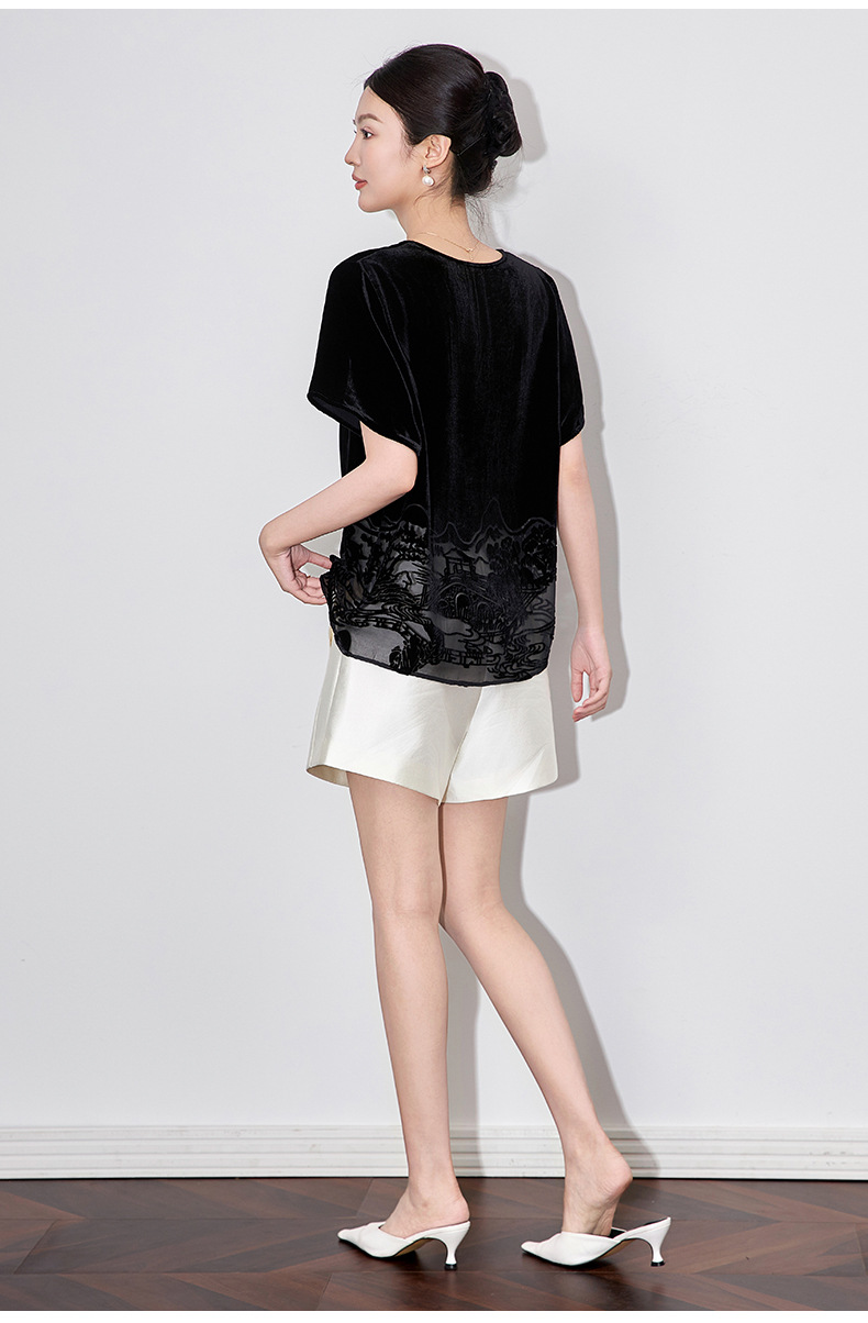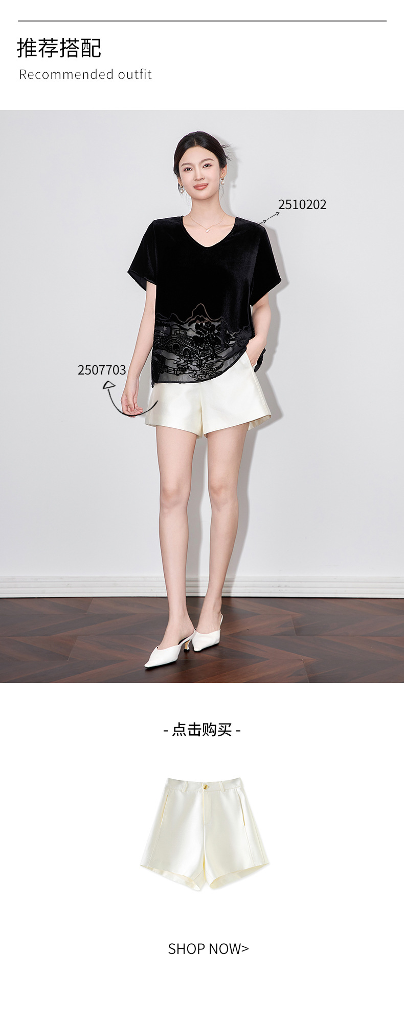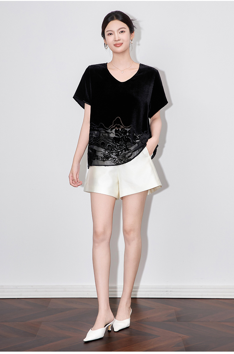 「高货wl」全新升级【铂金会员321/天猫429/差价108】(42010)洛诗琳国风高品质时髦洋气V领山水画烧花真丝丝绒上衣女