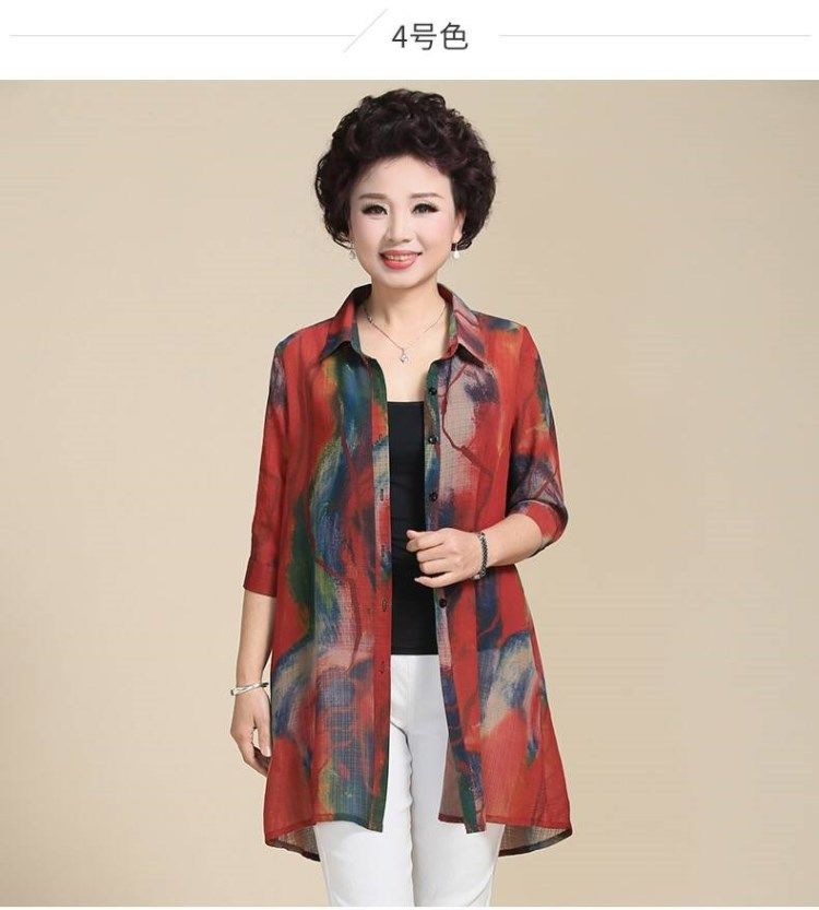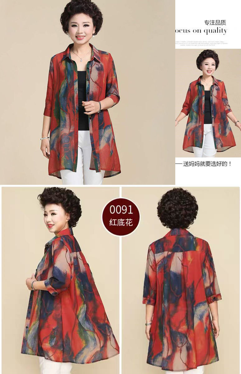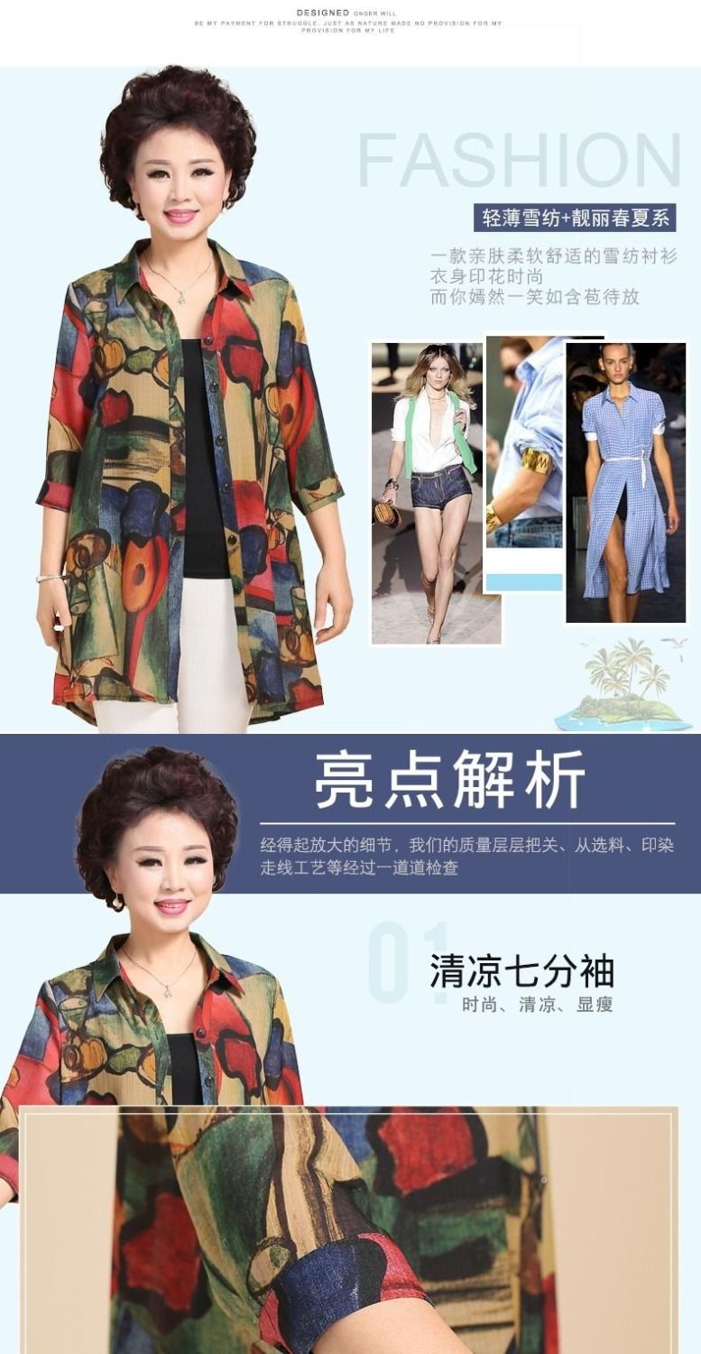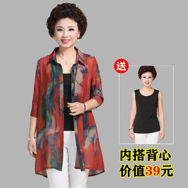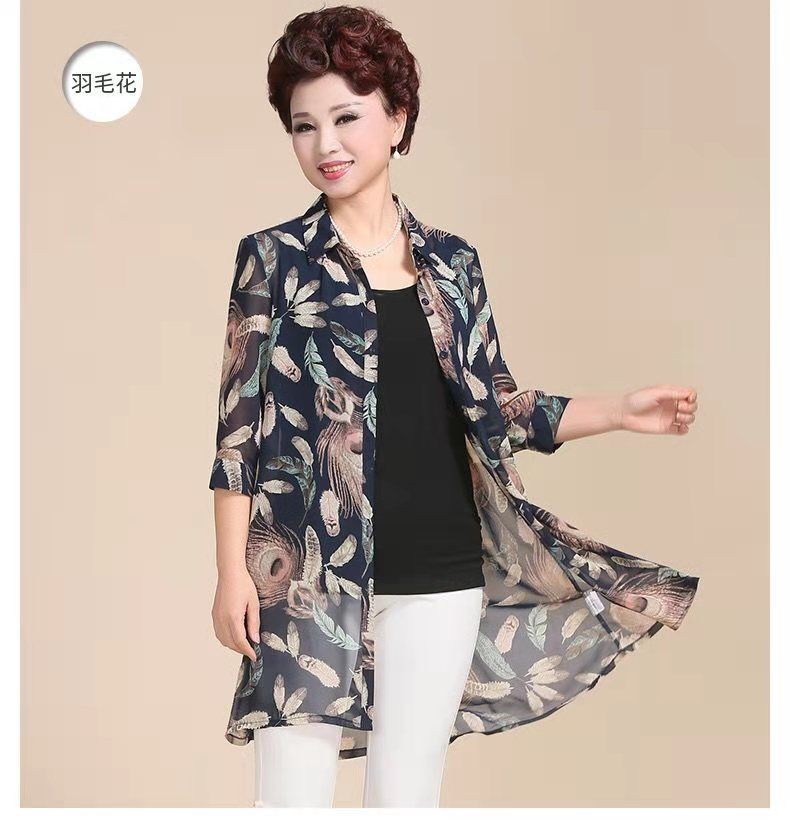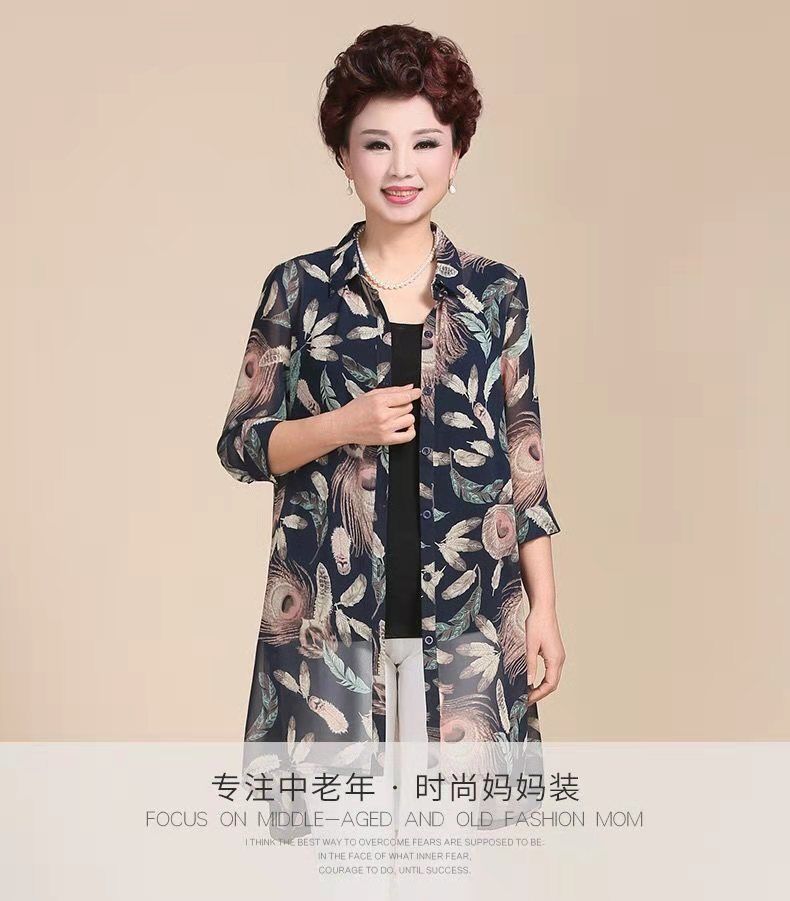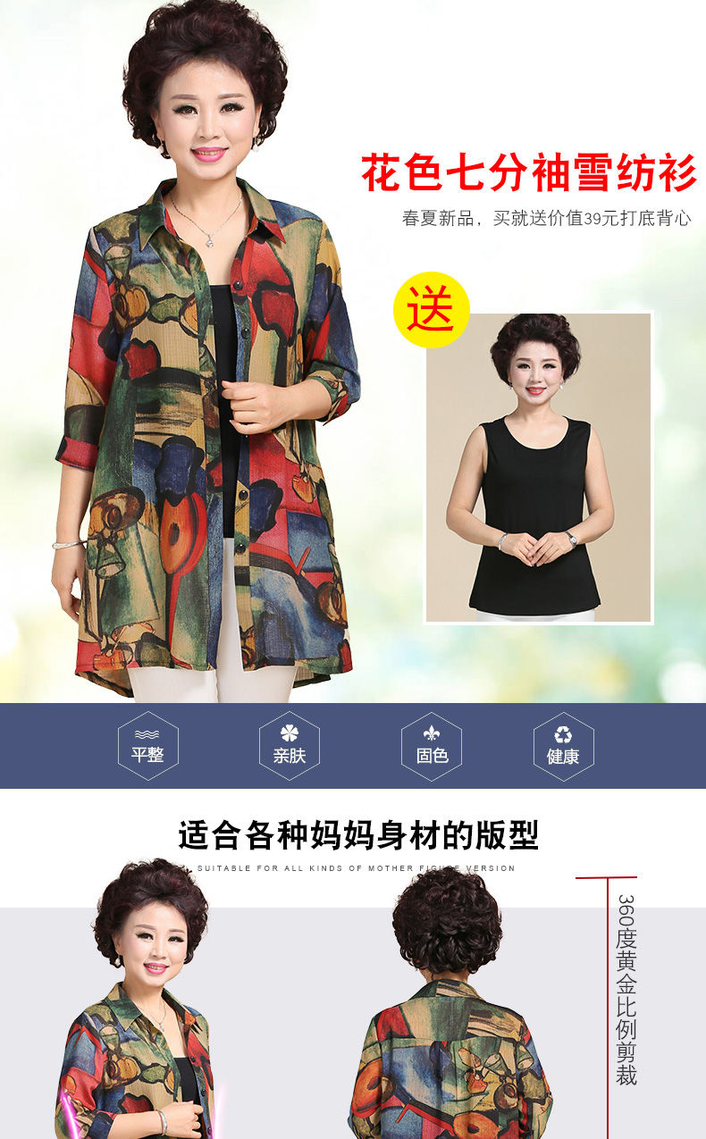 JXG-【送背心】妈妈夏装衬衫中袖雪纺衫新款中老年女夏装外套防晒上衣