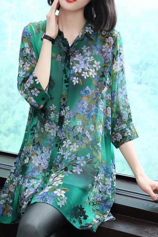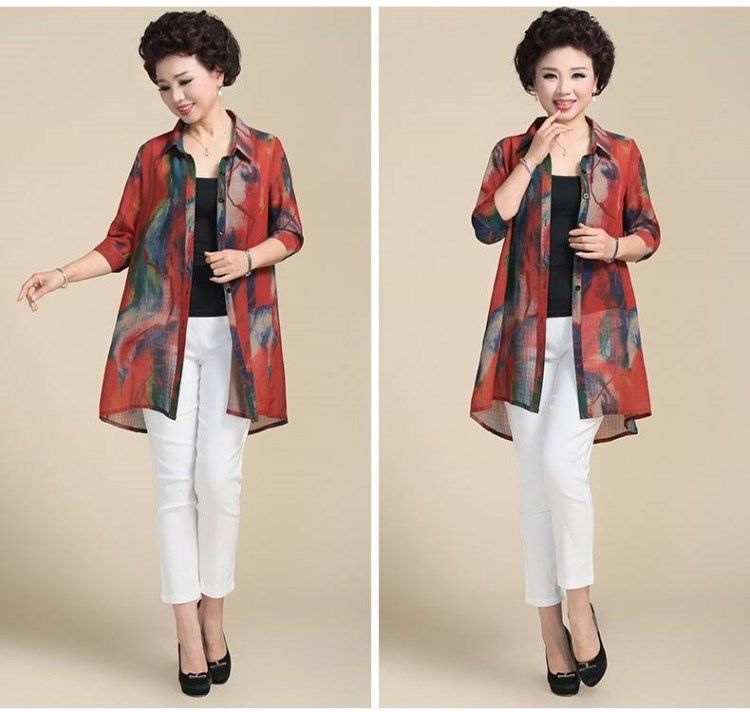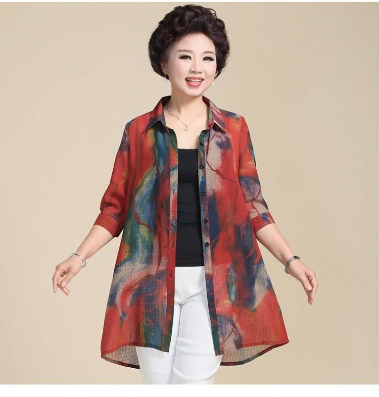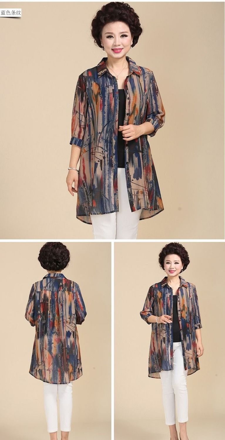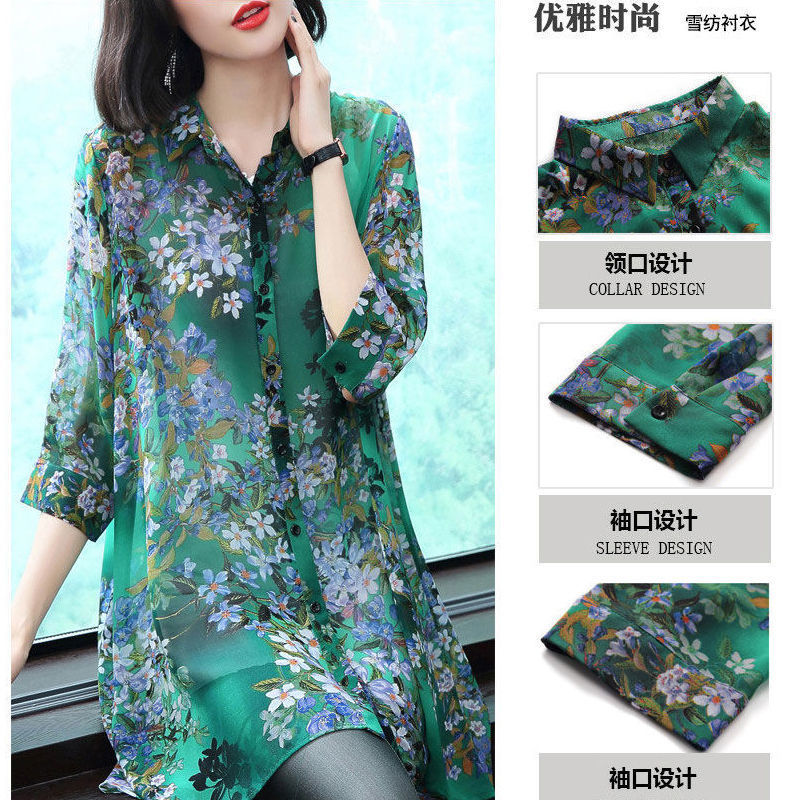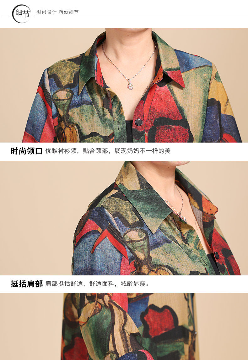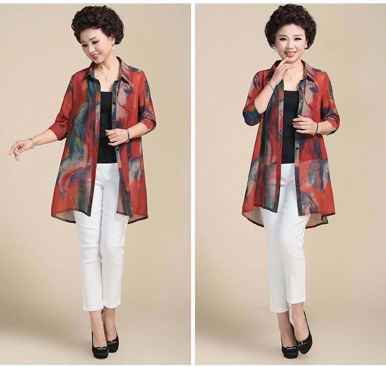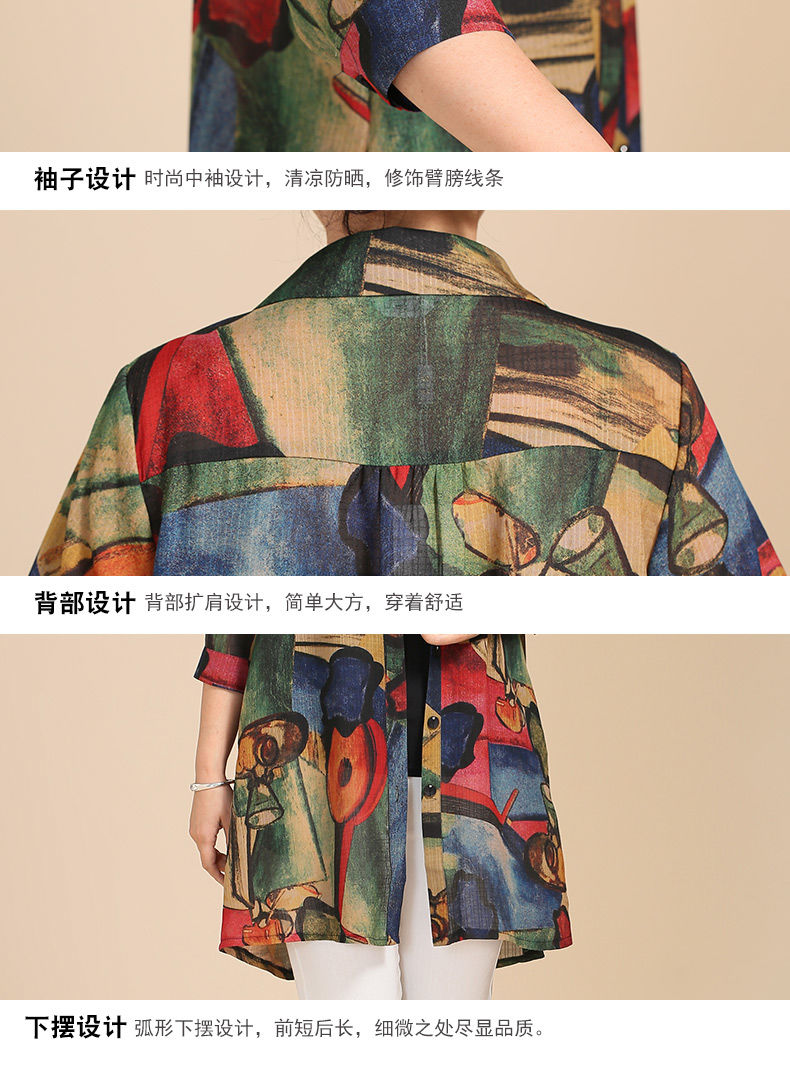 JXG-【送背心】妈妈夏装衬衫中袖雪纺衫新款中老年女夏装外套防晒上衣