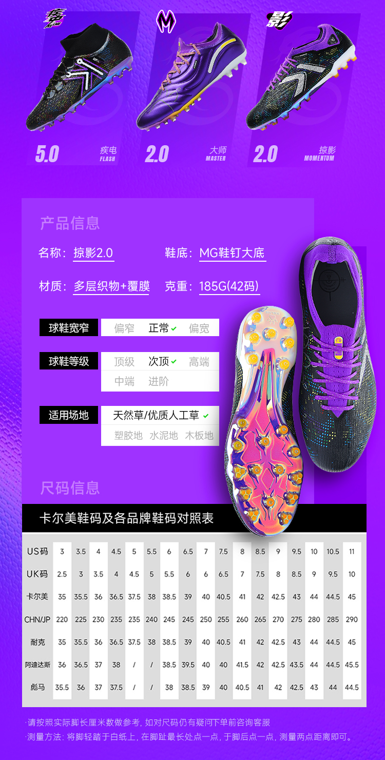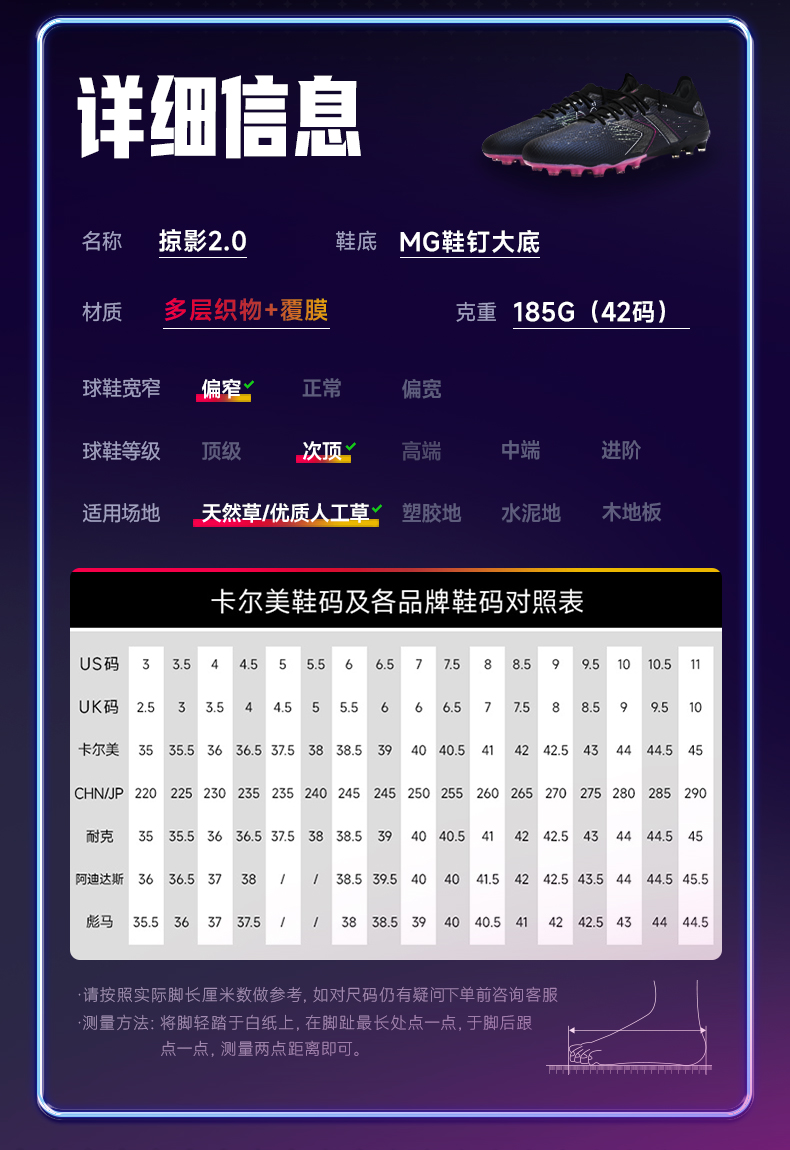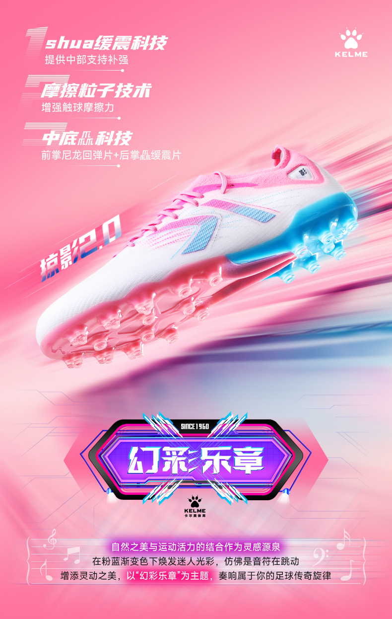 卡尔美新款兰亭序掠影2.0速度型MG次顶级男足球鞋