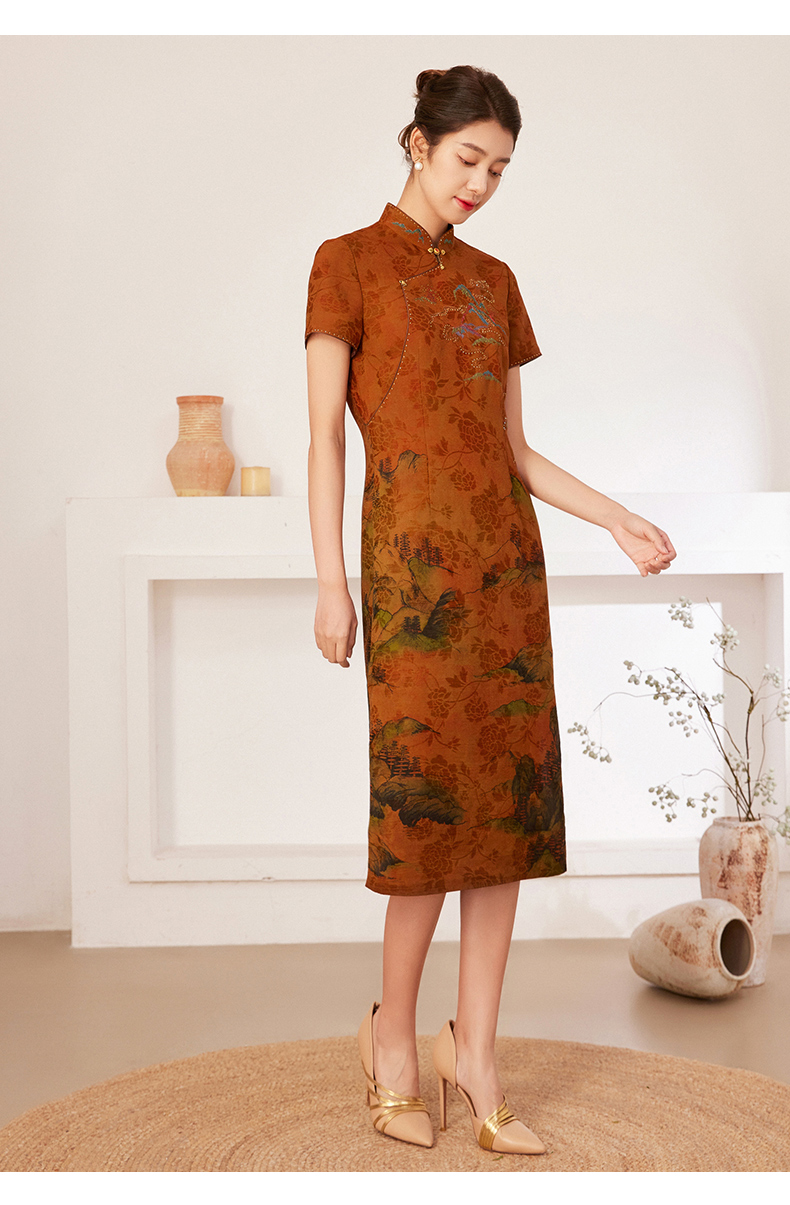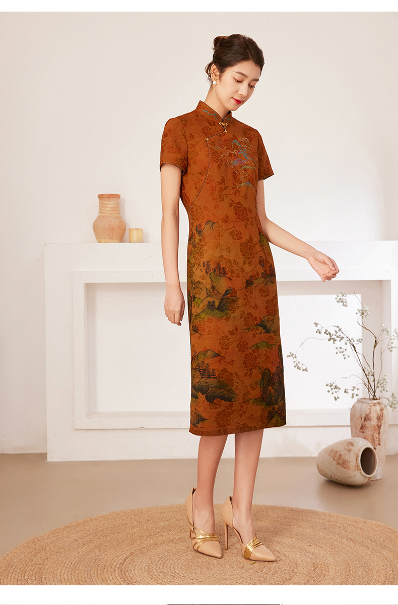 【富蕴山河】【香云纱】【红云纱】乔万尼新款100%真丝立领19MM冠乐绉旗袍中式典雅连衣裙EM2E871