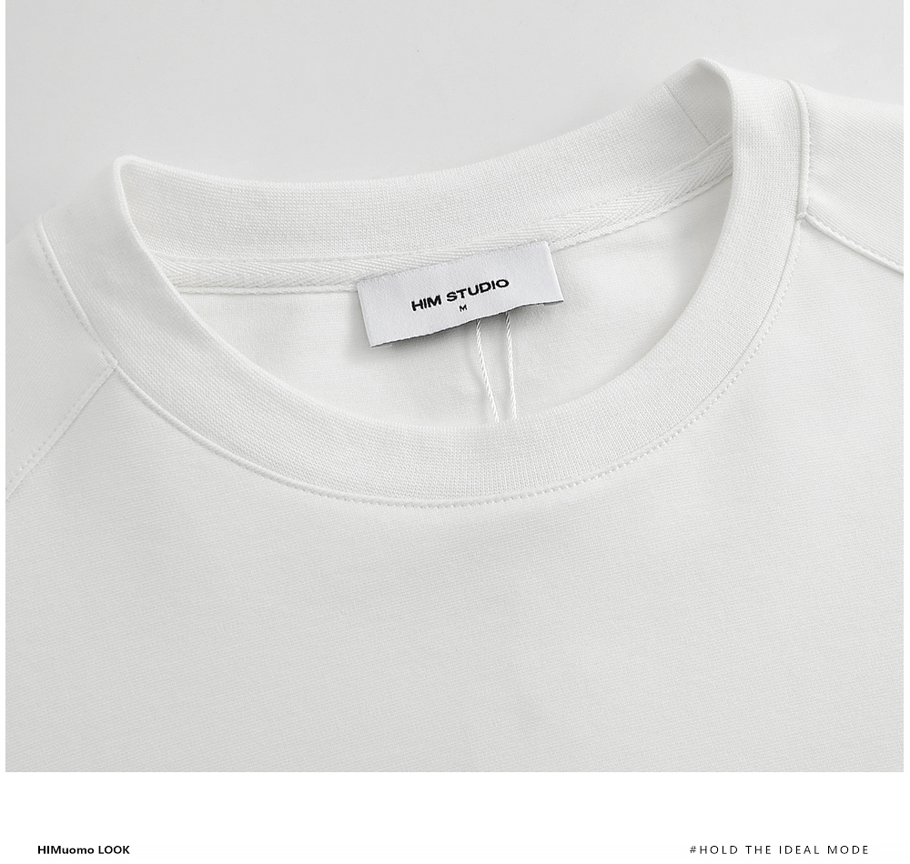 HIM漢崇 做旧植绒图案短袖T恤衫简约复古休闲圆领打底衫2026夏季