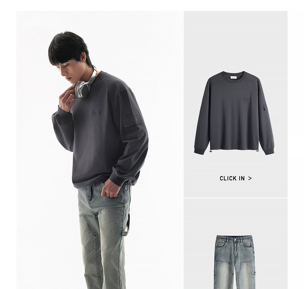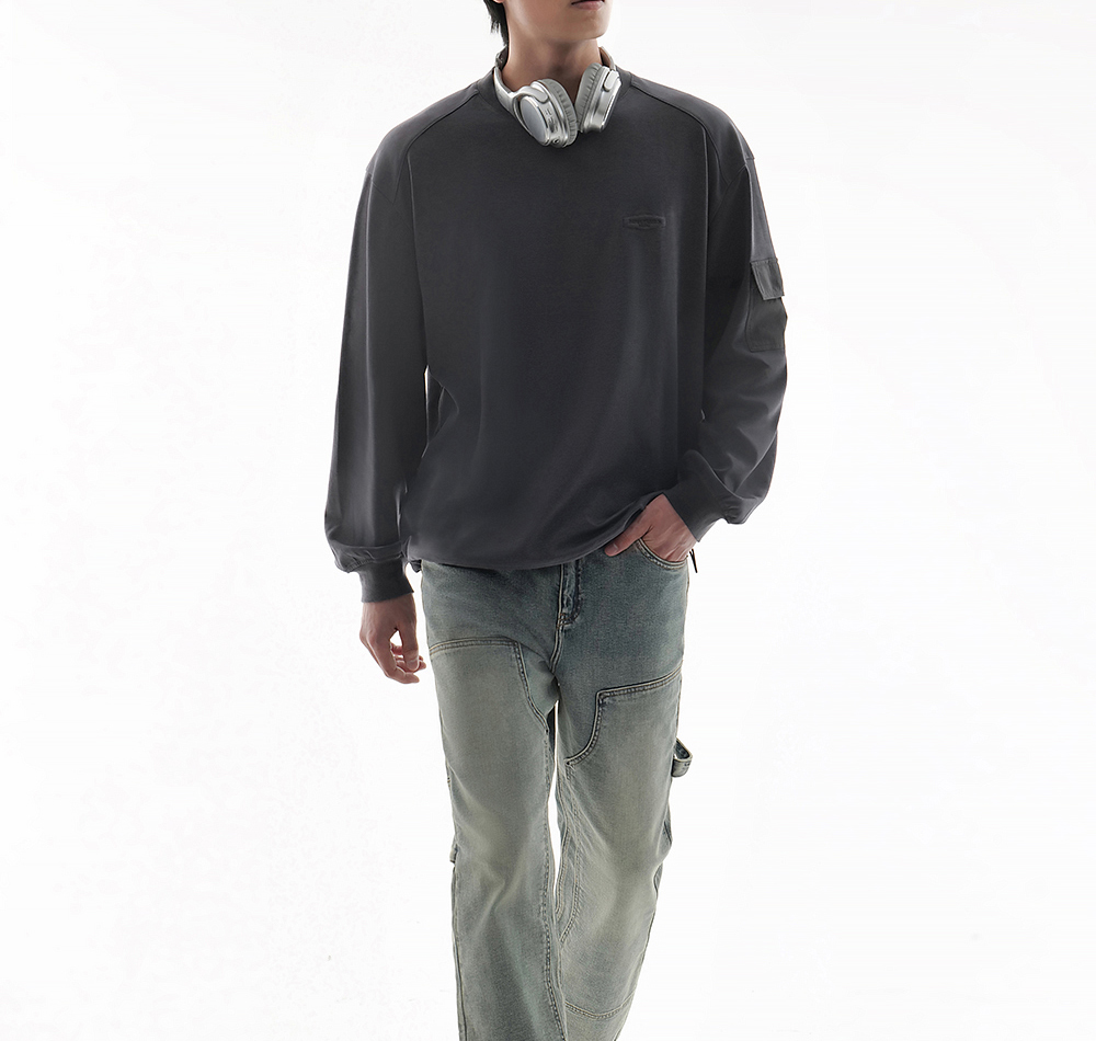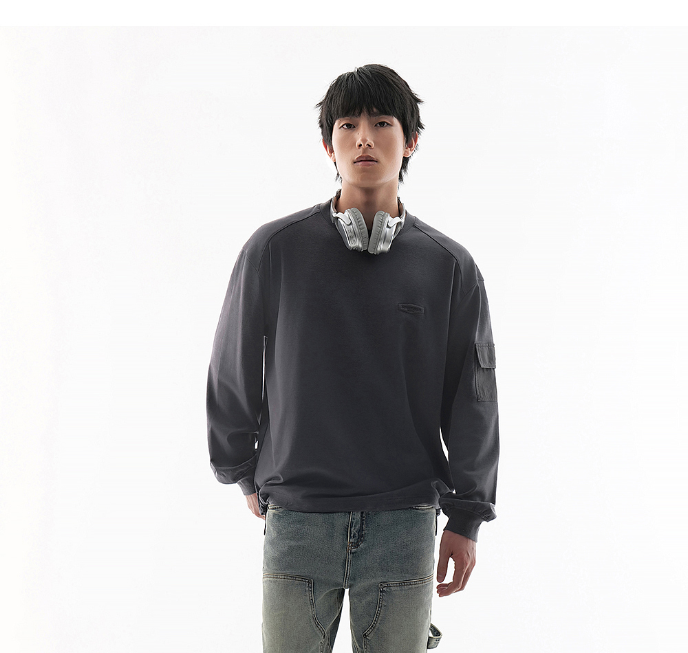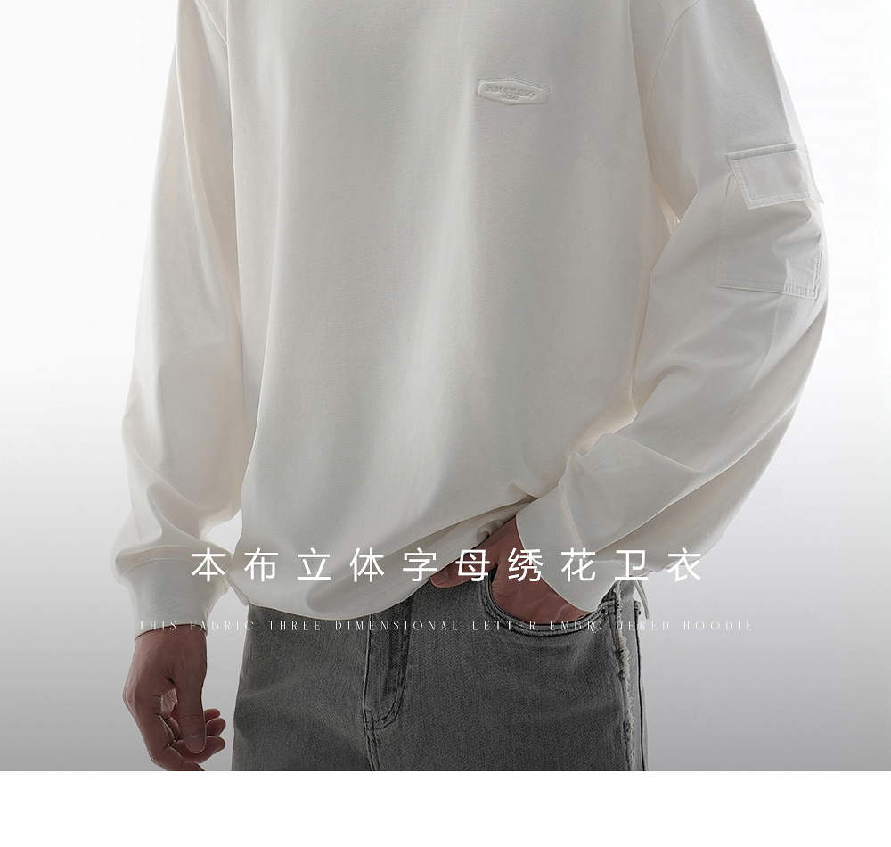 HIM漢崇 潮流简约立体字母绣花宽松休闲百搭圆领卫衣男 2025秋季