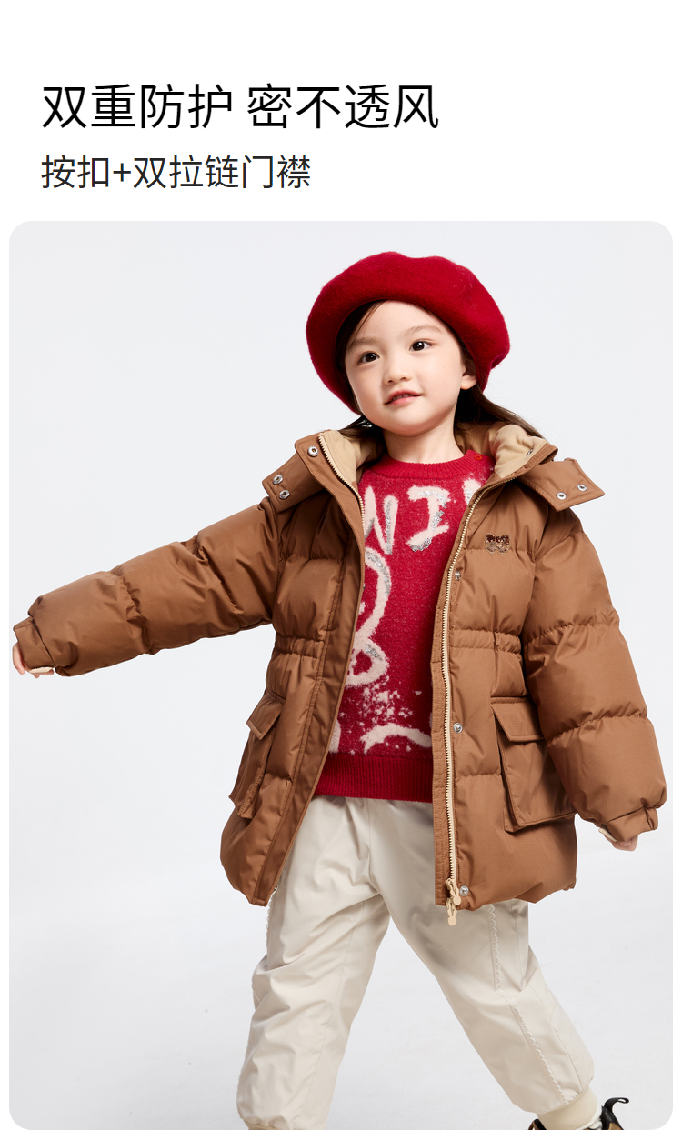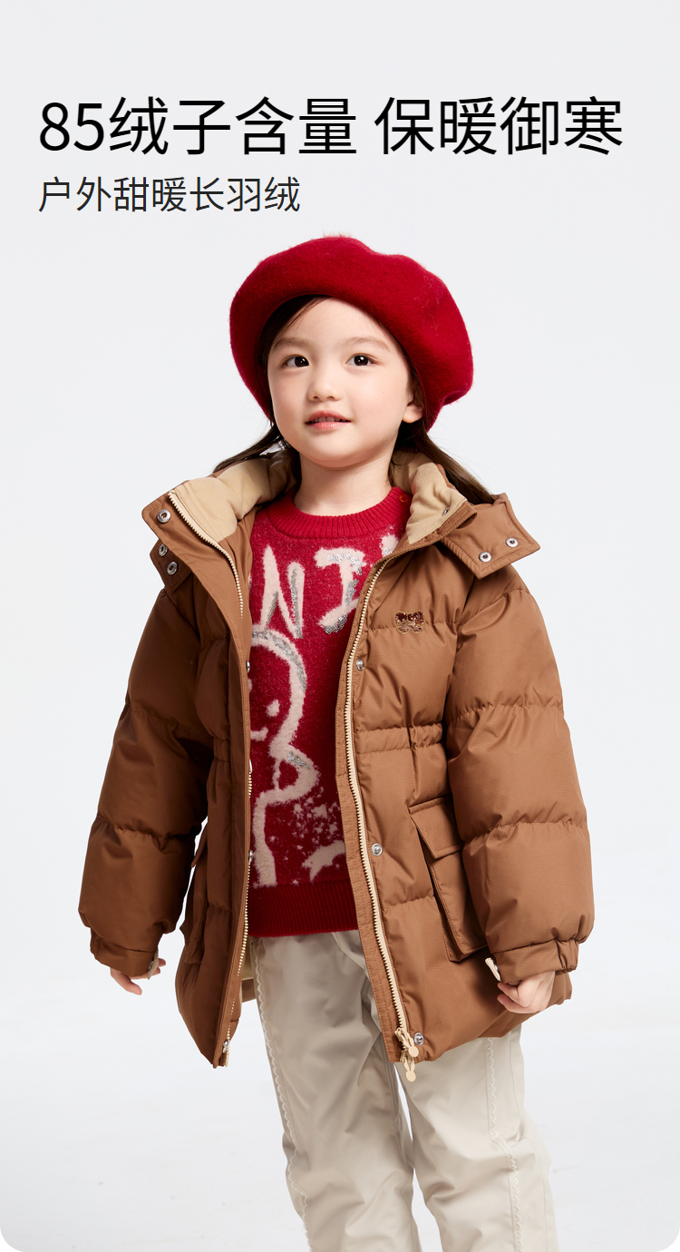 【御寒-5~5℃】女童长款羽绒服外套冬季新款安奈儿童装实体店同款XG445762
