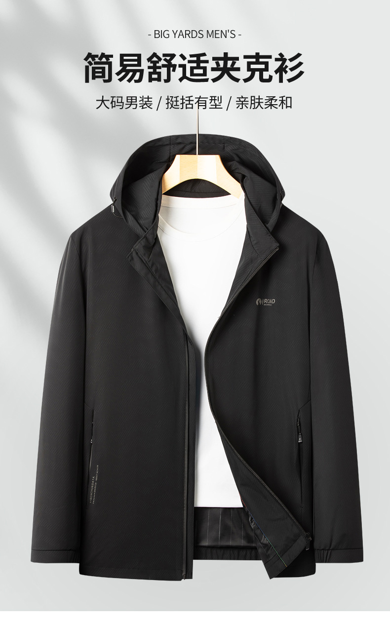 【可拆卸帽】【新款DSZ】大依优型大码男装连帽夹克加肥加大休闲夹克胖子宽松外套上衣户外