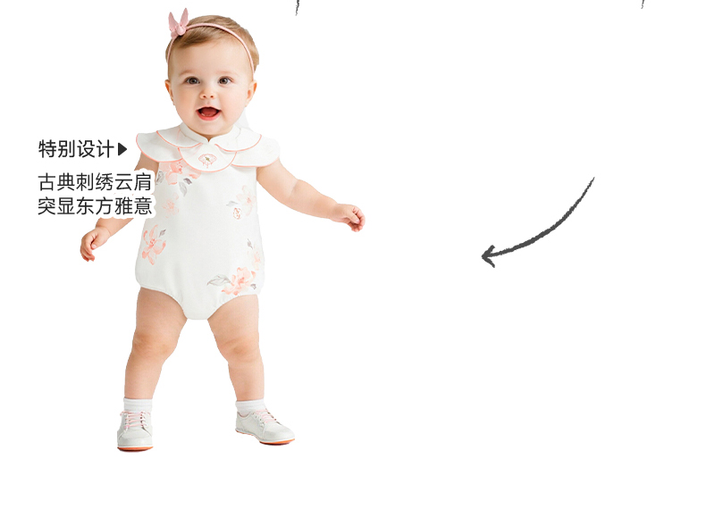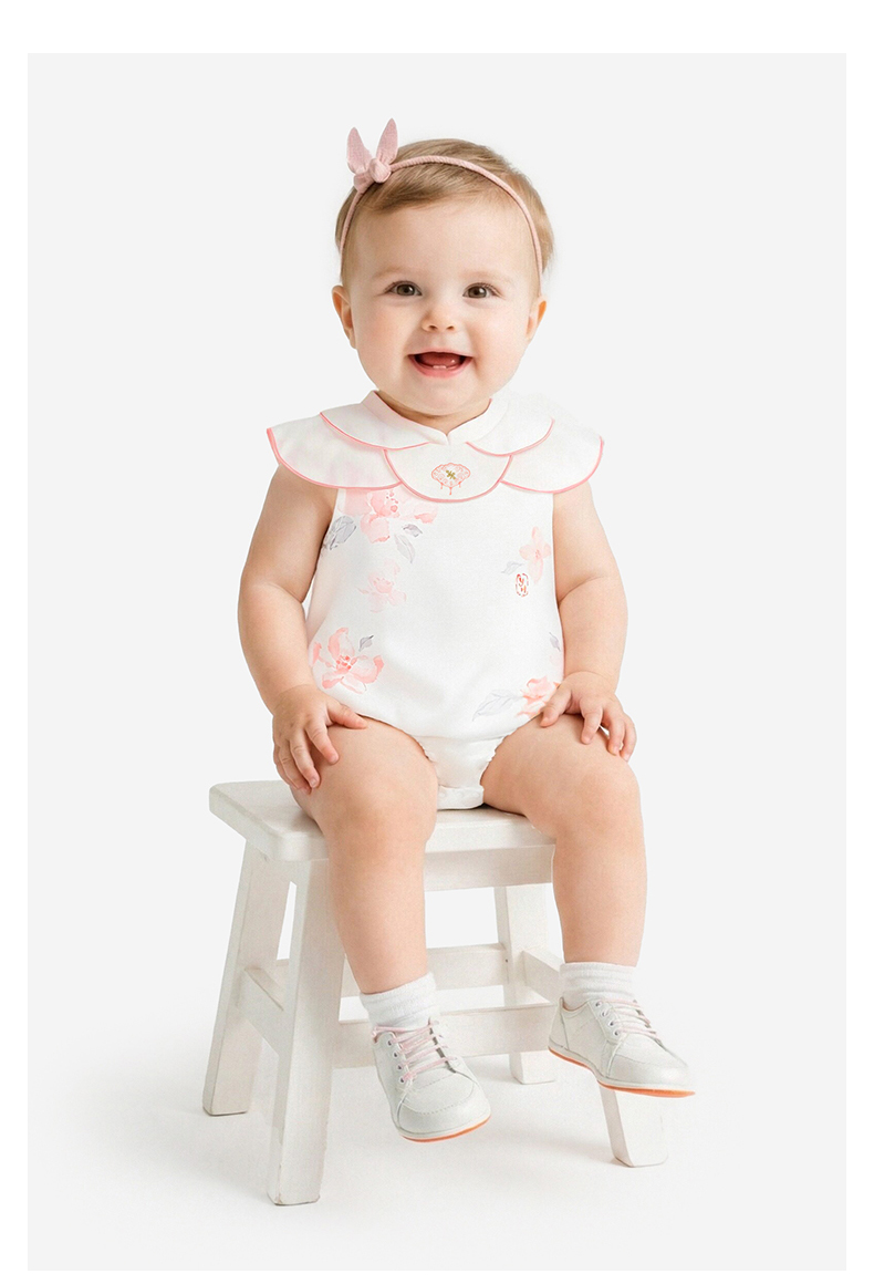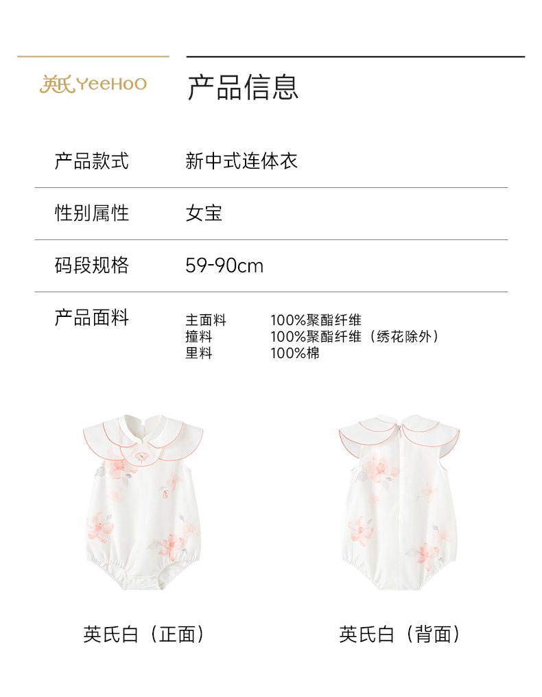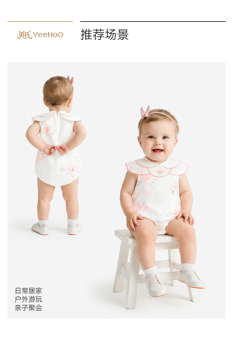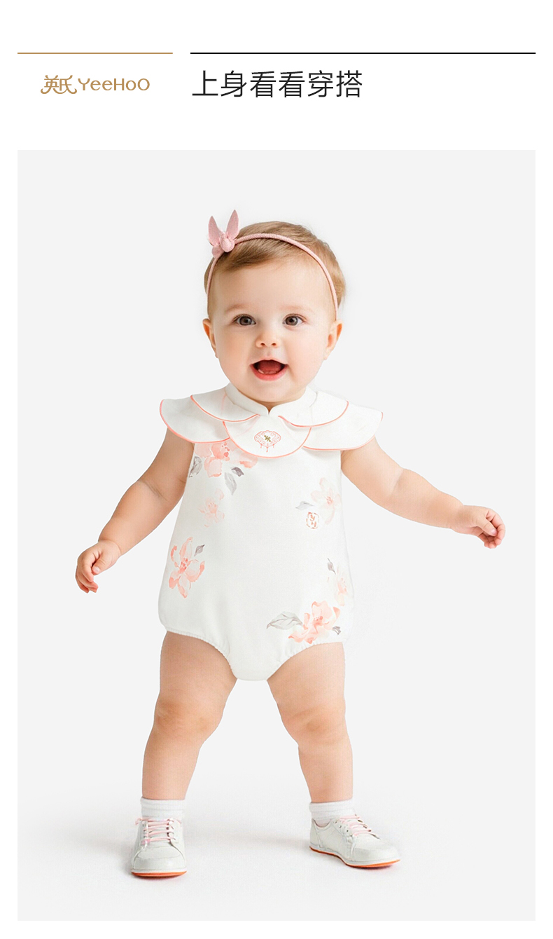 【商场同款】英氏婴儿连身衣宝宝连体衣女宝中式夏季短袖哈衣新款