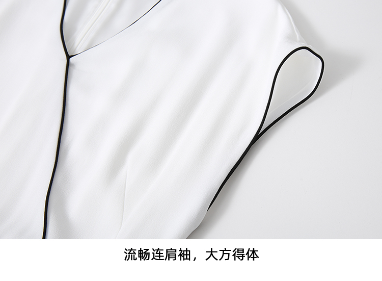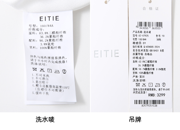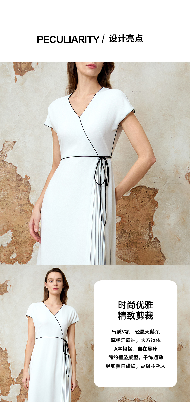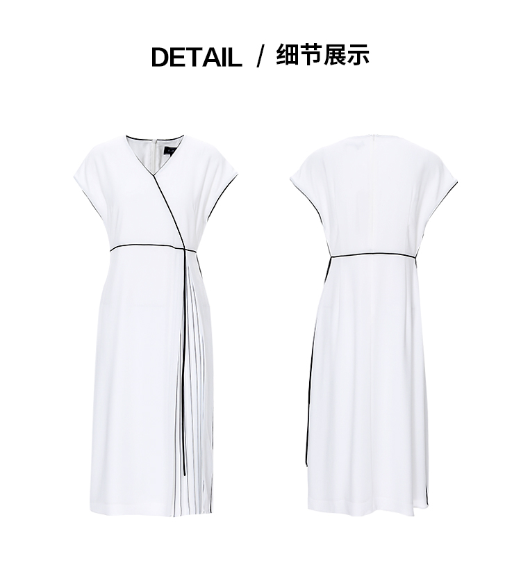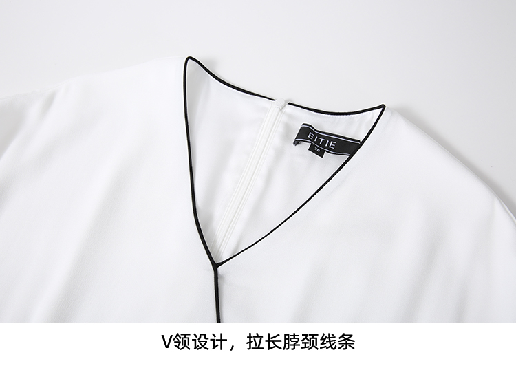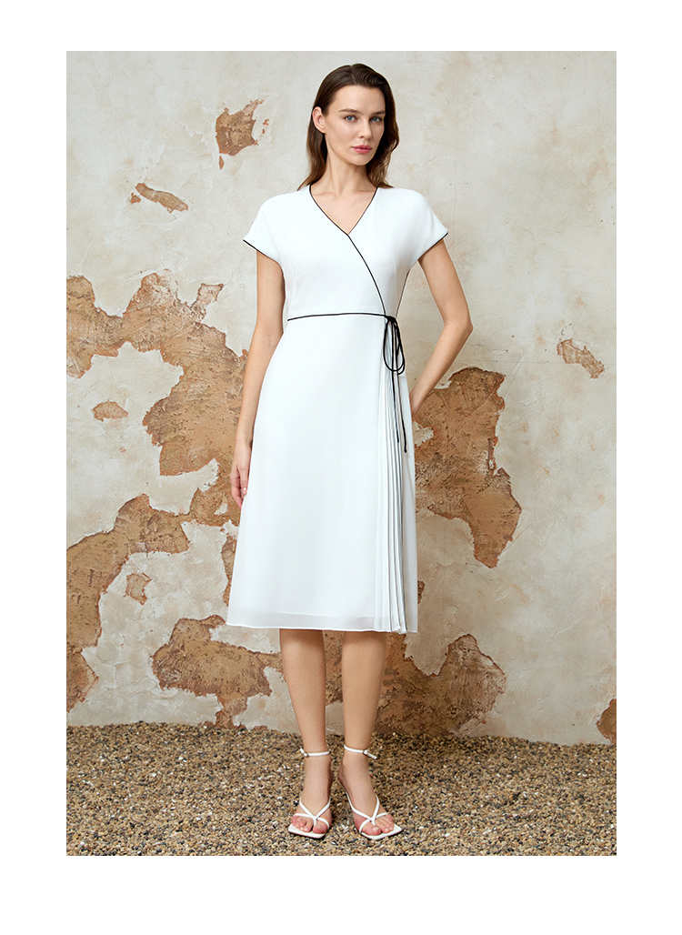 EITIE爱特爱气质V领百褶拼接收腰显瘦系带连衣裙夏季新款8207925