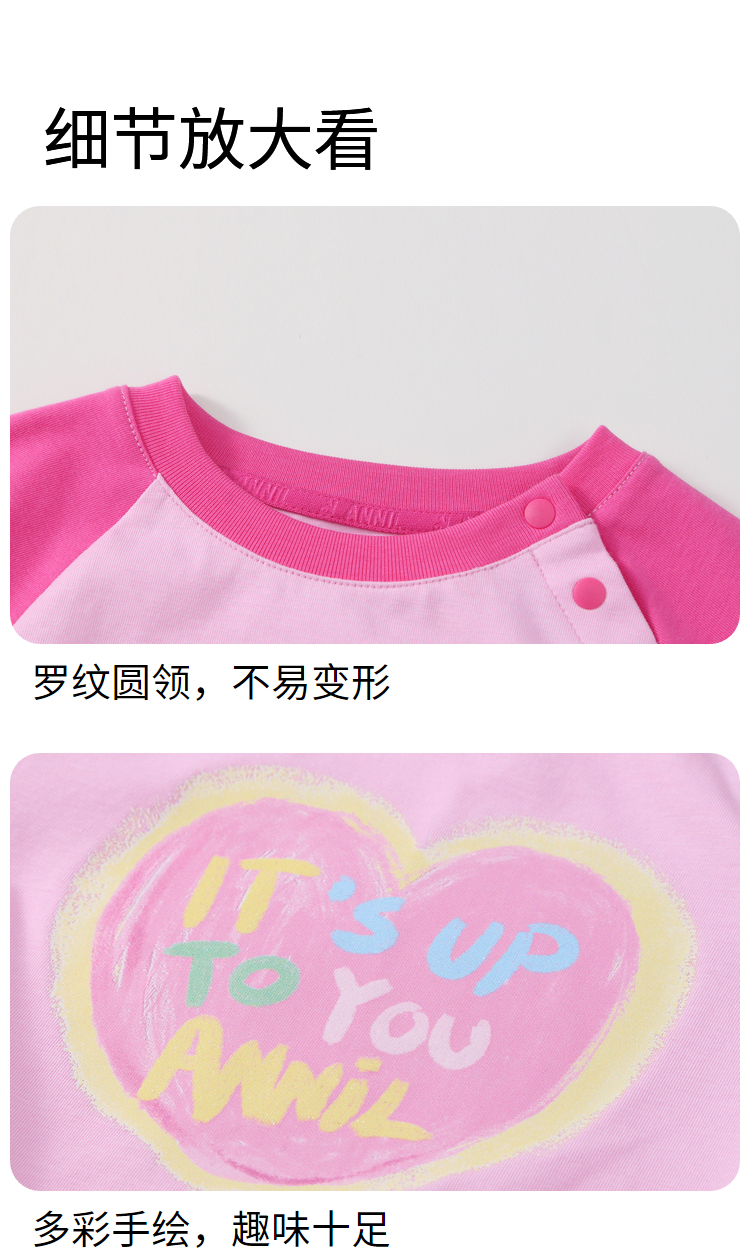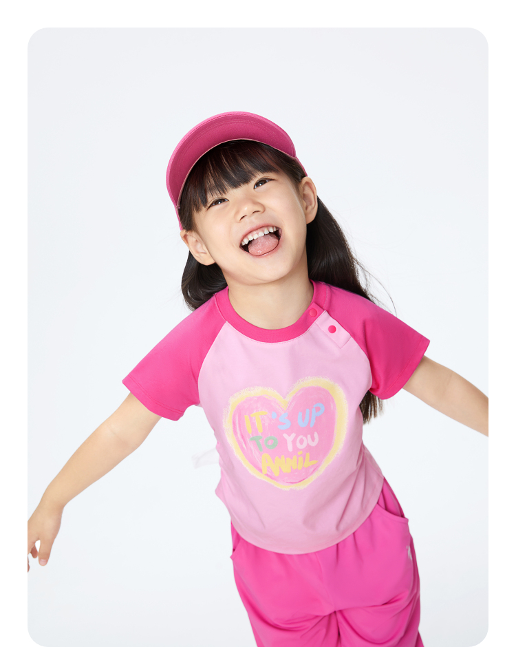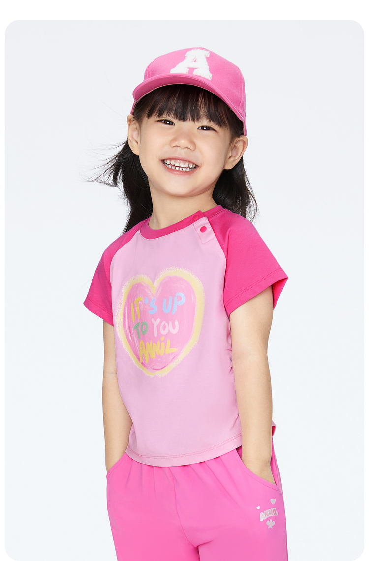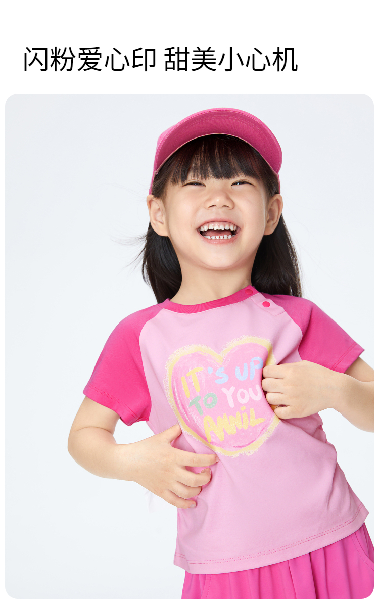 女童甜酷全棉T恤圆领短袖夏季新款安奈儿童装实体店同款XG421705