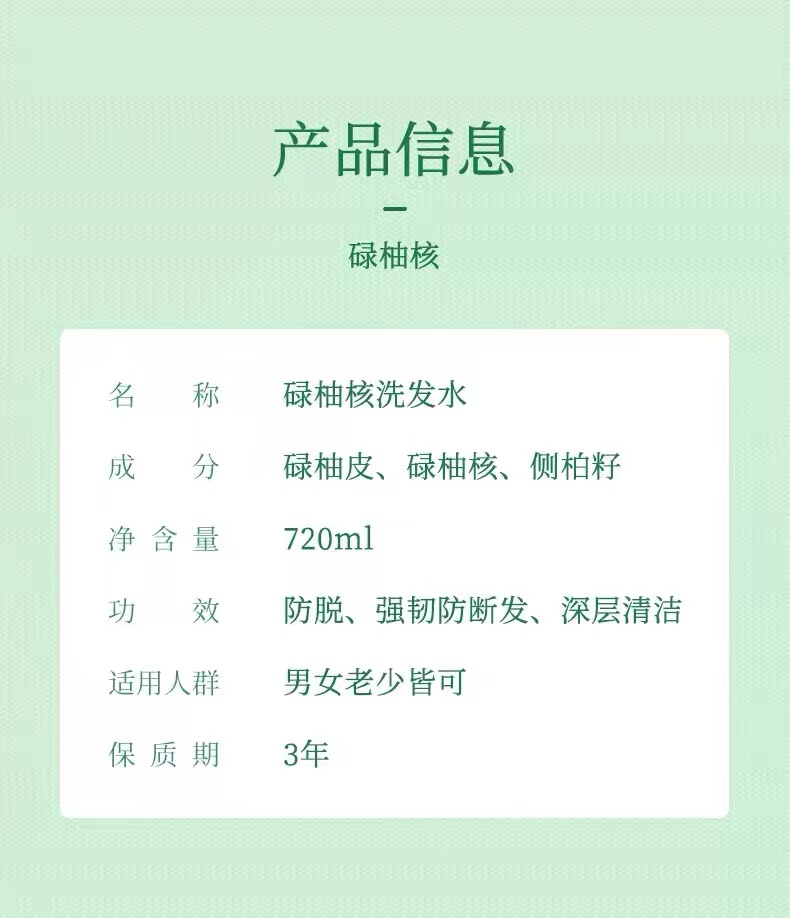 【门店直发 支持同城配送】碌柚核防脱洗发露720ml/瓶