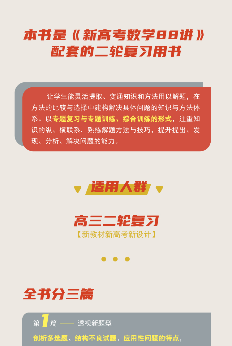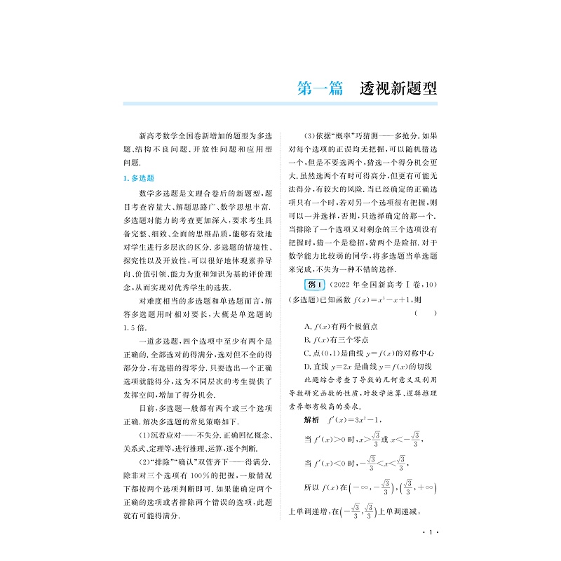 第一篇,透视新题型——剖析多选题、结构不良试题、应用性问题的特点,归纳破解策略,并配置相关练习;