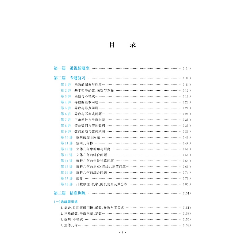 第三篇,精准训练——设置6套精准选填题训练,6套精准解答题训练。
