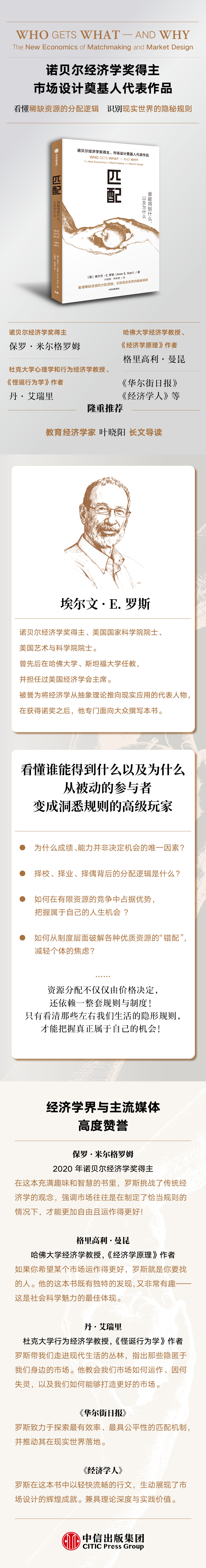 中信出版|匹配:谁能得到什么,以及为什么(诺贝尔经济学奖得主、市场设计奠基人代表作品。看懂稀缺资源的分配逻辑,识别现实世界的隐秘规则)