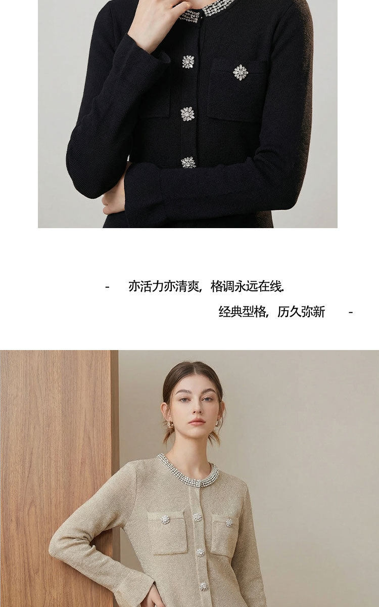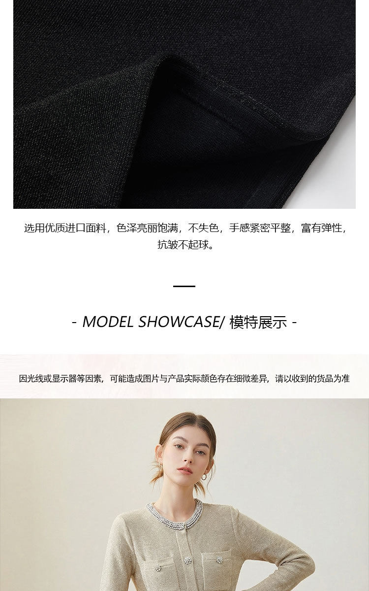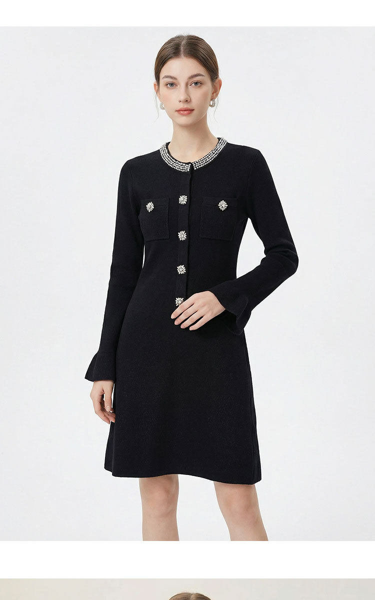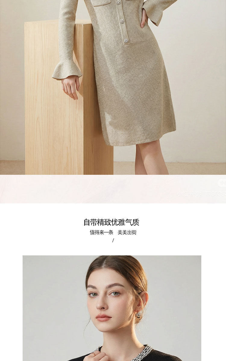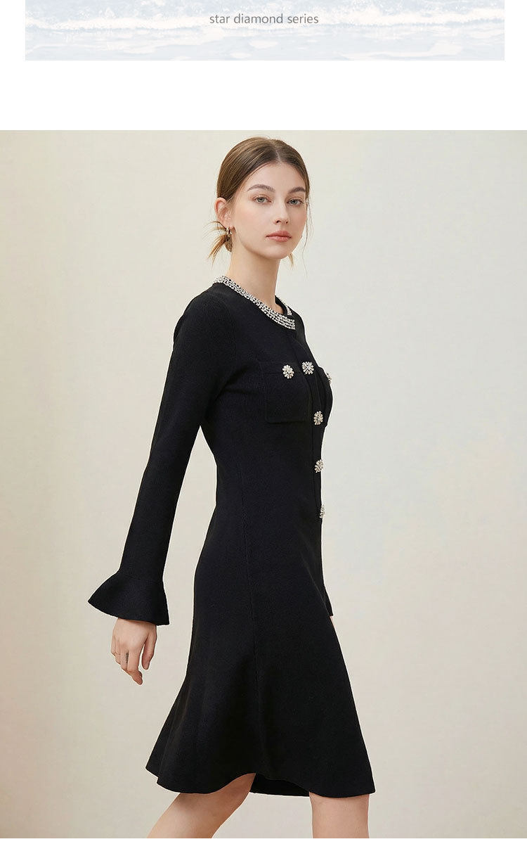 「自」全新升级【铂金会员441/天猫589/差价148】(00042)洛诗琳重工镶钻连衣裙2026新款法式小香风高级感显瘦针织裙